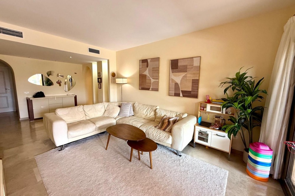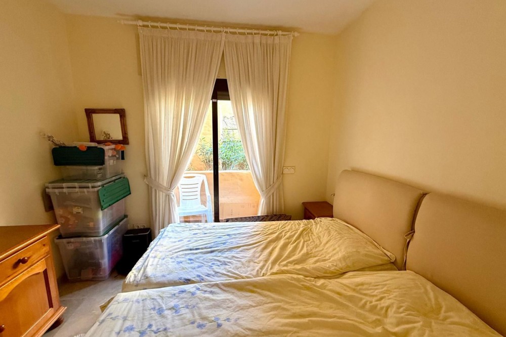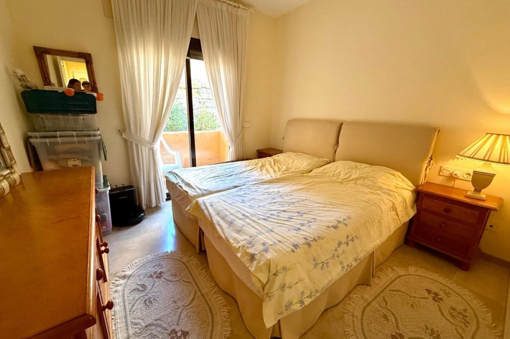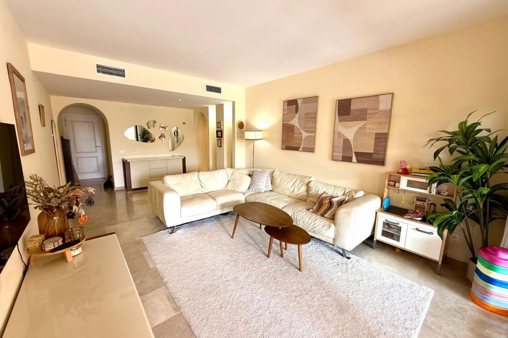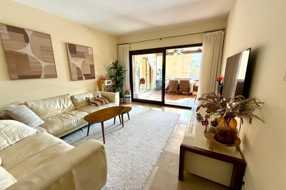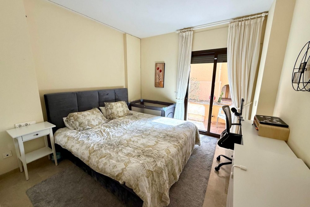 - ELEGANT 3-BEDROOM GROUND-FLOOR APARTMENT IN COTO REAL, MANILVA - LA DUQUESA This elegant 3-bedroom, 2-bathroom ground-floor apartment is fully furnished and key-ready. Located in one of Manilva’s most desirable gated communities — Coto Real — it’s an ideal choice for anyone looking for a permanent residence, a stylish holiday escape, or a reliable investment on the Costa del Sol. The property offers a generous 107 m² of interior space plus an impressive 47 m² terrace with a charming veranda, perfect for enjoying outdoor living or entertaining guests. Its south-east orientation ensures plenty of natural light throughout the day, creating a warm and welcoming atmosphere. Inside, you’ll find a bright and spacious living-dining area, a fully equipped kitchen with all appliances, and three comfortable bedrooms, including a master suite with en-suite bathroom. The apartment also features central air conditioning and a high-quality German water filter system, ensuring modern comfort and convenience. Within the gated complex, residents enjoy multiple swimming pools, paddle courts, and beautifully maintained tropical gardens. The property includes a covered parking space and a private storage room. Sold furnished and move-in ready, this home combines elegance, practicality, and excellent value in one of the coast’s most sought-after areas. Ground Floor Apartment, Manilva, Costa del Sol. 3 Bedrooms, 2 Bathrooms, Built 107 m², Terrace 47 m². Setting : Beachside, Close To Shops, Close To Town, Close To Schools, Urbanisation. Orientation : South East. Condition : Excellent. Pool : Communal, Children`s Pool. Climate Control : Air Conditioning, Hot A/C, Cold A/C. Views : Garden, Street. Features : Covered Terrace, Lift, Fitted Wardrobes, Private Terrace, Paddle Tennis, Storage Room, Utility Room, Ensuite Bathroom, Double Glazing. Furniture : Optional. Kitchen : Fully Fitted. Garden : Communal. Security : Gated Complex, Entry Phone. Parking : Underground, Garage, Covered. Utilities : Electricity, Drinkable Water. Category : Cheap, Holiday Homes, Investment.