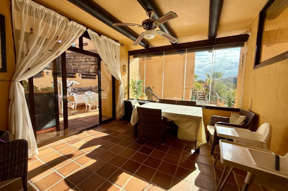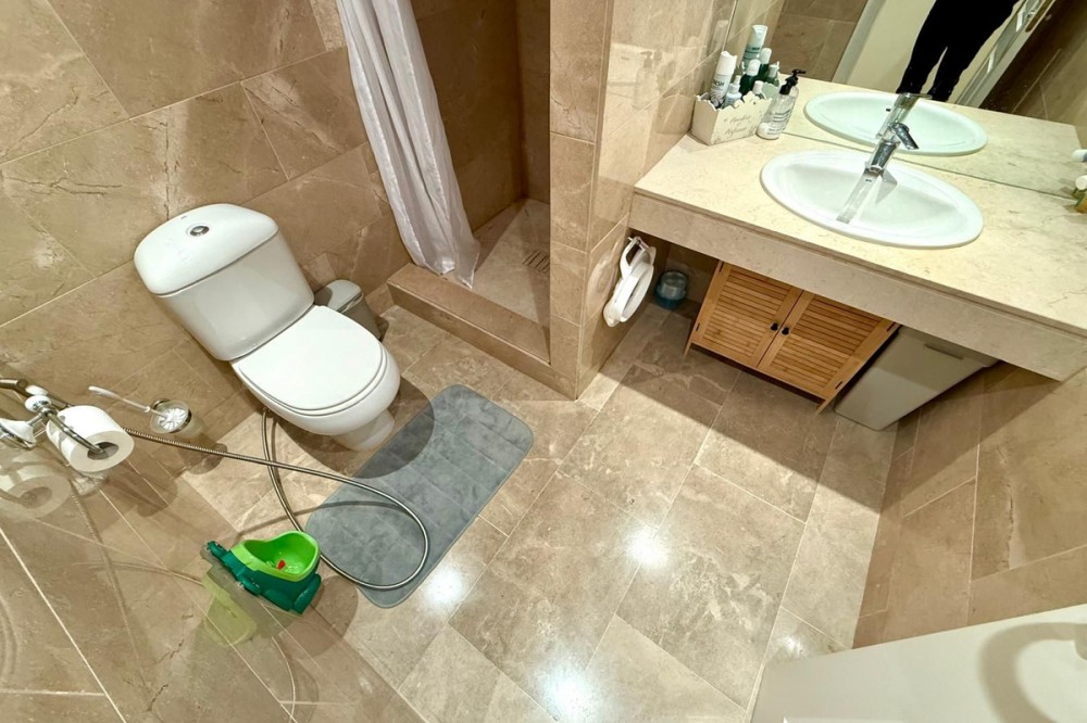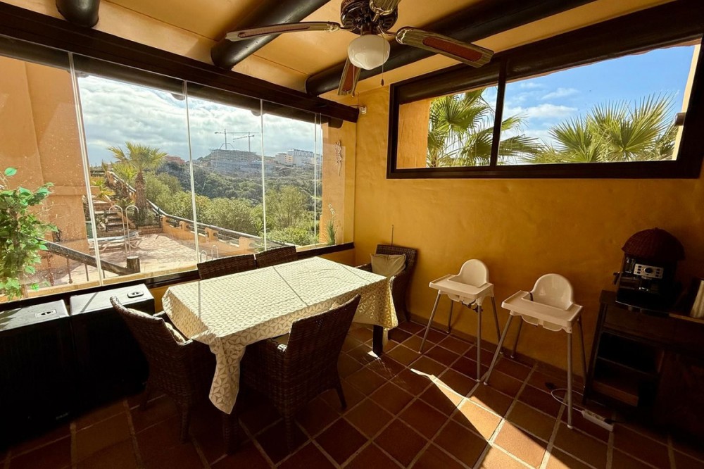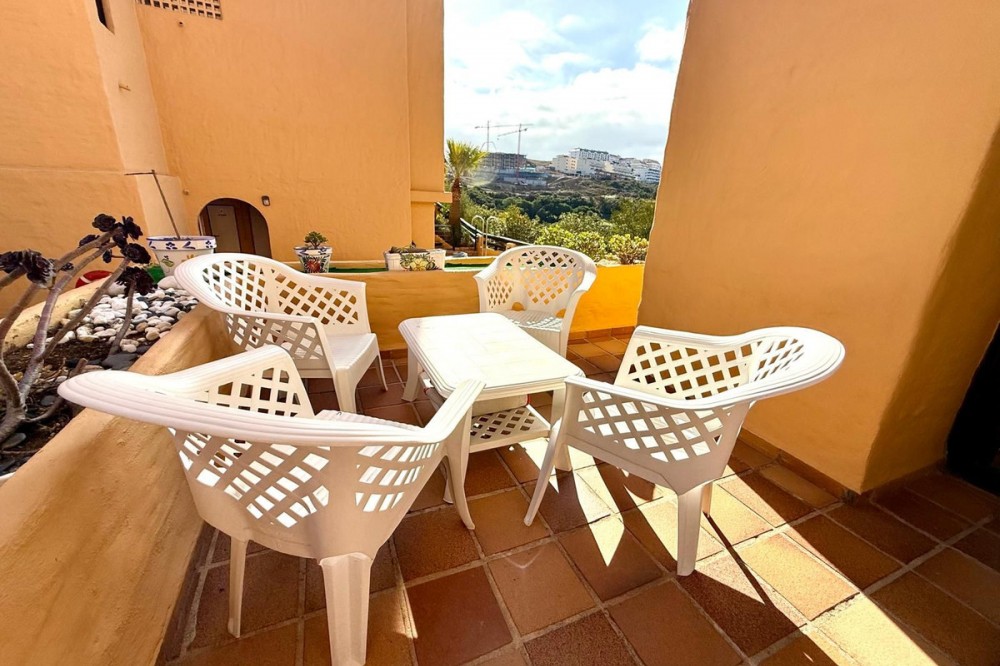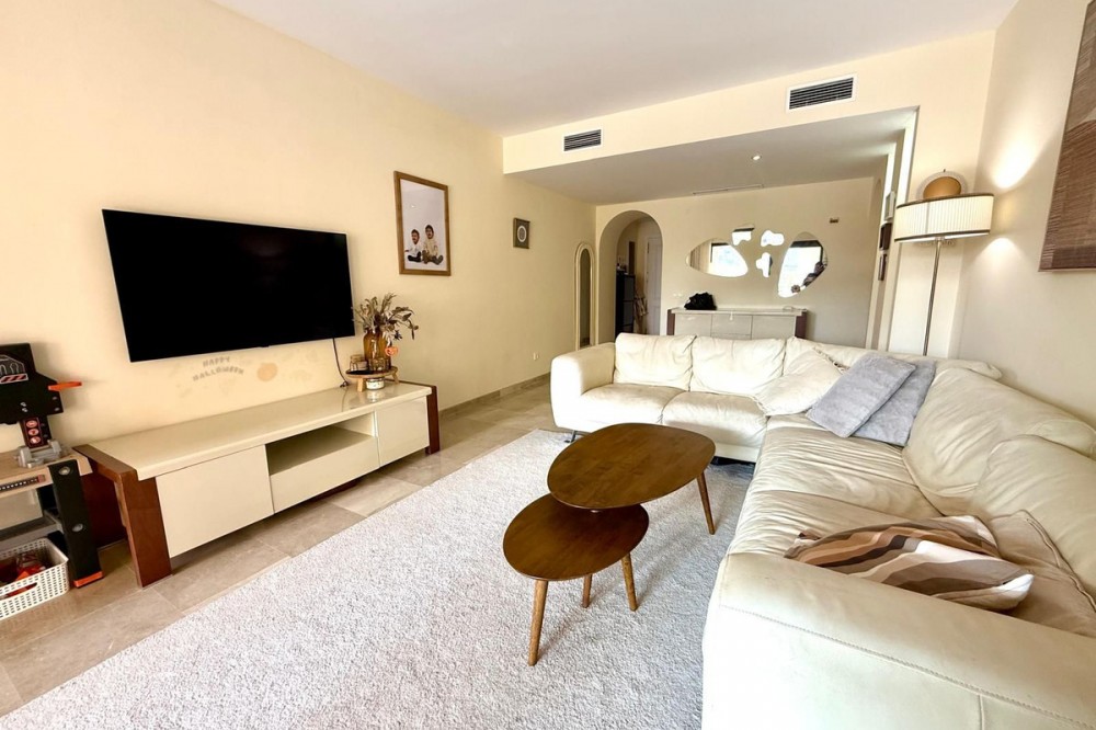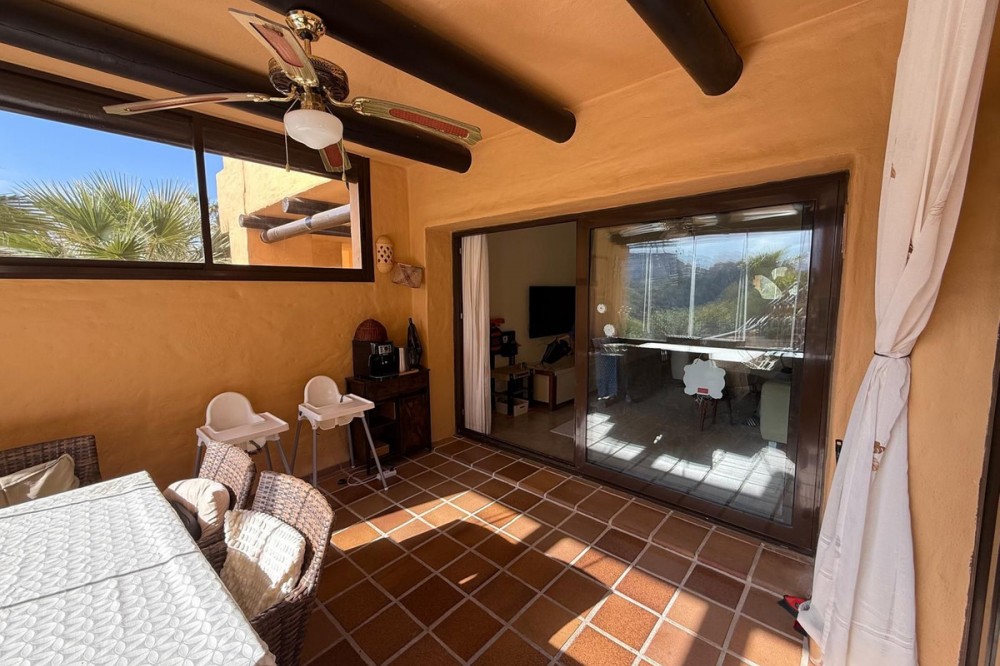 - ELEGANT 3-BEDROOM GROUND-FLOOR APARTMENT IN COTO REAL, MANILVA - LA DUQUESA This elegant 3-bedroom, 2-bathroom ground-floor apartment is fully furnished and key-ready. Located in one of Manilva’s most desirable gated communities — Coto Real — it’s an ideal choice for anyone looking for a permanent residence, a stylish holiday escape, or a reliable investment on the Costa del Sol. The property offers a generous 107 m² of interior space plus an impressive 47 m² terrace with a charming veranda, perfect for enjoying outdoor living or entertaining guests. Its south-east orientation ensures plenty of natural light throughout the day, creating a warm and welcoming atmosphere. Inside, you’ll find a bright and spacious living-dining area, a fully equipped kitchen with all appliances, and three comfortable bedrooms, including a master suite with en-suite bathroom. The apartment also features central air conditioning and a high-quality German water filter system, ensuring modern comfort and convenience. Within the gated complex, residents enjoy multiple swimming pools, paddle courts, and beautifully maintained tropical gardens. The property includes a covered parking space and a private storage room. Sold furnished and move-in ready, this home combines elegance, practicality, and excellent value in one of the coast’s most sought-after areas. Ground Floor Apartment, Manilva, Costa del Sol. 3 Bedrooms, 2 Bathrooms, Built 107 m², Terrace 47 m². Setting : Beachside, Close To Shops, Close To Town, Close To Schools, Urbanisation. Orientation : South East. Condition : Excellent. Pool : Communal, Children`s Pool. Climate Control : Air Conditioning, Hot A/C, Cold A/C. Views : Garden, Street. Features : Covered Terrace, Lift, Fitted Wardrobes, Private Terrace, Paddle Tennis, Storage Room, Utility Room, Ensuite Bathroom, Double Glazing. Furniture : Optional. Kitchen : Fully Fitted. Garden : Communal. Security : Gated Complex, Entry Phone. Parking : Underground, Garage, Covered. Utilities : Electricity, Drinkable Water. Category : Cheap, Holiday Homes, Investment.