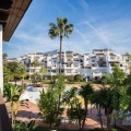 - Location, location, location! Look no further — the sought-after Las Adelfas complex is one of the most desirable communities in the area, and we’re delighted to present this charming 2-bedroom apartment perfectly positioned within the urbanisation. Partly renovated, this home beautifully combines modern comfort with authentic Andalusian style, staying true to the charm that makes Las Adelfas so special. Step into a welcoming entrance hall that leads to the spacious living room, featuring a cassette fireplace — perfect for cozy winter evenings. From here, large sliding doors open onto a private, L-shaped covered terrace. Thanks to its corner position, the terrace enjoys excellent privacy and offers two distinct areas — one for relaxing and another perfect for alfresco dining. The kitchen is generously sized and includes a dining area plus a separate utility/storage room with a washing machine and dryer — a great space for those who love cooking and entertaining. Further inside, you’ll find two bedrooms. The guest bedroom sits opposite a full bathroom, which also serves conveniently as a guest WC. The master bedroom is especially spacious, currently featuring a sofa bed and a large en-suite bathroom with both a walk-in shower and bathtub, plus a window for natural light and ventilation. From the master suite, you also have direct access to the terrace, creating a lovely indoor-outdoor connection. Additional highlights include: - New air-conditioning system, installed two years ago - Underground parking for one car - Private storage room, ideal for golf clubs, bicycles, or beach gear This delightful property offers comfort, character, and an unbeatable location — a rare opportunity to own a home in one of the most popular complexes in the area.