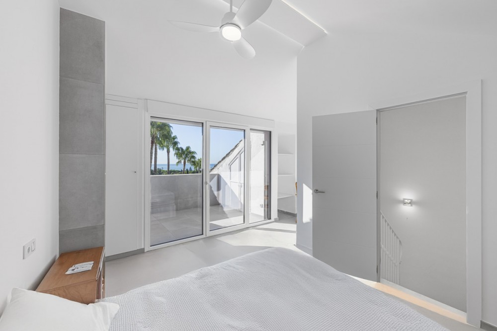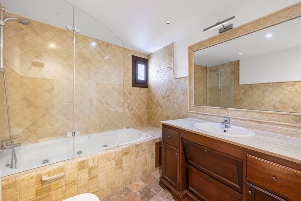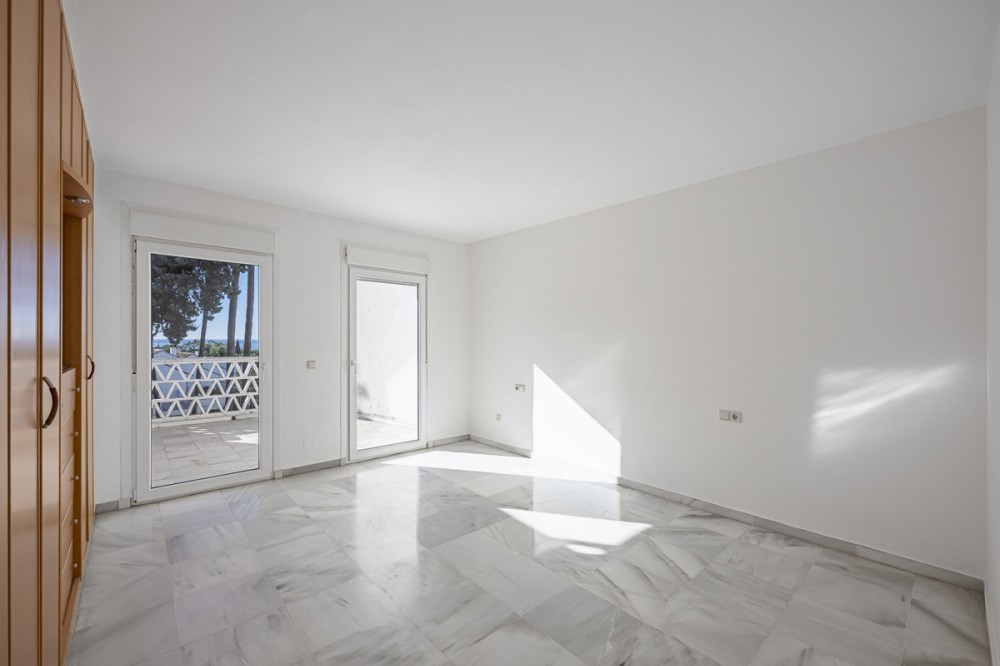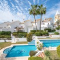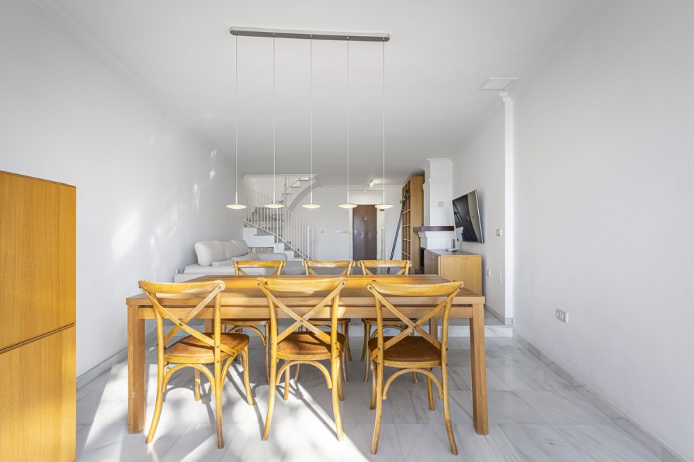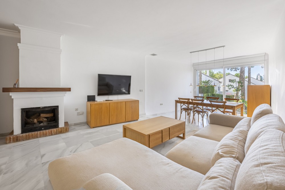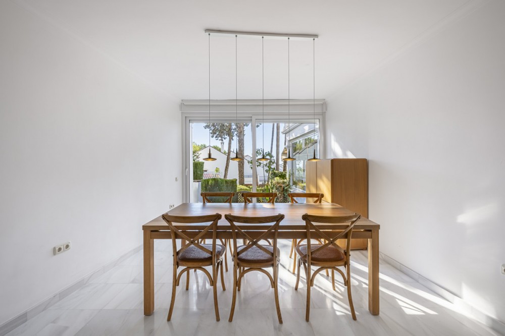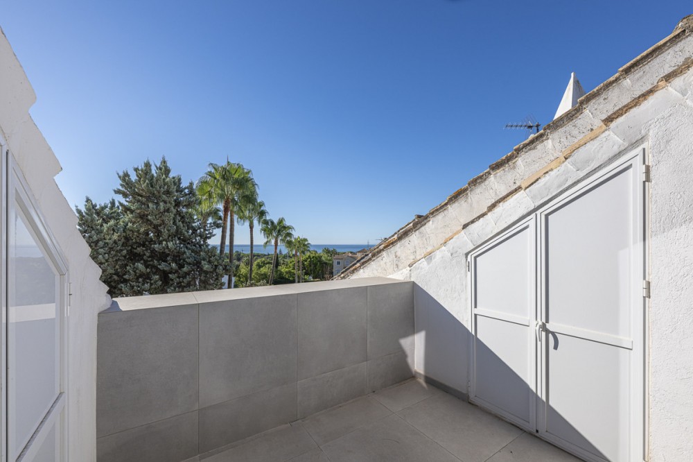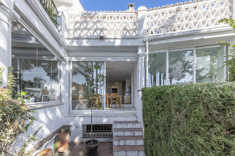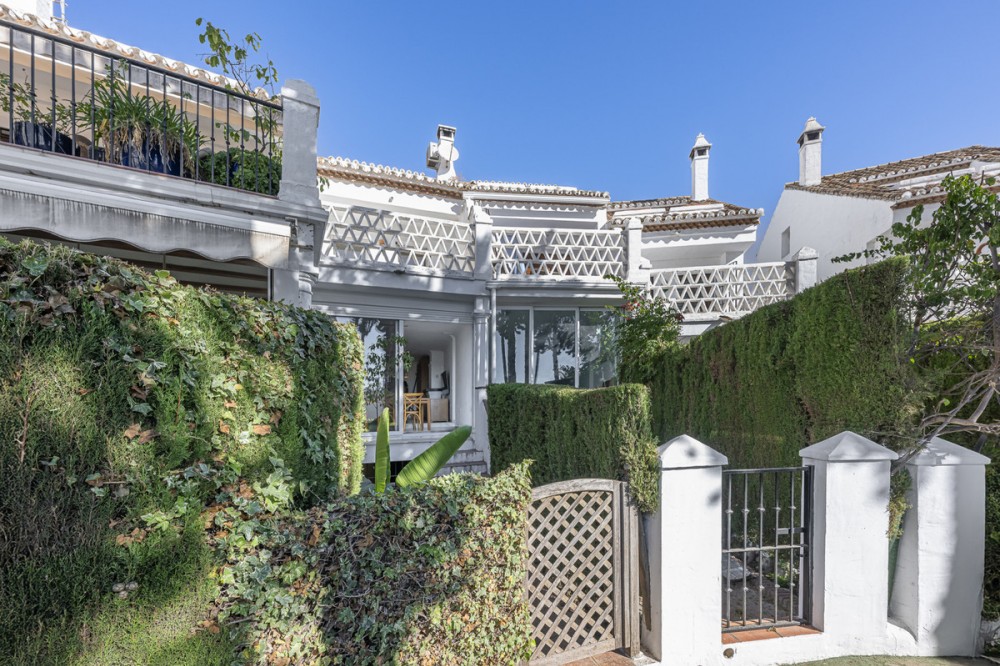 - Montepiedra is one of the most sought-after gated communities in Nagüeles, on the Golden Mile. With architecture inspired by Mediterranean villages—white townhouses, balconies, terraces, and traditional tile roofs—the development stands out for its charm and meticulous maintenance. The community maintains its cobbled streets, native gardens with mature vegetation and several communal swimming pools in impeccable condition. The select neighbourhood coexists in an atmosphere of harmony and respect for the rules of coexistence. The terraced house is distributed over two floors plus a basement, built with quality materials, high ceilings and wood and aluminium carpentry, among other details. On the main floor there is a spacious and bright living room with a fireplace, separate television, living and dining areas, and direct access to an open terrace with access to the communal areas and swimming pool. The fully fitted kitchen is very elegant and equipped with high-end appliances. A guest toilet completes this floor. On the first floor is the master bedroom suite with fitted wardrobes and a large private south-facing terrace with sea views. The second bedroom, also en-suite, faces north and has a balcony with mountain views. The top floor is occupied by an attic bedroom suite with a private terrace and sea views. The basement, with natural light and recently refurbished with elegant finishes, offers a spacious living room, a large dressing room for seasonal clothing, a bathroom, a laundry area and a pantry. The finishing touch is the excellent location: within walking distance of the centre of Marbella, Puerto Banús and the Puente Romano Hotel, surrounded by quality restaurants and with direct access to the motorway. The best international schools on the Costa del Sol are nearby, as well as renowned golf courses. The development also has a public transport stop.