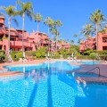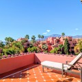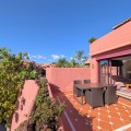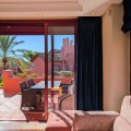 - NEW on the market! Stunning Penthouse duplex in exclusive luxury beachfront complex on the New Golden Mile, East Estepona. The property benefits from prominent position within the urbanisation, with breathtaking views towards the Mediterranean sea, Sierra Bermeja mountains and amazing landscaped gardens with lakes, fountains, swimming pools and lush vegetation. This fully gated urbanisation is renowned for its five-star facilities such as 24/7 security, two amazing swimming pools with waterfall, a heated indoor swimming pool, gym, library, summer bar & table tennis, a sauna and direct access to the beach. The community services all the properties for hassle free living, including technical check-ups etc. The Penthouse benefits from sunlight all day long, there are three ample terraces with excellent views and one of them comes with built in BBQ and summer kitchen. The entrance level comprises of: entrance hall, fully fitted & equipped kitchen with service bar, great size lounge with dining area and access onto uncovered terrace for al fresco dining. On this floor, there are also two guest bedrooms and two bathrooms. Underfloor heating throughout with independent thermostates per room. Nice staircase takes to upper level which is entirely occupied by master suite, including the bedroom, bathroom with dressing area and two large terraces, one of these private for master suite and other one has independent access from distribution hall. This amazing sunny terrace comes with sunbathing and sitting areas, BBQ & kitchenette. Absolutely stunning panoramic views and incredible sunsets can be enjoyed from this terrace. This beachfront complex - Menara - is surrounded by other exclusive complexes which all benefit from landscaped public park with ancient wathing tower. There are also several amenities at the walking distance such as well known restaurant Tikitano and some shops and a bar in nearby complex, more amenities can be found just a short drive from home. Estepona town is 6min drive from Menara and its easily accessible from Malaga Airport using AP-7 toll road. Spectacular property in an exceptional location!
