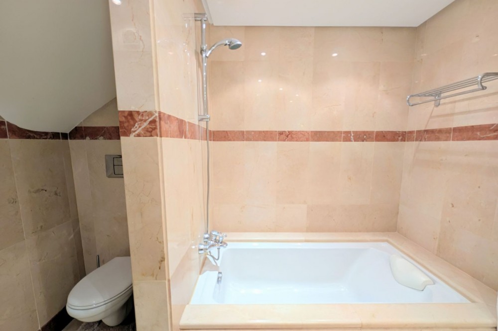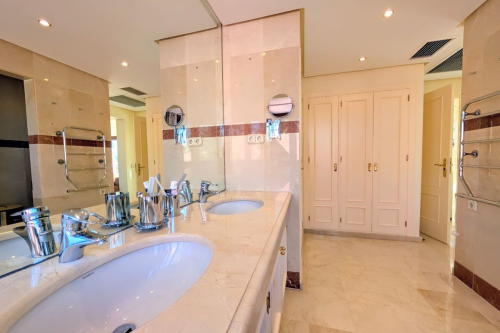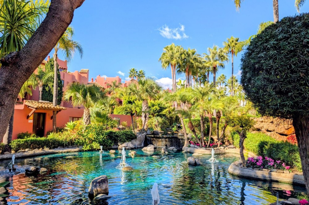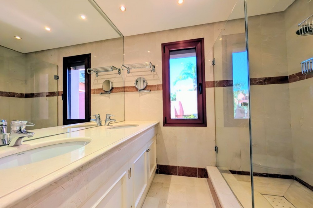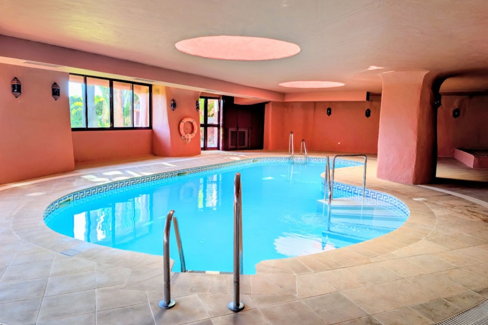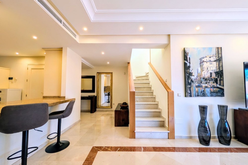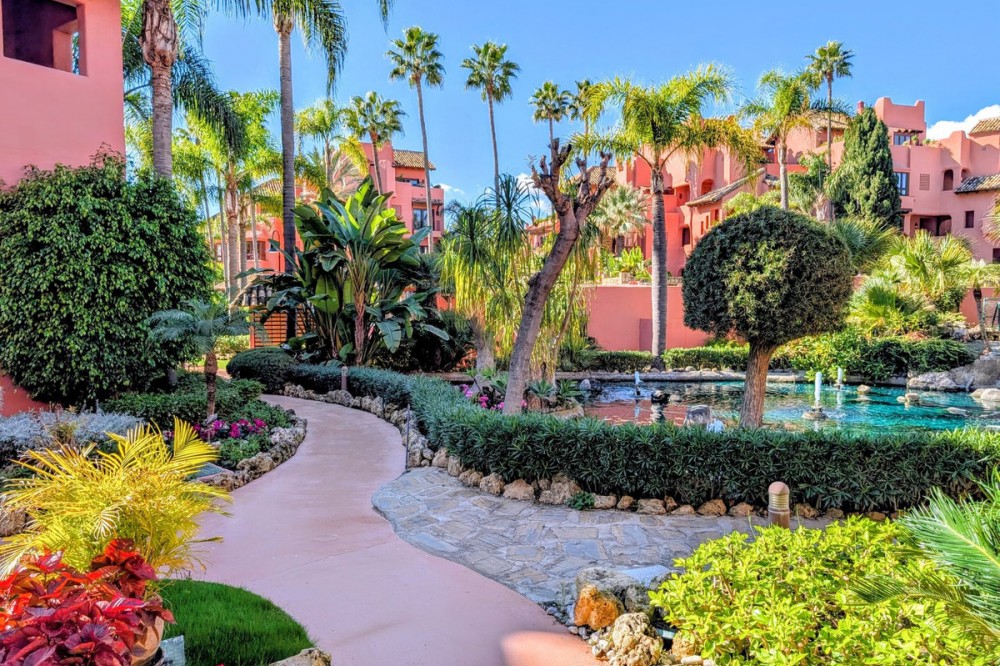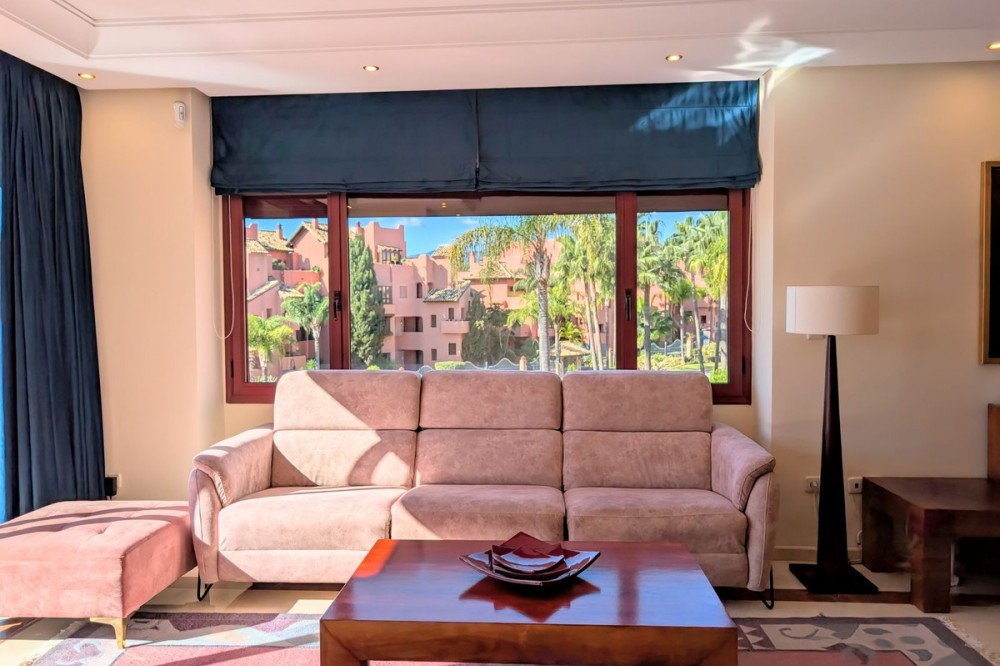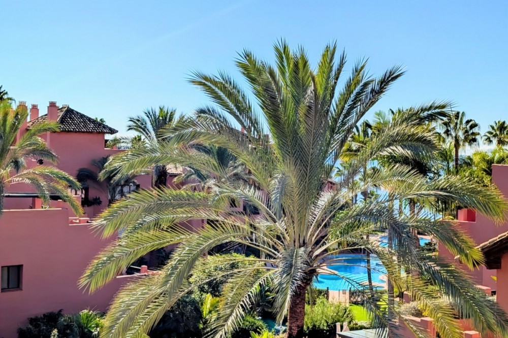 - NEW on the market! Stunning Penthouse duplex in exclusive luxury beachfront complex on the New Golden Mile, East Estepona. The property benefits from prominent position within the urbanisation, with breathtaking views towards the Mediterranean sea, Sierra Bermeja mountains and amazing landscaped gardens with lakes, fountains, swimming pools and lush vegetation. This fully gated urbanisation is renowned for its five-star facilities such as 24/7 security, two amazing swimming pools with waterfall, a heated indoor swimming pool, gym, library, summer bar & table tennis, a sauna and direct access to the beach. The community services all the properties for hassle free living, including technical check-ups etc. The Penthouse benefits from sunlight all day long, there are three ample terraces with excellent views and one of them comes with built in BBQ and summer kitchen. The entrance level comprises of: entrance hall, fully fitted & equipped kitchen with service bar, great size lounge with dining area and access onto uncovered terrace for al fresco dining. On this floor, there are also two guest bedrooms and two bathrooms. Underfloor heating throughout with independent thermostates per room. Nice staircase takes to upper level which is entirely occupied by master suite, including the bedroom, bathroom with dressing area and two large terraces, one of these private for master suite and other one has independent access from distribution hall. This amazing sunny terrace comes with sunbathing and sitting areas, BBQ & kitchenette. Absolutely stunning panoramic views and incredible sunsets can be enjoyed from this terrace. This beachfront complex - Menara - is surrounded by other exclusive complexes which all benefit from landscaped public park with ancient wathing tower. There are also several amenities at the walking distance such as well known restaurant Tikitano and some shops and a bar in nearby complex, more amenities can be found just a short drive from home. Estepona town is 6min drive from Menara and its easily accessible from Malaga Airport using AP-7 toll road. Spectacular property in an exceptional location!