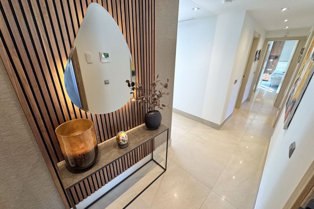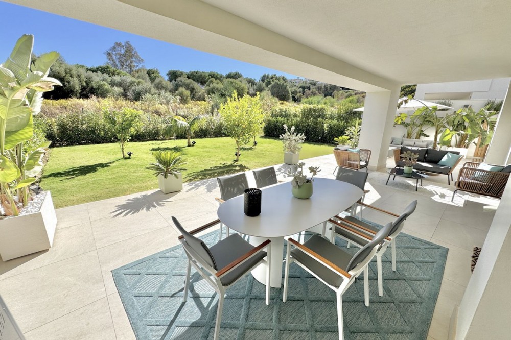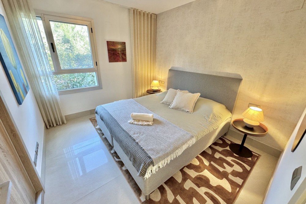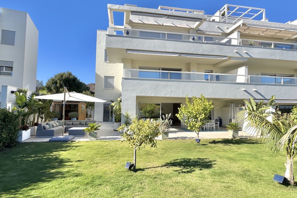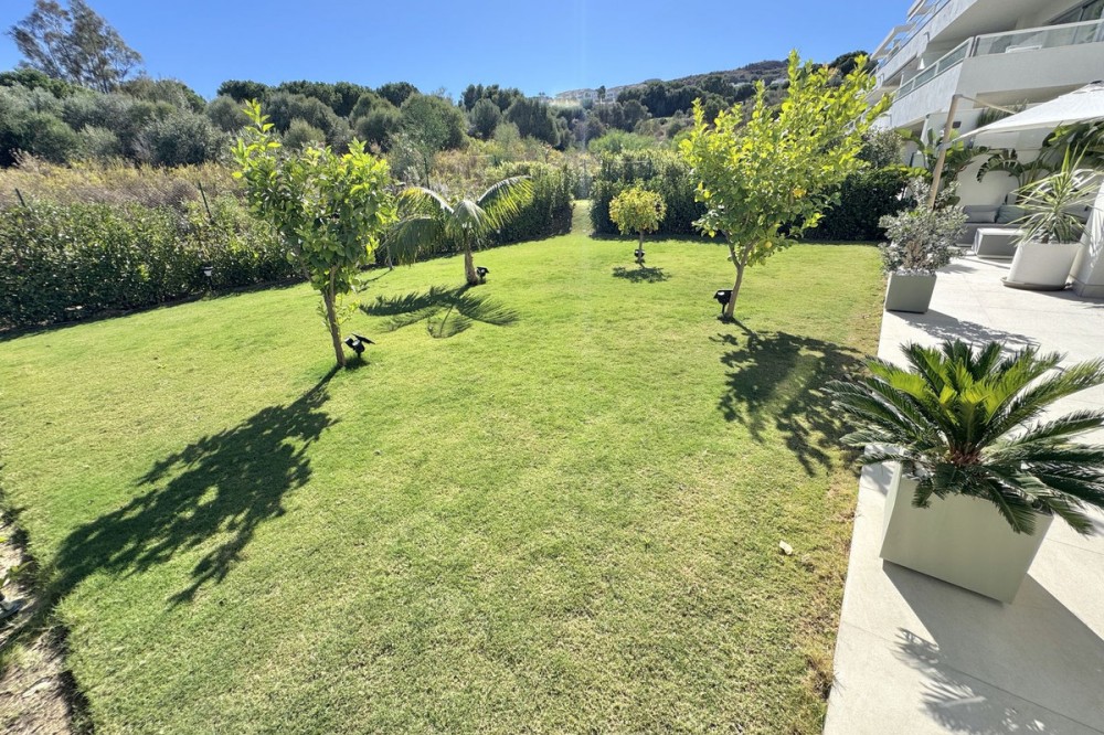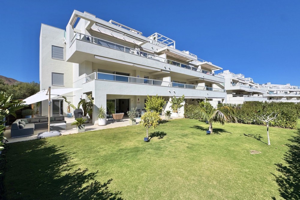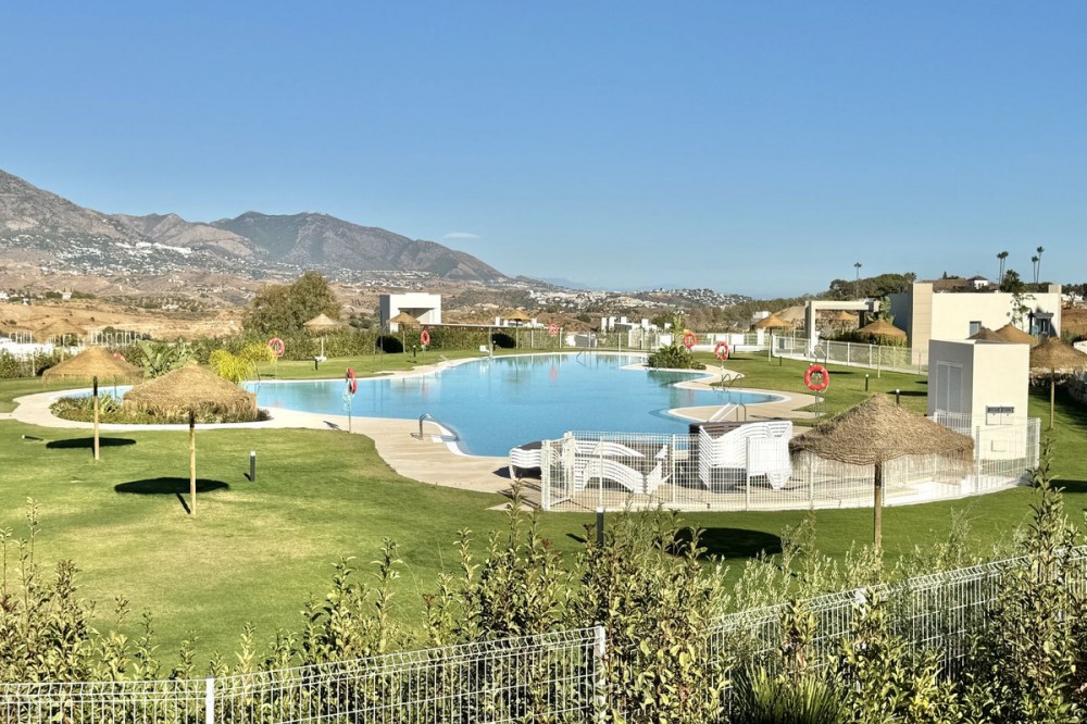 - Spectacular (2024 Built) 3 bed luxury garden apartment set in La Cala Golf Resorts's latest new development. Only 7 mins walk to clubhouse / Spa & 10 mins drive to beach. Only approx. 7 mins walk to La Cala Golf & Spa Resort's beautiful clubhouse & hotel with fantastic on site facilities; Amazing spa and usual spa treatments / massages etc., three new padel courts, a floodlit hard tennis court, squash court, a fitness centre and a gymnasium. Plus only approx. 10 mins drive to the extremely popular La Cala de Mijas Beach village with fabulous shops, bars, restaurants and its beautiful "blue flag award" beaches. APARTMENT This modern corner garden apartment for sale offers near idilic modern luxury living and gives the feeling of living in a new build one level villa. High quality build with modern open plan layout and beautifully decorated throughout. Entrance hall with luxury wallpaper and wood panelling in parts, leading onto main living area and all bedrooms and bathrooms. Open plan lounge / diner and kitchen with luxury fitted wall and base units, with integrated appliances, including an island with units under, central hob with extractor above and sit up breakfast bar. Glazed door to enormous covered entertaining terrace. Separate utility room with plumbing for washing machine & dryer, second fridge freezer, wine cooler, boiler & shelving. Lounge with wood panelling & luxury wallpaper to some areas, luxury curtains, concealed lighting and very wide and high patio doors letting lots of light flood into the property and also offering gorgeous views over the impressive patio and landscaped private use garden. Master Bedroom with quality wallpaper, wood panelling to parts, window and doors to large side terrace, concealed lighting, lots of fitted wardrobes to one complete wall and also opposite the entrance to the luxury en-suite shower room with large shower area, double sinks & toilet. Two further spacious double bedrooms with windows, fitted wardrobes, luxury wallpaper to feature walls. Second luxury shower room with large shower area, sink unit, bathroom and quality tilled walls. Central air-con system. PRIVATE TERRACE (110 m2) Enormous 110 m2 private terrace with luxury sauna room and outside shower, plus garden storage room. Partly covered / partly open, giving the best of both worlds, shade from the sun and sunbathing areas, offering the perfect entertaining or private relaxation area. PRIVATE GARDEN. Plus enormous private use garden (approx 115 m2) with shrub boarders and maintained by the community gardeners for stress free enjoyment. 2 X UNDERGROUND PARKING SPACES & GOOD SIZE STORAGE ROOM. COMMUNAL GARDEN & POOL Gated development with security and spacious / beautifully landscaped communal gardens with one of the largest swimming pools in La Cala Golf & Spa resort, surrounded by breathtaking views of Andalucian countryside and mountain vistas. All this idyllic luxury living is only 7 mins walk to the fabulous La Cala Golf clubhouse and Spa with the fabulous facilities listed below, plus they are about to build a new mini / supermarket. LOCATION La Cala Golf resort is the largest in Europe, with three 18 hole championship golf courses and fabulous facilities including; on-site spa, wellness centre, restaurants, 3 new padel courts, a floodlit hard tennis court, squash court, a fitness centre and a gymnasium. La Cala Resort was also awarded Spain’s Golf Resort of the Year in 2024 by the International Association of Golf Tour Operators. Also only approx. 10 mins drive to the incredibly popular La Cala de Mijas beach town, which is quickly becoming one of the most sought after areas on the coast and attracting celebrity chefs and restauranteurs to the area, along with its original fishing village charm and tapas bars. La Cala is centrally located between Malaga (approximately 25 minutes drive) and Marbella (approximately 15 minutes drive) giving easy access to the entire coast. RUNNING COSTS The vendor has informed us that: Community Charges are only approx. €330 per month. IBI (council tax) is only approx. € 950 per annum BASURA (rubbish tax) is only: €70 per annum. New to market, exclusive listing, spectacular home and location, viewing highly recommended. Contact us now to reserve or view.