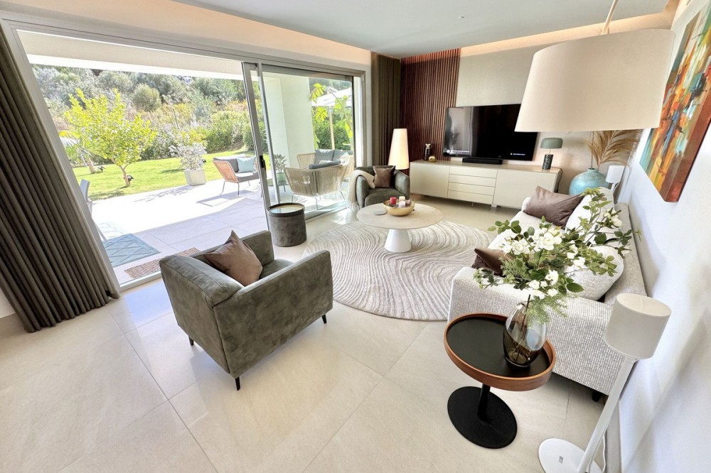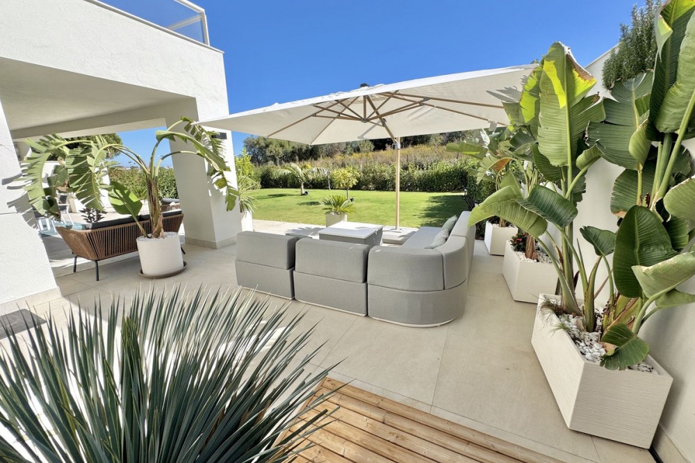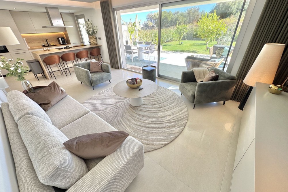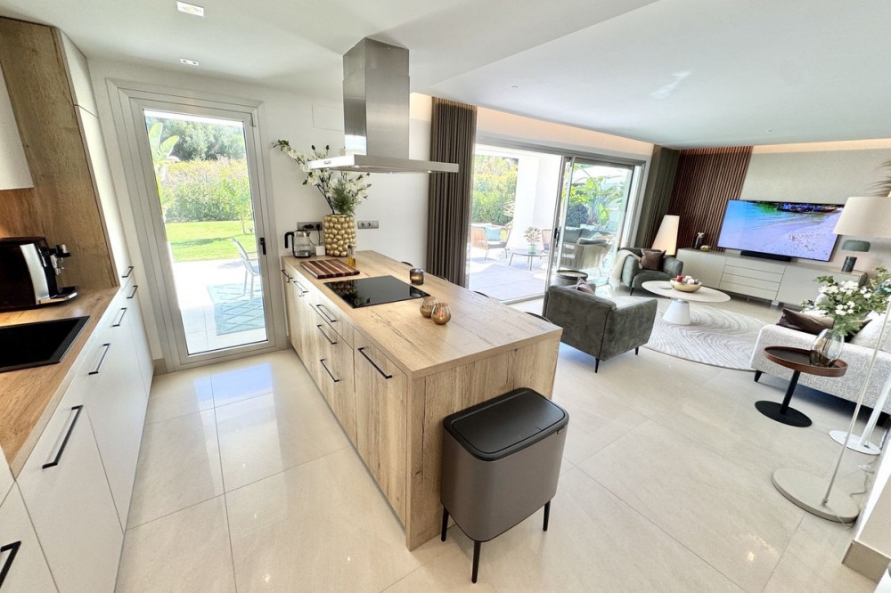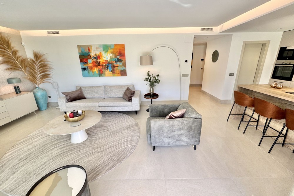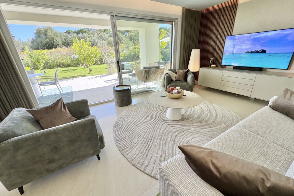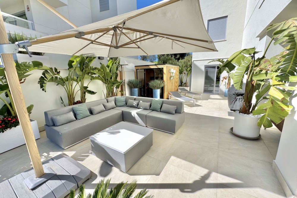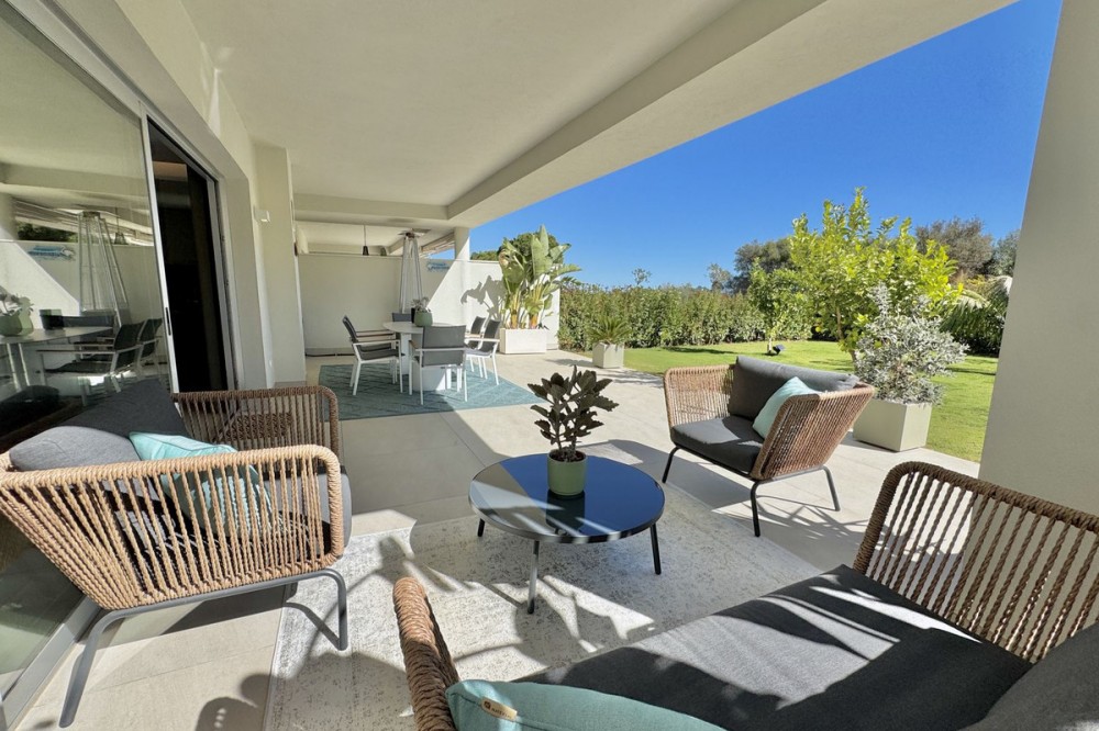 - Spectacular (2024 Built) 3 bed luxury garden apartment set in La Cala Golf Resorts's latest new development. Only 7 mins walk to clubhouse / Spa & 10 mins drive to beach. Only approx. 7 mins walk to La Cala Golf & Spa Resort's beautiful clubhouse & hotel with fantastic on site facilities; Amazing spa and usual spa treatments / massages etc., three new padel courts, a floodlit hard tennis court, squash court, a fitness centre and a gymnasium. Plus only approx. 10 mins drive to the extremely popular La Cala de Mijas Beach village with fabulous shops, bars, restaurants and its beautiful "blue flag award" beaches. APARTMENT This modern corner garden apartment for sale offers near idilic modern luxury living and gives the feeling of living in a new build one level villa. High quality build with modern open plan layout and beautifully decorated throughout. Entrance hall with luxury wallpaper and wood panelling in parts, leading onto main living area and all bedrooms and bathrooms. Open plan lounge / diner and kitchen with luxury fitted wall and base units, with integrated appliances, including an island with units under, central hob with extractor above and sit up breakfast bar. Glazed door to enormous covered entertaining terrace. Separate utility room with plumbing for washing machine & dryer, second fridge freezer, wine cooler, boiler & shelving. Lounge with wood panelling & luxury wallpaper to some areas, luxury curtains, concealed lighting and very wide and high patio doors letting lots of light flood into the property and also offering gorgeous views over the impressive patio and landscaped private use garden. Master Bedroom with quality wallpaper, wood panelling to parts, window and doors to large side terrace, concealed lighting, lots of fitted wardrobes to one complete wall and also opposite the entrance to the luxury en-suite shower room with large shower area, double sinks & toilet. Two further spacious double bedrooms with windows, fitted wardrobes, luxury wallpaper to feature walls. Second luxury shower room with large shower area, sink unit, bathroom and quality tilled walls. Central air-con system. PRIVATE TERRACE (110 m2) Enormous 110 m2 private terrace with luxury sauna room and outside shower, plus garden storage room. Partly covered / partly open, giving the best of both worlds, shade from the sun and sunbathing areas, offering the perfect entertaining or private relaxation area. PRIVATE GARDEN. Plus enormous private use garden (approx 115 m2) with shrub boarders and maintained by the community gardeners for stress free enjoyment. 2 X UNDERGROUND PARKING SPACES & GOOD SIZE STORAGE ROOM. COMMUNAL GARDEN & POOL Gated development with security and spacious / beautifully landscaped communal gardens with one of the largest swimming pools in La Cala Golf & Spa resort, surrounded by breathtaking views of Andalucian countryside and mountain vistas. All this idyllic luxury living is only 7 mins walk to the fabulous La Cala Golf clubhouse and Spa with the fabulous facilities listed below, plus they are about to build a new mini / supermarket. LOCATION La Cala Golf resort is the largest in Europe, with three 18 hole championship golf courses and fabulous facilities including; on-site spa, wellness centre, restaurants, 3 new padel courts, a floodlit hard tennis court, squash court, a fitness centre and a gymnasium. La Cala Resort was also awarded Spain’s Golf Resort of the Year in 2024 by the International Association of Golf Tour Operators. Also only approx. 10 mins drive to the incredibly popular La Cala de Mijas beach town, which is quickly becoming one of the most sought after areas on the coast and attracting celebrity chefs and restauranteurs to the area, along with its original fishing village charm and tapas bars. La Cala is centrally located between Malaga (approximately 25 minutes drive) and Marbella (approximately 15 minutes drive) giving easy access to the entire coast. RUNNING COSTS The vendor has informed us that: Community Charges are only approx. €330 per month. IBI (council tax) is only approx. € 950 per annum BASURA (rubbish tax) is only: €70 per annum. New to market, exclusive listing, spectacular home and location, viewing highly recommended. Contact us now to reserve or view.