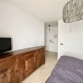 - Penthouse apartment with the most stunning, panoramic sea views!!! Located within just a few minutes¨walk to the beach and just a few minutes¨drive to Fuengirola and La Cala de Mijas, this trully superb property is a rare find! The property comprises of a spacious lounge/dining room with pelllet burning fireplace, open plan modern kitchen, one double bedroom with bathroom plus the master bedroom with ensuite bathroom. Both bedrooms have patio door access to the terrace and built in wardrobes. Via patio doors from the lounge, is a stunning glass conservatory/sun lounge, used by the current owner as the dining room. The terrace of the property extends the full length of the apartment and to the side, being a corner property, and offers south facing full frontal and lateral uninterrupted sea views. The community is immaculately maintained, with gated access to the communal carparking area. There is a large swimming pool with sunbathing areas. Local amenities can be walked to also, including bars and restaurants, supermarket, bakery etc. Community fees - 160 euros per month including water