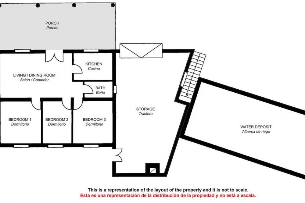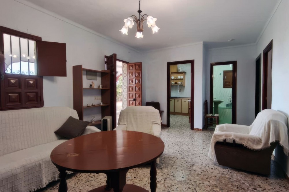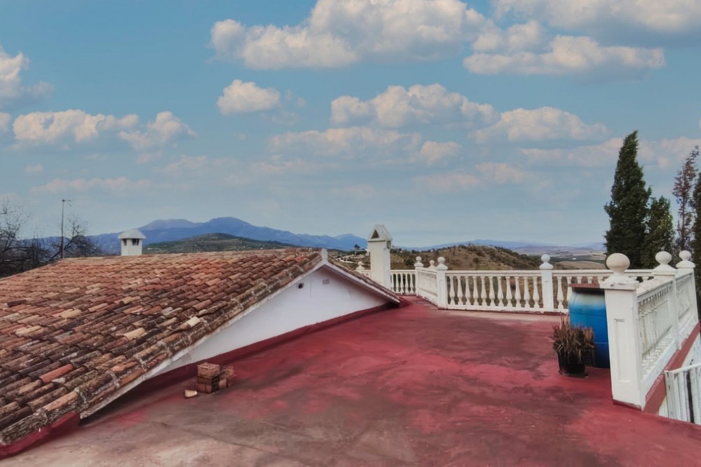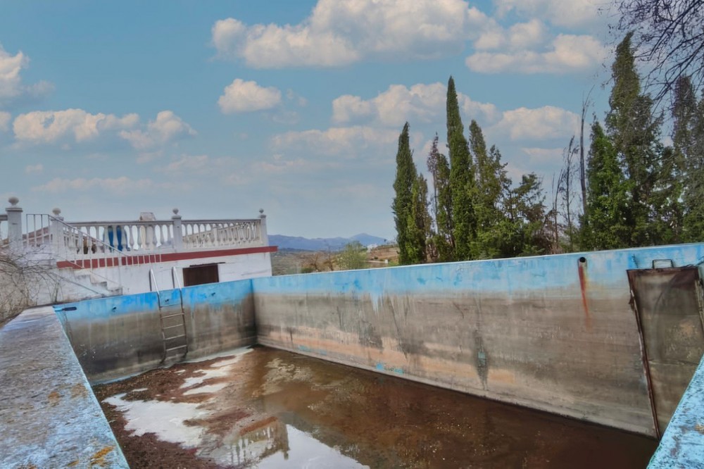 - Beautiful finca for sale in Guaro, set on a partially fenced 36,500m² plot, ideal for enjoying the peace of the countryside and plenty of open space. The property features a house, a large storage room, porch, swimming pool, and water storage, as well as areas for cultivating almond and olive trees. House: The main house is a single storey with a roof terrace (accessible via exterior stairs). The ground floor includes: • Living-dining room • Kitchen • Bathroom • 2 bedrooms + a third room currently used as storage • Storage room Annexes and Outdoors: • Large independent storage room, accessible from both inside and outside the house. • Covered porch, perfect for enjoying the outdoors. • 50m² Swimming pool and 24m² water storage. Access: • Dirt road with some bumps and loose stones, within the private path of the property Utilities: • Well water • Town water This finca combines comfort, privacy, and connection with nature, perfect as a summer residence, investment, or agricultural project.