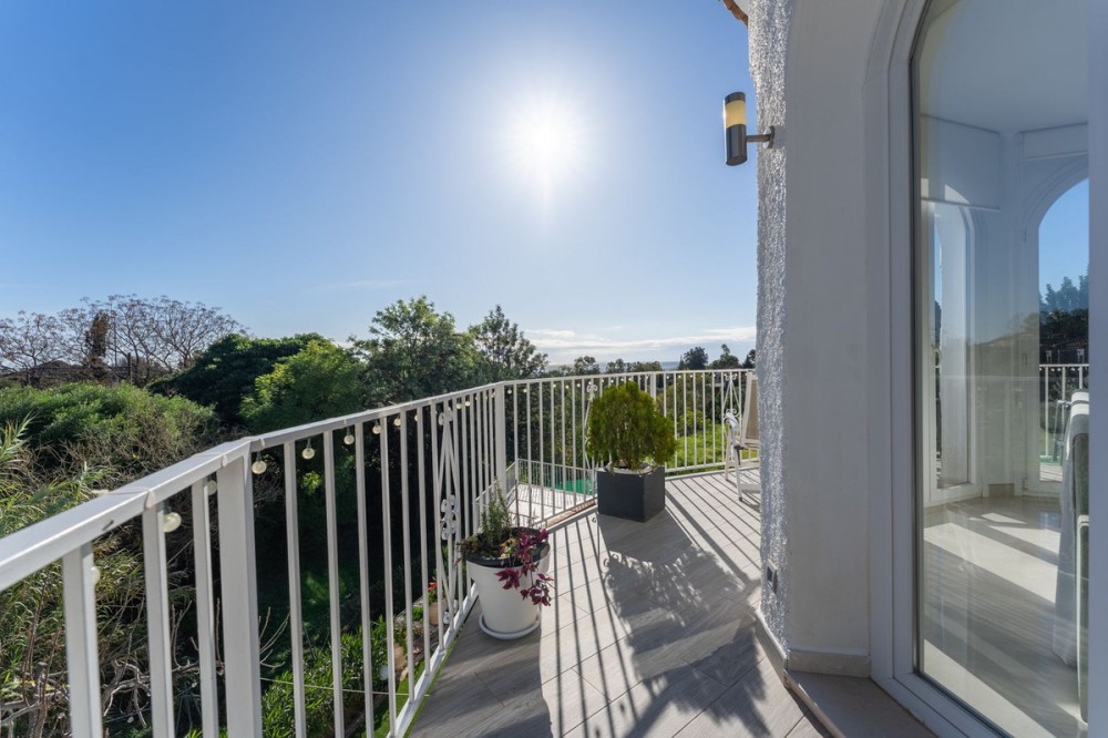 - Charming Fully Renovated Villa with Stunning Views and Ideal Location in Mijas This beautifully reformed 3-bedroom, 3-bathroom en-suite villa offers the perfect combination of tranquility and convenience. Just minutes from the picturesque whitewashed village of Mijas Pueblo and a short 5-minute drive to Fuengirola’s golden beaches, this home provides effortless access to the best of the Costa del Sol. A nearby bus stop enhances everyday convenience. The bright and airy living room features floor-to-ceiling windows that flood the space with natural light and showcase breathtaking views. Next to it is a newly renovated, fully fitted kitchen with an island and a charming dining area, ideal for memorable gatherings. A cozy sunroom extends from the kitchen, providing a perfect spot to enjoy the stunning surroundings year-round. From here, step out onto a wrap-around terrace—perfect for relaxing while taking in the panoramic scenery. The lower level boasts a private master suite with a stylish bathroom, fitted wardrobes, and a spacious layout offering complete privacy. Nearby, a functional laundry/storage room enhances daily convenience and provides direct access to the garage and outdoor area. Another generously sized en-suite guest bedroom is also on the lower level, ensuring both comfort and privacy for visitors. At the base of the stairs, you’ll find direct access to the pool, as well as a versatile office space—ideal for remote work or personal projects. Designed for both relaxation and entertainment, the outdoor area includes a private pool, a covered carport, a garage, and a gated driveway with additional parking. Blending charm, modern amenities, and a prime location, this villa is a rare find in the heart of the Costa del Sol. Don’t miss the opportunity to make it yours—contact us today for more information!