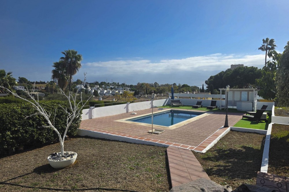 - Charming Detached Villa with Private Pool and Large Plot in Estepona This inviting detached villa is located in a quiet residential area of Estepona, just a five-minute drive from the town center and all its amenities. With a generous 935 m² plot, the property offers privacy, spaciousness, and a comfortable lifestyle surrounded by greenery, making it an ideal choice as both a family home and a holiday retreat. The villa boasts 224 m² of living space distributed on a single level, with bright and airy rooms. The exterior is one of its greatest attractions: a large private garden, a private pool, and perfect areas for relaxing, sunbathing, or enjoying al fresco dining. Inside, there are three bedrooms plus an additional room that can be used as a fourth bedroom, office, or playroom, as well as two full bathrooms. The living room stands out for its spaciousness, fireplace, and direct access to a 60 m² terrace, allowing you to enjoy the Mediterranean climate year-round. The kitchen, separate but easily convertible into an open-plan space, offers functionality and numerous customization options. Marble floors, included furnishings, and an east-south orientation that guarantees abundant natural light complete the interior of the home. The property also features a closed garage, an additional carport, and a storage area, providing ample space for vehicles and belongings. As for its location, this villa enjoys a privileged setting. It is very close to the beaches of Estepona and the lively marina, where you can enjoy restaurants, water sports, and long walks along the seafront. The area boasts several prestigious golf courses, such as Valle Romano, Azata Golf, and Estepona Golf, and offers easy access to supermarkets, schools, shops, and essential services. The historic center of Estepona, one of the most beautiful and well-maintained in Andalusia, is also just minutes away, as are the quick connections to the A-7 and AP-7 motorways, allowing for convenient travel to Marbella, Puerto Banús, Sotogrande, Gibraltar, or Málaga Airport. Overall, this villa combines privacy, comfort and an outstanding location, making it an excellent opportunity in one of the most sought-after areas of the Costa del Sol.