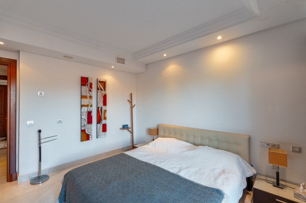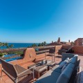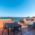 - Discover an exquisite penthouse in the prestigious Mar Azul community, located on the eastern edge of Estepona. This 1-bedroom, 1-bathroom residence offers 134 m² of meticulously maintained living space, complemented by a spectacular 56 m² private terrace with sweeping panoramic views of the sea and surrounding landscapes. Positioned directly on the beachfront, the property provides an unrivaled opportunity to embrace the iconic Costa del Sol lifestyle. An exceptional feature of this property is its potential for expansion: the terrace can be enclosed with glass, creating additional living space that could accommodate 2 or 3 bedrooms with a total of 2 bathrooms, offering a highly versatile opportunity for customization. The penthouse is fully furnished and features a fully equipped kitchen, marble floors, and a spacious living-dining area that seamlessly connects to the terrace. Modern comforts include air conditioning, underfloor heating in the bathroom, double-glazed windows, and secure shutters, ensuring a comfortable and secure environment year-round. A private garage space and storage room are included. Residents of Mar Azul enjoy extensive communal facilities, including a heated indoor pool, SPA, gym, landscaped gardens, and a sun terrace. Security is paramount, with a gated community, 24-hour security service, surveillance cameras, video intercom, and on-site concierge. The building is equipped with an elevator, and ample visitor parking is available. The property is maintained to the highest standards, with dedicated 24-hour services for residents. The location is exceptional, with easy access to services, transport, shops, schools, restaurants, and leisure options. Golf courses, playgrounds, and the vibrant hubs of Puerto Banús, Marbella town center, and Estepona center are all within close reach, making this penthouse a truly outstanding choice for those seeking a refined beachfront home that combines elegance, comfort, and limitless potential.