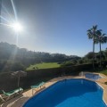 - Beautiful duplex located in the Las Flores del Golf urbanization in Mijas Costa, offering magnificent views of the golf course, the sea, and the communal pools. The property consists of 2 bedrooms and 2 bathrooms, one of which has been completely renovated. The modern, fully equipped kitchen has also been entirely refurbished. The bright living room has direct access to a large south-facing terrace, ideal for enjoying the sun all day long and the unobstructed views. Upstairs, the second bedroom also has direct access to a spacious second terrace, offering even more panoramic views of the golf course and the sea. The residence offers private parking spaces within the urbanization. Set in a peaceful and green environment, the complex features two communal swimming pools and well-maintained gardens. The apartment is surrounded by prestigious golf courses such as El Chaparral and Miraflores Golf. The beaches of Mijas Costa are just 2 km away. Nearby, you will find numerous restaurants, cafés, supermarkets, pharmacies, as well as the El Zoco shopping center and La Cala de Mijas, both only a few minutes away. A bright, well-maintained, and ideally located penthouse — perfect as a primary residence, a holiday home, or a rental investment.