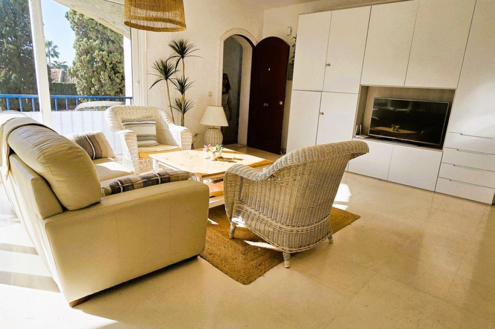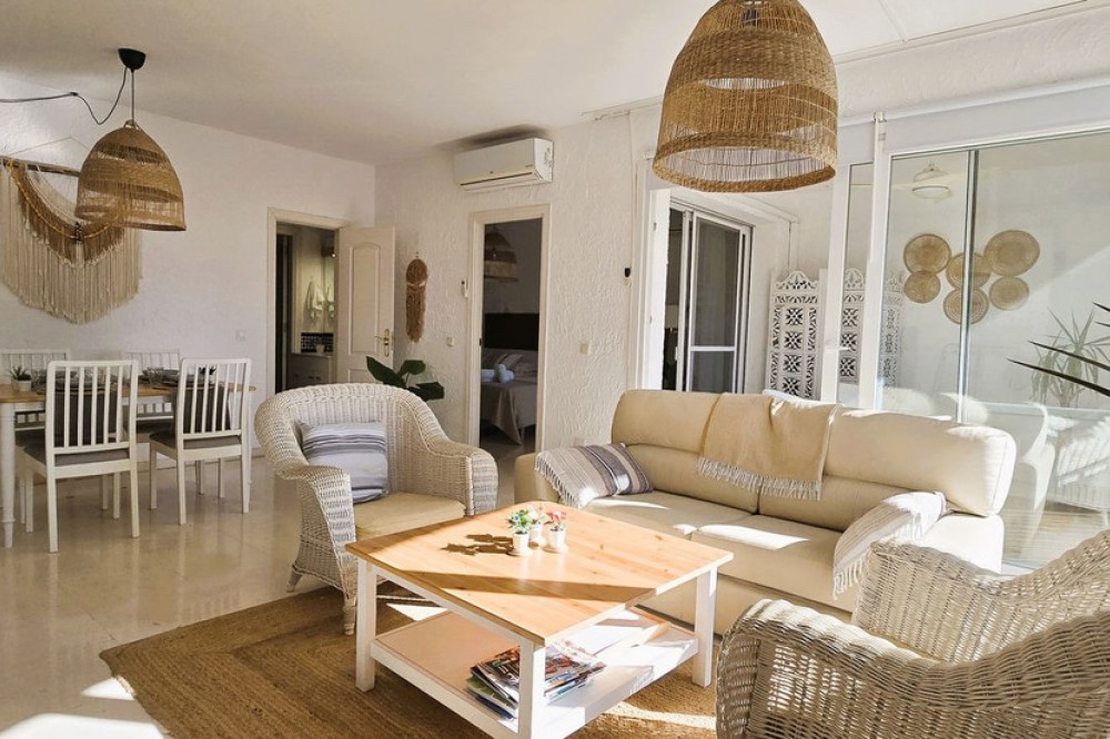 - Charming, bright, and completely renovated apartment in Mijas Golf, a prestigious and exclusive area of Mijas. This spacious apartment features a south-facing covered terrace, tiled floors, air conditioning, a large living-dining room with an open-plan kitchen, and a large bedroom with an en-suite bathroom. It is located on the first floor. An elevator takes you from the private parking area to the apartment. The complex is gated and has a communal swimming pool. It is a perfect property for golf and nature lovers. Perfect for investment in this area. The property has a tourist license. We are 30 minutes from Malaga Airport. We are 15 minutes from the center of Fuengirola and 25 minutes from Marbella. The beach is a 15-minute drive away. In this area of Andalusia, we enjoy more than 300 days of sunshine.