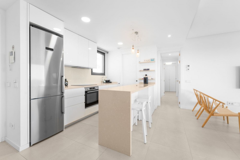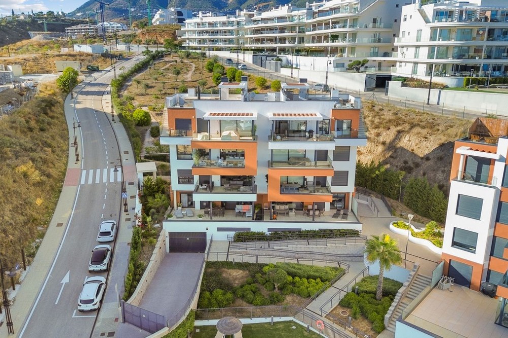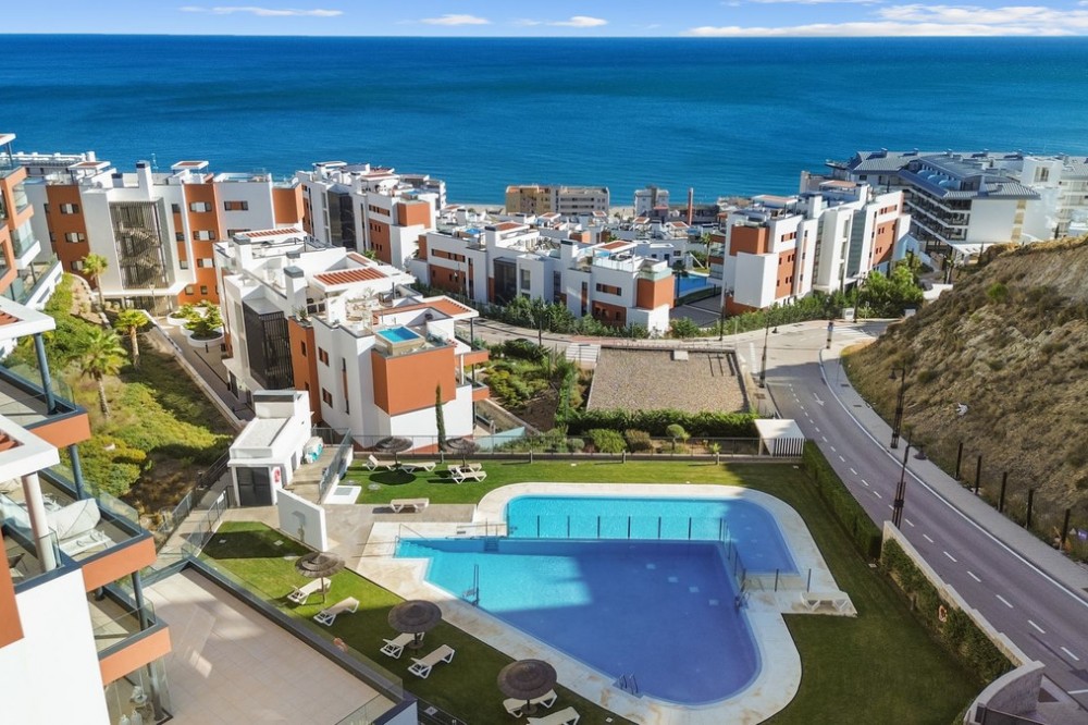- Luxurious duplex penthouse with stunning views of the Mediterranean Sea! This spectacular two-story penthouse delivers luxury and quality with a stunning sea view from every room. When you enter this home, you immediately feel a calm and harmonious feeling of the open floor plan that seamlessly transitions into a blue sea through the large windows. The two bedrooms are well-sized and the master bedroom has an en suite bathroom. The kitchen is equipped with top-quality appliances and directly connected is a separate room with space for a washing machine and storage. From the apartment, you take the elevator directly down to the garage where two parking spaces and a large storage room are included. The large roof terrace with its own pool, jacuzzi, bar and lounge area is inviting and imagine taking your morning snack or evening drink in this environment and just enjoying the sunrise or the starry sky ... Middle views is a popular association that offers a professional gym, community areas and high-class pool areas. Within easy walking distance you will find the train station that takes you to the airport or Malaga city. The 10-mile long promenade and its restaurant selection are also within a short walk. This is the perfect home for those of you who want to invest in a place by the sea in one of the most sought-after locations on the Costa del Sol.