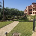 - Spacious Ground Floor Apartment with Large Terrace and Direct Garden Access – La Duquesa Discover this inviting ground floor apartment located in one of the most sought-after areas of La Duquesa, ideal for those seeking comfort, privacy, and a peaceful setting near the sea. The property boasts 112 m² of interior space and a spacious 63 m² private terrace, perfect for enjoying the outdoors, sunbathing, or hosting meals and gatherings with family and friends. The terrace offers direct access to the well-maintained communal garden, providing a sense of spaciousness and connection with nature. The interior comprises two double bedrooms with built-in wardrobes and two full bathrooms, one of which is en-suite. The apartment features a semi-open kitchen that can be transformed into a fully open-plan space if desired, as well as a bright living-dining room with large windows that provide natural light throughout the day, thanks to its southeast orientation. High-quality features include marble floors, air conditioning, double-glazed windows, and the apartment is delivered furnished and ready to move into. Furthermore, it includes an underground parking space and storage room, a significant added value for both permanent residence and holiday rentals. The gated and secure complex features tropical gardens, a communal swimming pool, a children's play area, and green spaces, ideal for families or those seeking a peaceful retreat close to everything. Community fees are reasonable for the level of services offered. Its location is outstanding due to its proximity to key points of interest: it is just minutes from Puerto de La Duquesa, with its wide range of restaurants and leisure activities, as well as beaches, supermarkets, schools, sports facilities, and several golf courses. In addition, the connection to the A-7 motorway allows you to reach Estepona in 10 minutes, Sotogrande in 15 minutes, Marbella in 25 minutes, and Malaga Airport in under an hour. This apartment is an excellent option as a primary residence, a second home, or an investment with great potential for holiday and long-term rentals, thanks to its size, features, and strategic location. A versatile and well-maintained property, ready to be enjoyed from day one in a privileged setting on the Costa del Sol.