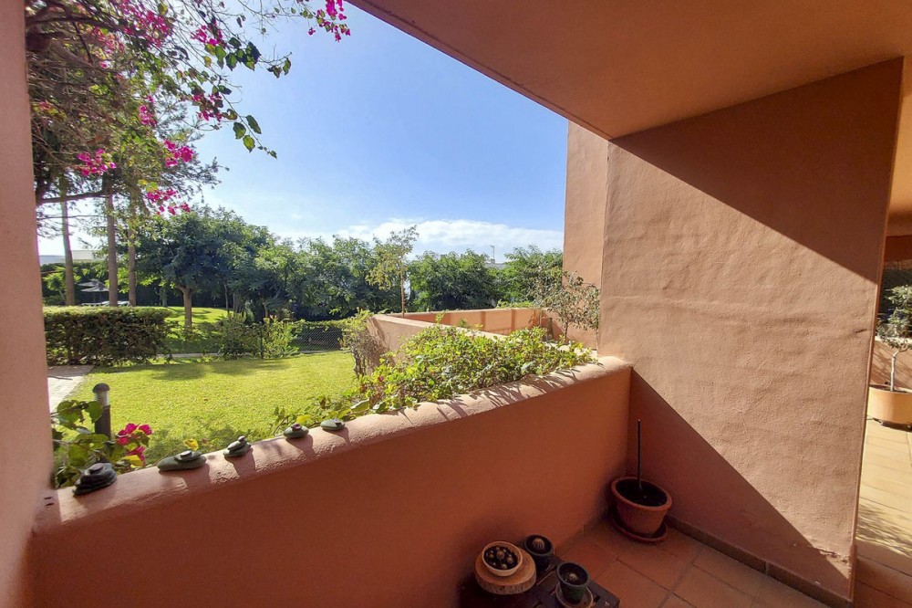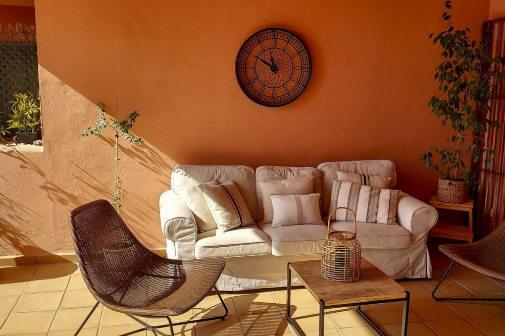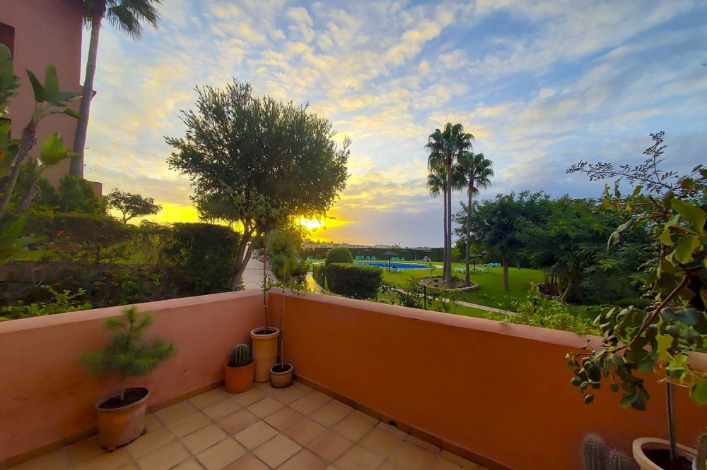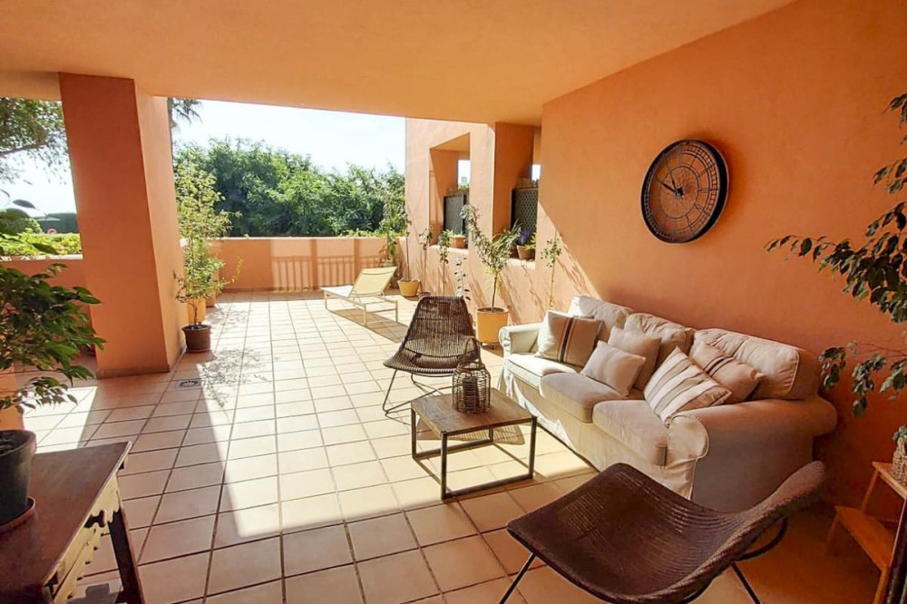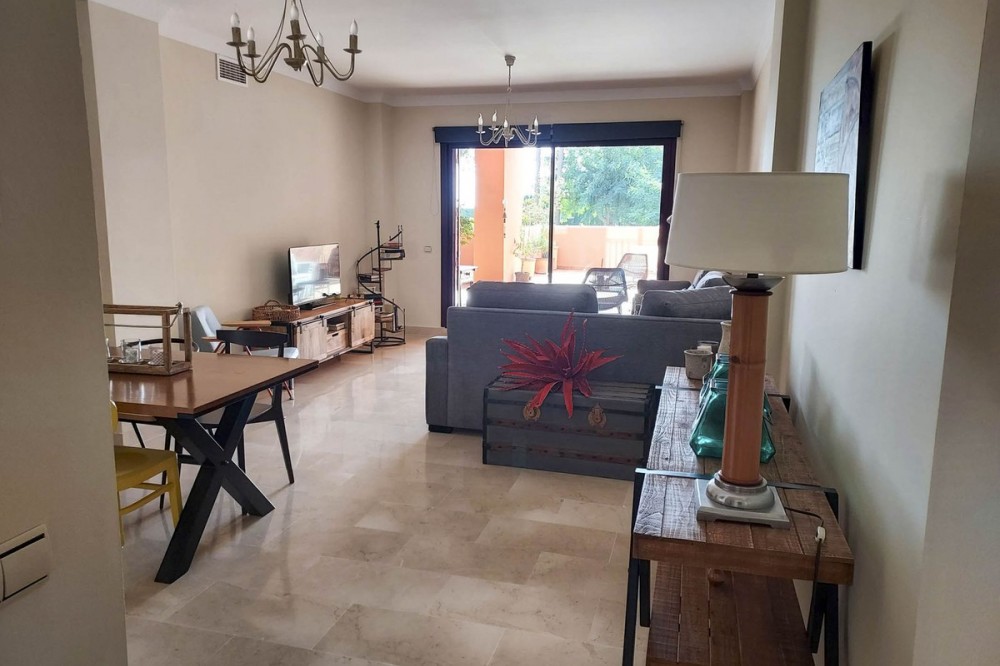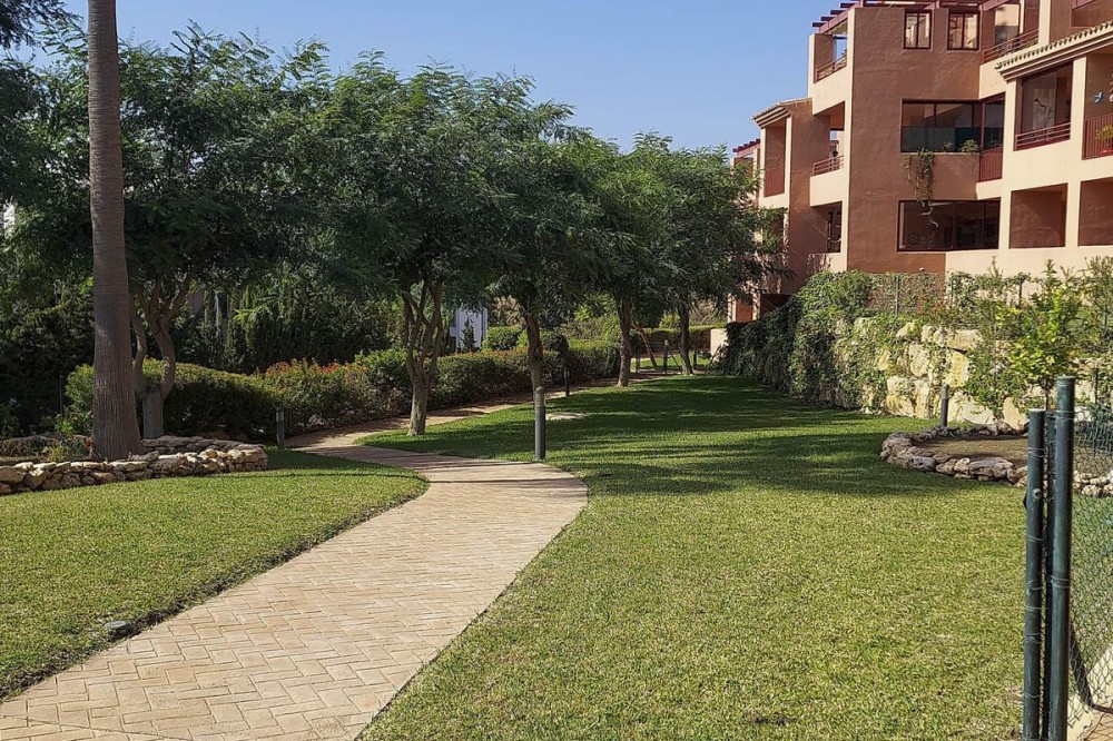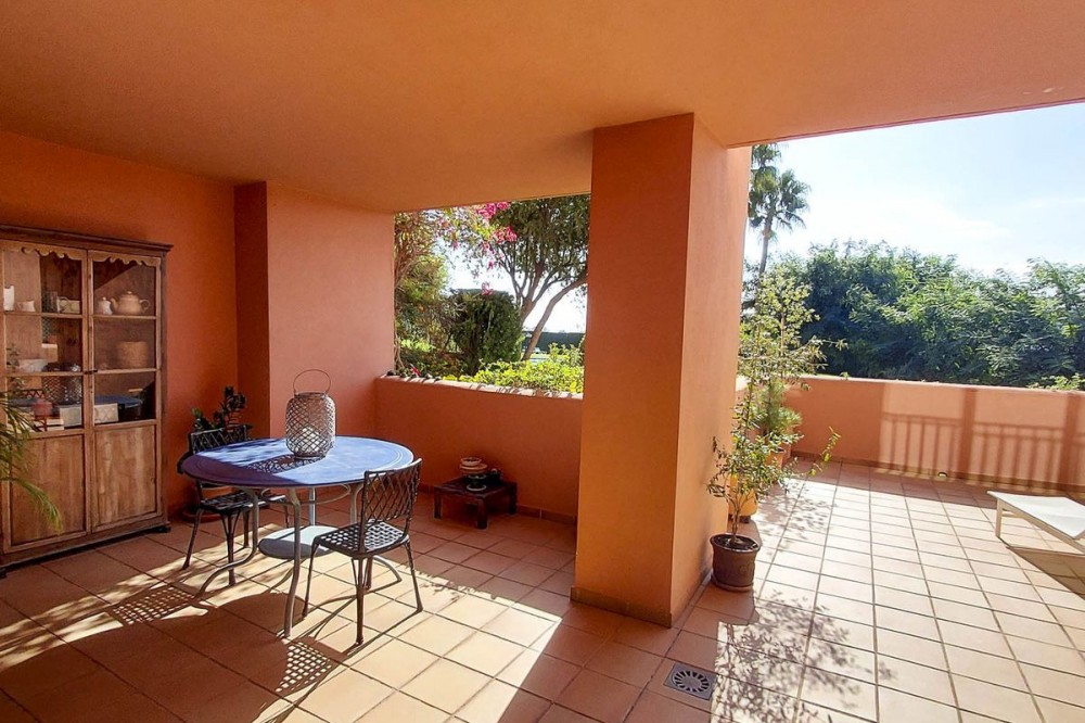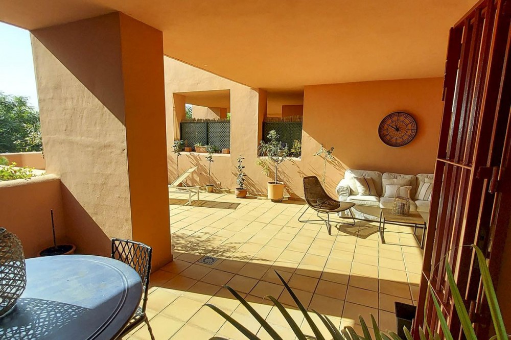 - Spacious Ground Floor Apartment with Large Terrace and Direct Garden Access – La Duquesa Discover this inviting ground floor apartment located in one of the most sought-after areas of La Duquesa, ideal for those seeking comfort, privacy, and a peaceful setting near the sea. The property boasts 112 m² of interior space and a spacious 63 m² private terrace, perfect for enjoying the outdoors, sunbathing, or hosting meals and gatherings with family and friends. The terrace offers direct access to the well-maintained communal garden, providing a sense of spaciousness and connection with nature. The interior comprises two double bedrooms with built-in wardrobes and two full bathrooms, one of which is en-suite. The apartment features a semi-open kitchen that can be transformed into a fully open-plan space if desired, as well as a bright living-dining room with large windows that provide natural light throughout the day, thanks to its southeast orientation. High-quality features include marble floors, air conditioning, double-glazed windows, and the apartment is delivered furnished and ready to move into. Furthermore, it includes an underground parking space and storage room, a significant added value for both permanent residence and holiday rentals. The gated and secure complex features tropical gardens, a communal swimming pool, a children's play area, and green spaces, ideal for families or those seeking a peaceful retreat close to everything. Community fees are reasonable for the level of services offered. Its location is outstanding due to its proximity to key points of interest: it is just minutes from Puerto de La Duquesa, with its wide range of restaurants and leisure activities, as well as beaches, supermarkets, schools, sports facilities, and several golf courses. In addition, the connection to the A-7 motorway allows you to reach Estepona in 10 minutes, Sotogrande in 15 minutes, Marbella in 25 minutes, and Malaga Airport in under an hour. This apartment is an excellent option as a primary residence, a second home, or an investment with great potential for holiday and long-term rentals, thanks to its size, features, and strategic location. A versatile and well-maintained property, ready to be enjoyed from day one in a privileged setting on the Costa del Sol.