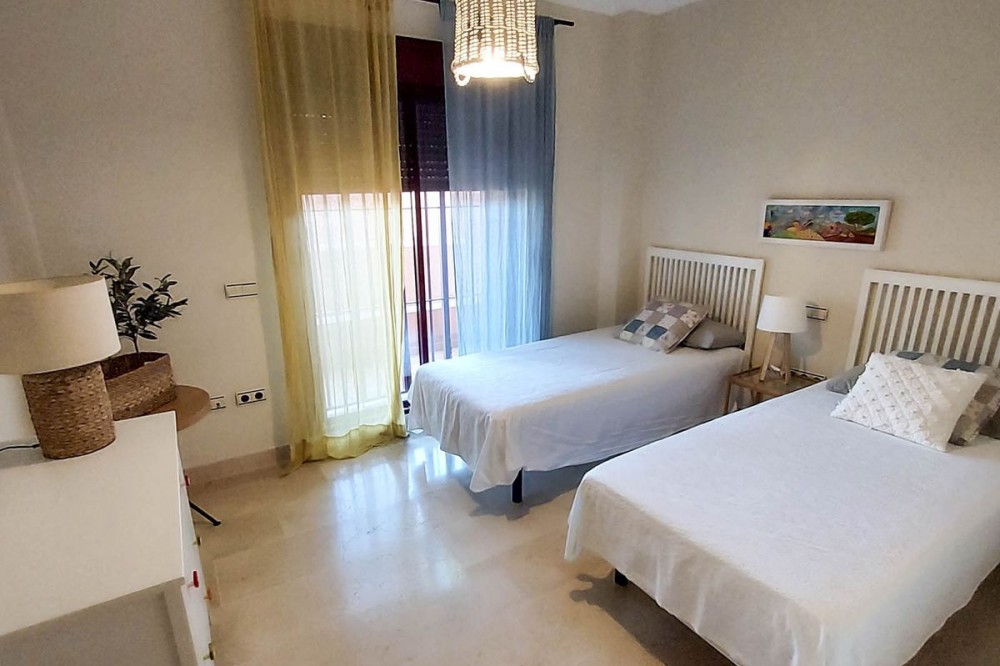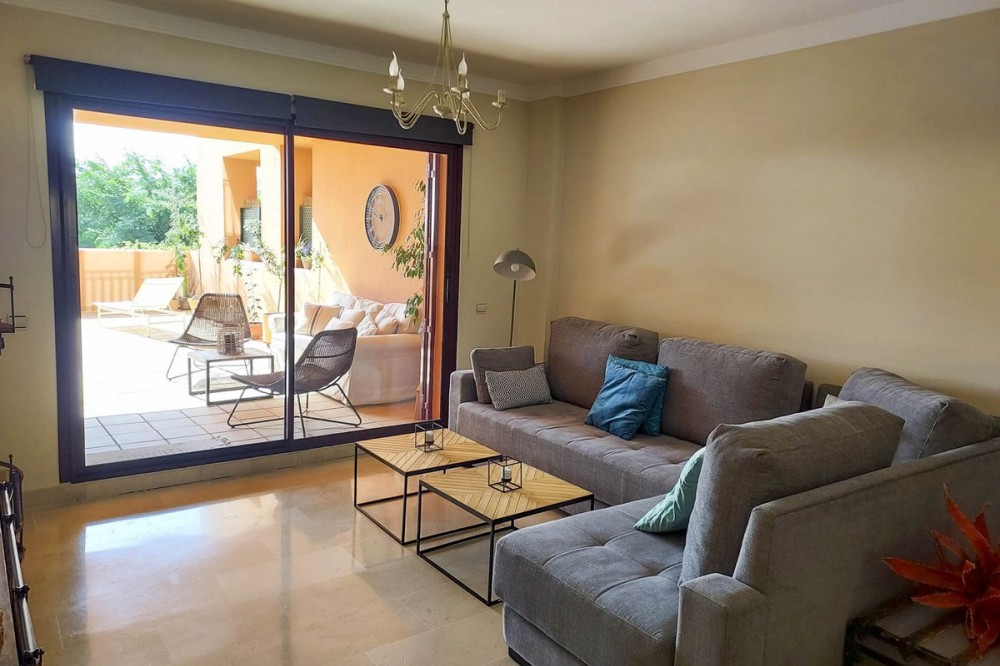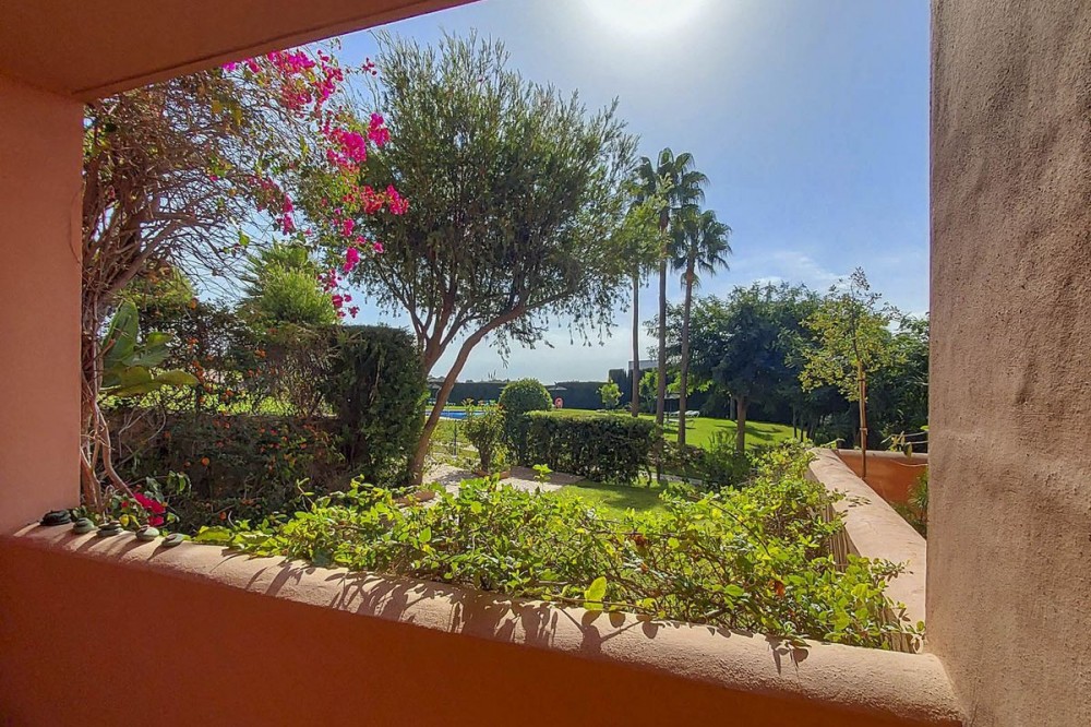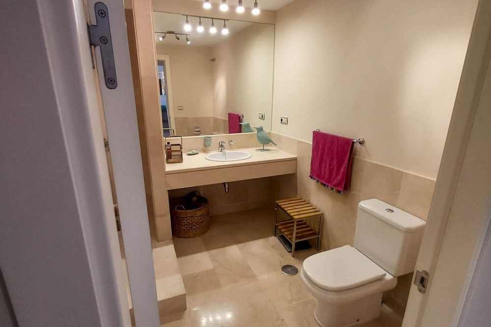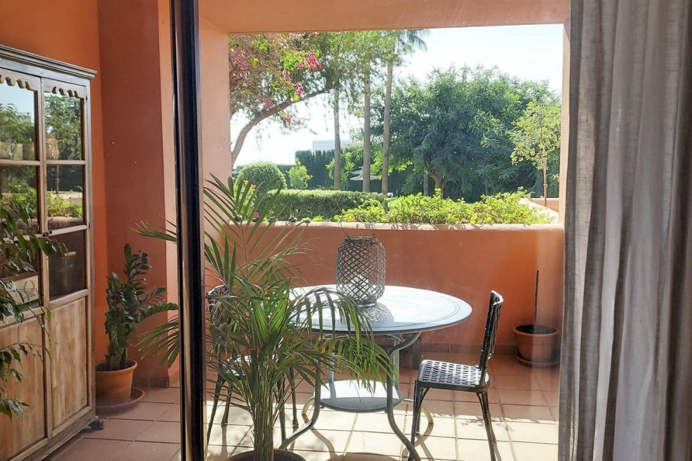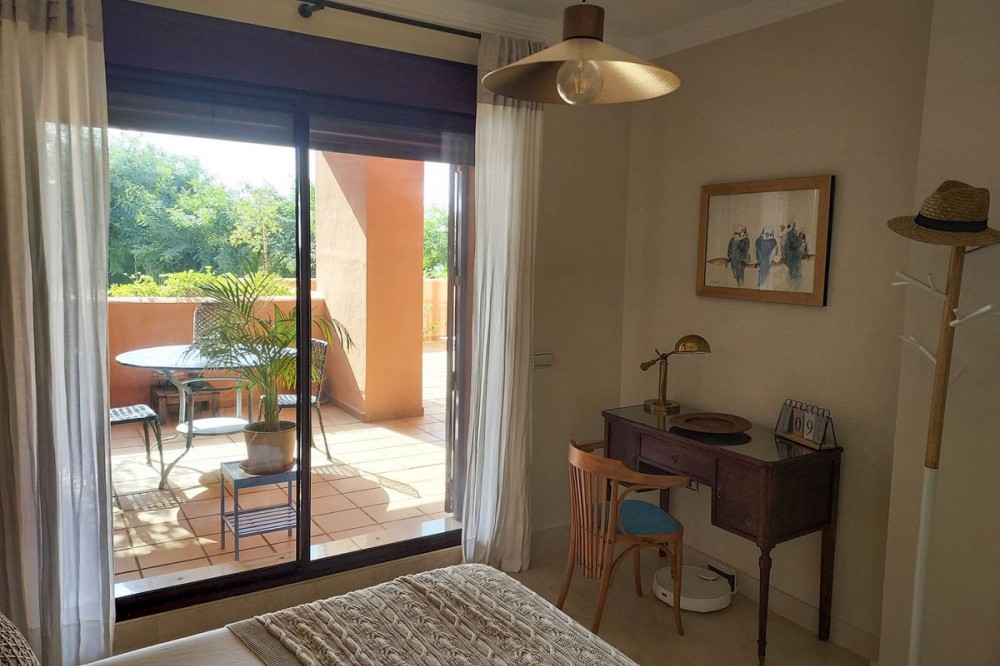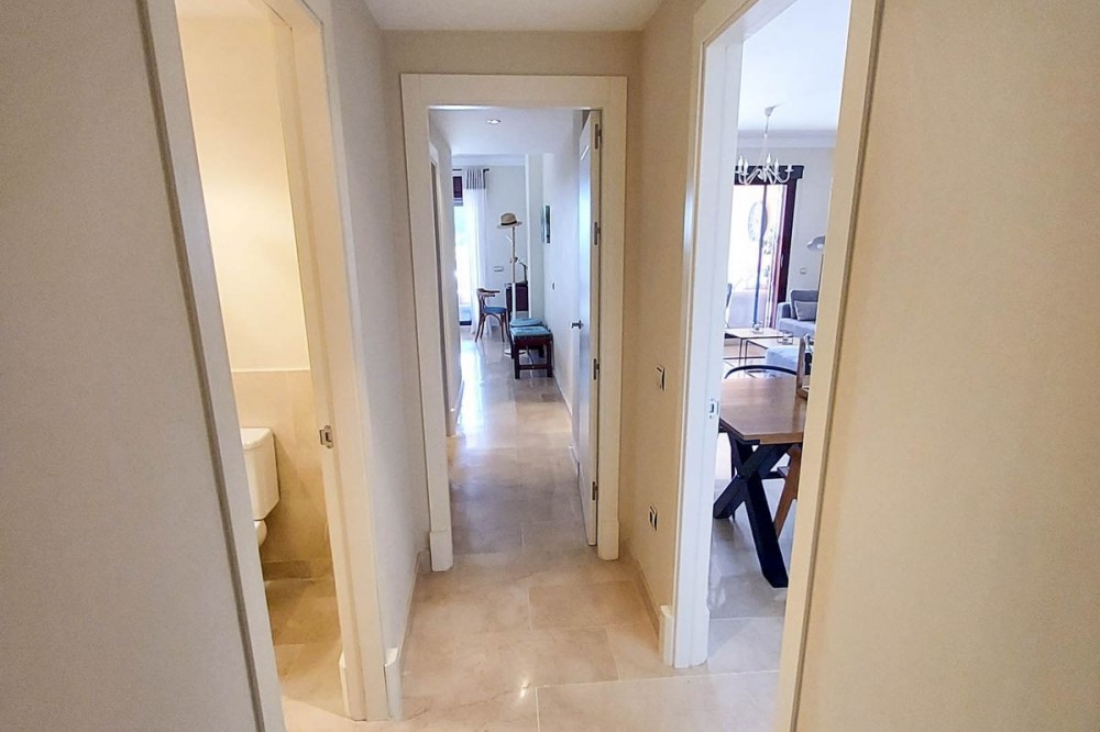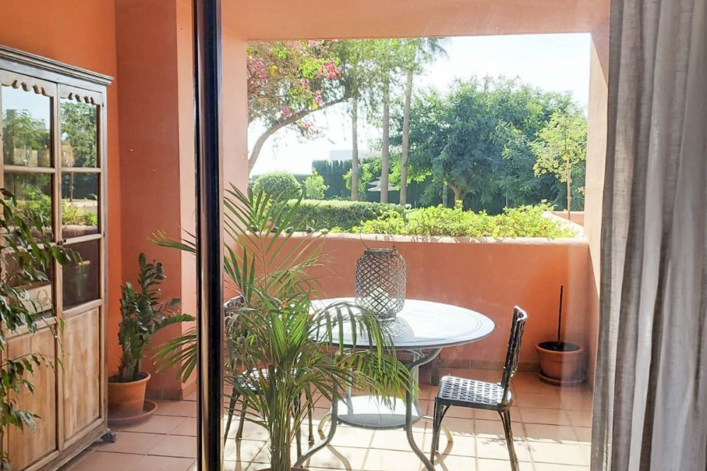 - Spacious Ground Floor Apartment with Large Terrace and Direct Garden Access – La Duquesa Discover this inviting ground floor apartment located in one of the most sought-after areas of La Duquesa, ideal for those seeking comfort, privacy, and a peaceful setting near the sea. The property boasts 112 m² of interior space and a spacious 63 m² private terrace, perfect for enjoying the outdoors, sunbathing, or hosting meals and gatherings with family and friends. The terrace offers direct access to the well-maintained communal garden, providing a sense of spaciousness and connection with nature. The interior comprises two double bedrooms with built-in wardrobes and two full bathrooms, one of which is en-suite. The apartment features a semi-open kitchen that can be transformed into a fully open-plan space if desired, as well as a bright living-dining room with large windows that provide natural light throughout the day, thanks to its southeast orientation. High-quality features include marble floors, air conditioning, double-glazed windows, and the apartment is delivered furnished and ready to move into. Furthermore, it includes an underground parking space and storage room, a significant added value for both permanent residence and holiday rentals. The gated and secure complex features tropical gardens, a communal swimming pool, a children's play area, and green spaces, ideal for families or those seeking a peaceful retreat close to everything. Community fees are reasonable for the level of services offered. Its location is outstanding due to its proximity to key points of interest: it is just minutes from Puerto de La Duquesa, with its wide range of restaurants and leisure activities, as well as beaches, supermarkets, schools, sports facilities, and several golf courses. In addition, the connection to the A-7 motorway allows you to reach Estepona in 10 minutes, Sotogrande in 15 minutes, Marbella in 25 minutes, and Malaga Airport in under an hour. This apartment is an excellent option as a primary residence, a second home, or an investment with great potential for holiday and long-term rentals, thanks to its size, features, and strategic location. A versatile and well-maintained property, ready to be enjoyed from day one in a privileged setting on the Costa del Sol.