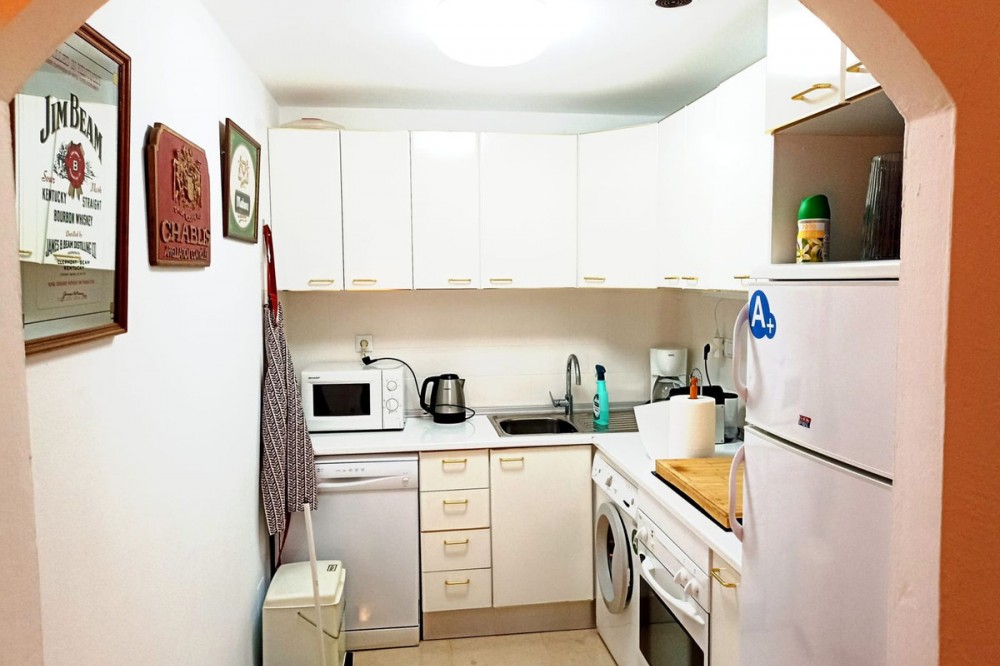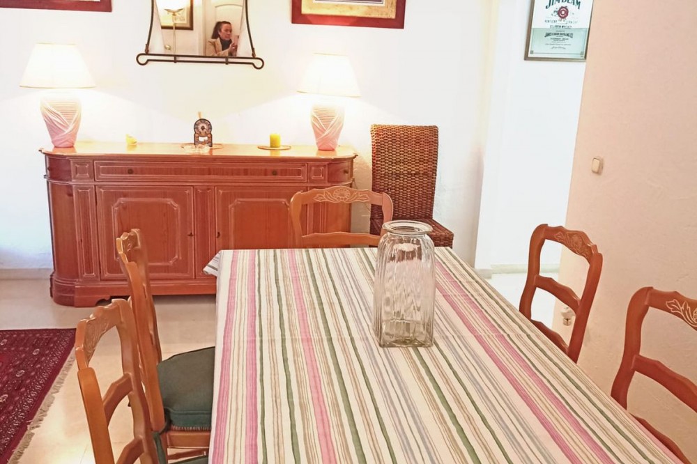 - Magnificent apartment with its own private garden in Mijas Golf. This splendid and bright apartment features a spacious bedroom with direct access to a large terrace, perfect for enjoying the Costa del Sol climate. From the living-dining room, you can also access another large terrace that connects directly to a stunning private garden filled with palm trees and tropical plants, creating an exclusive atmosphere reminiscent of a private cottage. It also includes fitted wardrobes and an en-suite bathroom; there is also a guest toilet. The property includes a versatile annex, ideal as a small bedroom or office. It is sold furnished and includes an underground parking space within a quiet, gated community that also has a communal swimming pool. Its prime location near the golf course makes it attractive to both sports enthusiasts and those seeking comfort close to the beaches, Fuengirola, and Marbella. We are available to arrange a viewing without obligation. In compliance with Decree 218/2005 of the Regional Government of Andalusia, dated October 11, please note that the price indicated does not include expenses inherent to the purchase of real estate according to current legislation (Property Transfer Tax or VAT, notary fees, land registry fees, administrative fees). The information provided is for informational purposes only and has no contractual value. The offer is subject to errors, price changes, omissions, availability, and/or withdrawal from the market without prior notice.