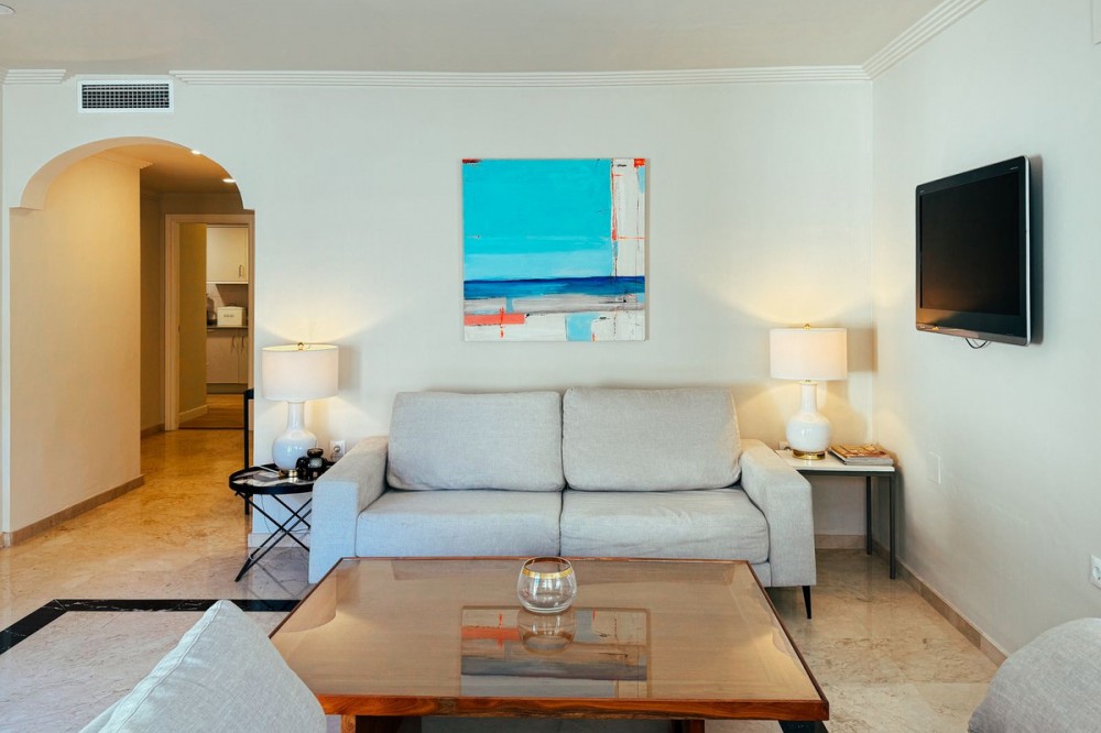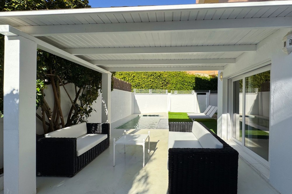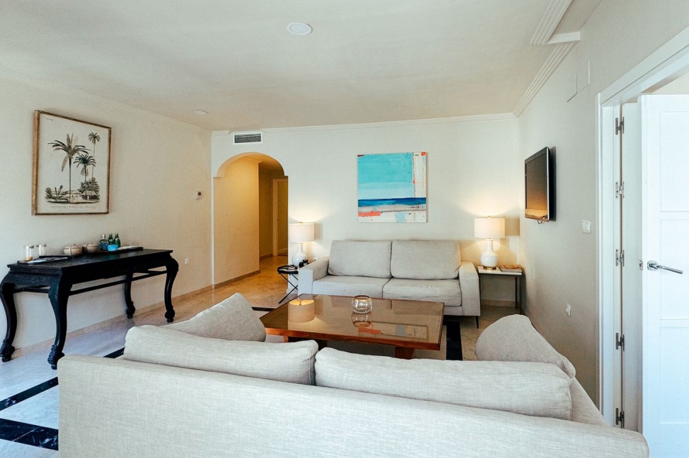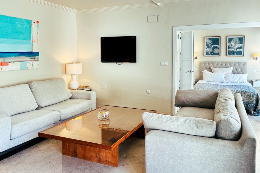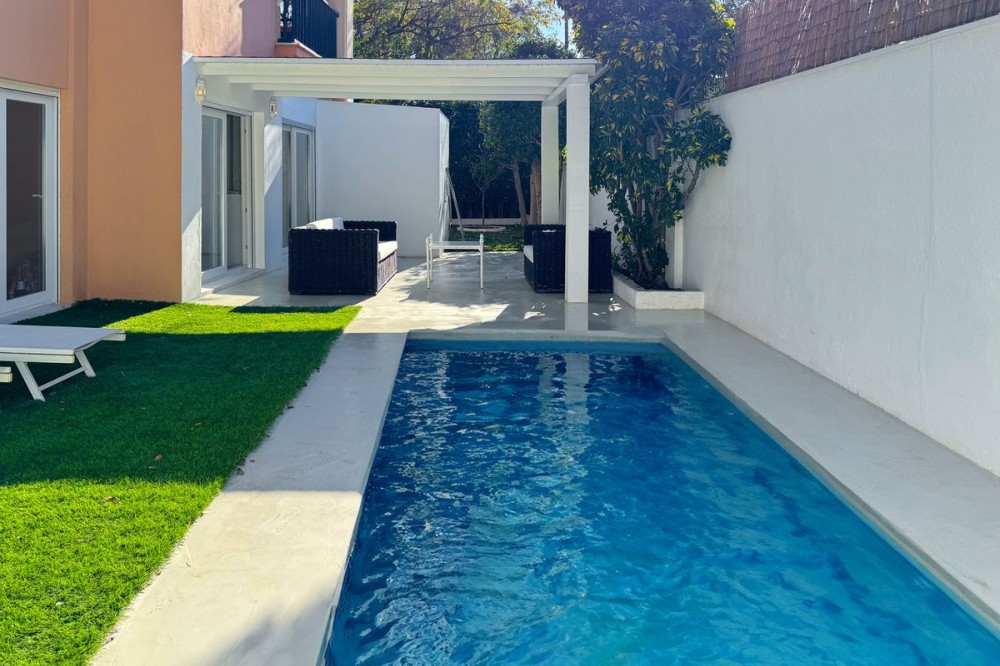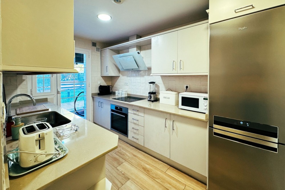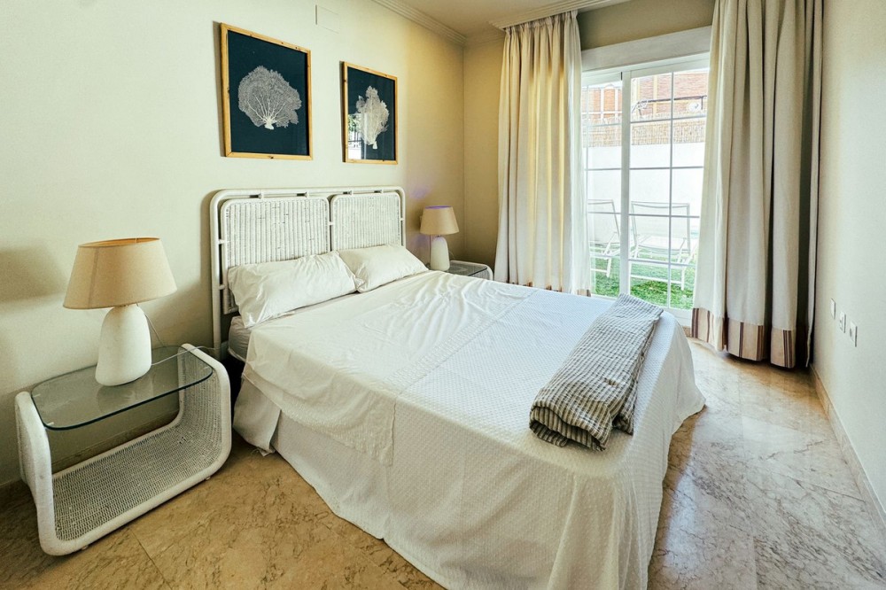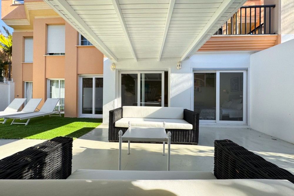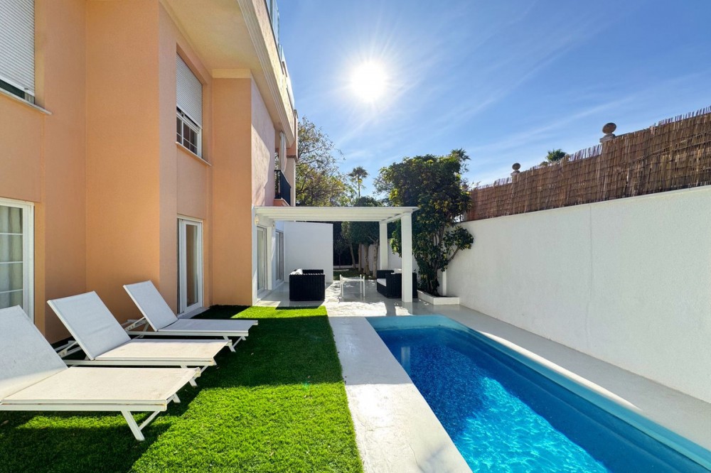 - We present this exclusive luxury apartment, located in one of Marbella's most desirable areas, with direct beach access. Perfect for those seeking comfort, privacy, and a sophisticated lifestyle. The apartment boasts 150 m² of meticulously designed interiors, including: A spacious and bright living room, ideal for relaxing or entertaining. Three spacious bedrooms with modern finishes, ensuring maximum comfort. Three elegant and functional full bathrooms. A fully equipped kitchen with high-end appliances and ample storage space. Outside, you'll find a 150 m² private garden, the perfect place to enjoy tranquility outdoors. The apartment also features a terrace with a solarium and a private pool, where you can relax and enjoy unique moments in complete privacy. The residential complex offers a wide range of amenities to complete this luxury experience: Two communal swimming pools surrounded by beautifully landscaped gardens. 24-hour security to guarantee your peace of mind at all times. Storage room and private parking space included in the price. With its exceptional location, Jardines de Lunamar offers direct beach access and is surrounded by high-quality amenities, including restaurants, shops, and leisure activities. This apartment combines luxury, comfort, and proximity to the sea, making it an ideal choice for those seeking a permanent residence or a second home in Marbella.
