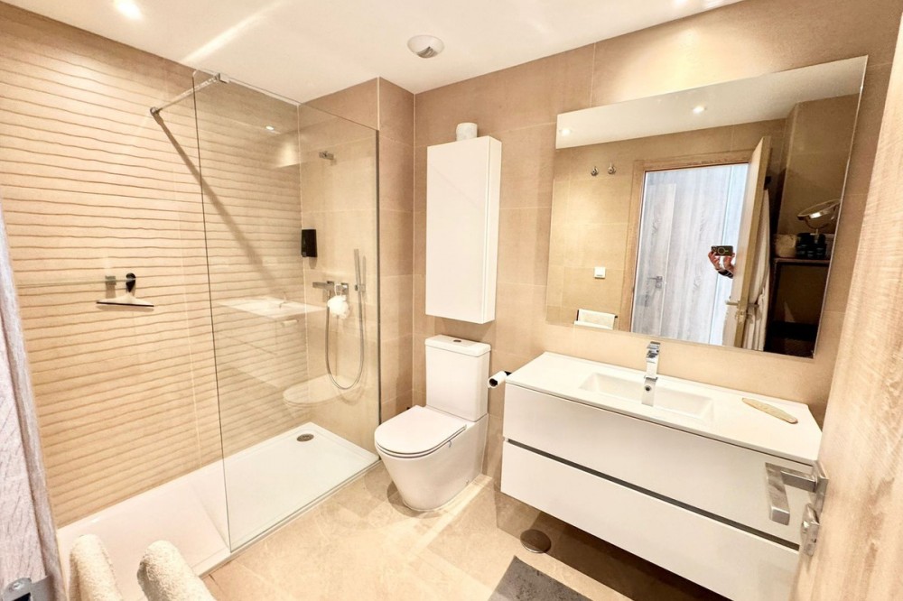 - Stunning 3-Bedroom, 2-Bathroom Flat on La Cala Golf This spacious 3-bedroom, 2-bathroom flat enjoys a prime first-line golf location at La Cala Golf, just a 10-minute drive from the center of La Cala de Mijas. The open-plan living and dining area is filled with natural light, creating an inviting space for relaxation and entertaining. The fully equipped kitchen offers ample storage and workspace, perfect for everyday living. The master bedroom features an en-suite bathroom, while the two additional bedrooms share a modern family bathroom. A private balcony overlooks the golf course, providing a serene outdoor space to unwind and enjoy the views. Ideal for golf enthusiasts, yet also close to local shops, restaurants, and beaches, this property offers a perfect blend of leisure, comfort, and convenience. A fantastic opportunity for families, couples, or investors seeking a prestigious location with stunning surroundings.