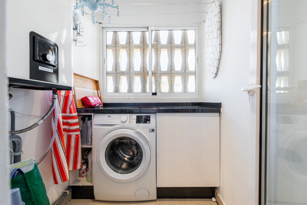 - Looking for a 3-bedroom apartment in the centre of Fuengirola? Welcome to this beautifully renovated apartment located near Fuengirola’s old bullring. The entire property has been refurbished with high-quality materials, creating a bright and airy atmosphere. New AC units are installed in all rooms, including the living room. Situated on the 7th floor, the apartment offers spectacular views. As you enter, you’ll find the tastefully renovated kitchen to your left, which is connected to a utility room designed in the same style. Straight ahead is the spacious and open living area with stunning views over the southwest part of Fuengirola and the sea. A few steps further in, you reach the bedroom area on the left. There are three well-sized bedrooms; the master bedroom features an en-suite bathroom, while the other two bedrooms share a second bathroom. Stretching across both the master bedroom and the living room is a generously sized southwest-facing terrace where you can enjoy beautiful sunsets. The community is gated and offers communal parking as well as a garden with a swimming pool.