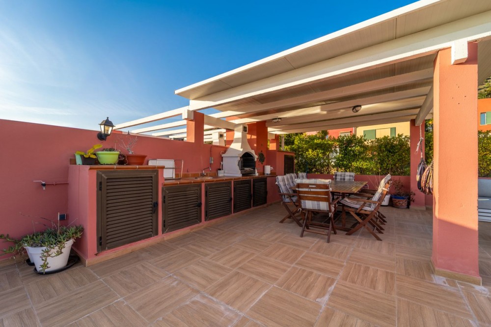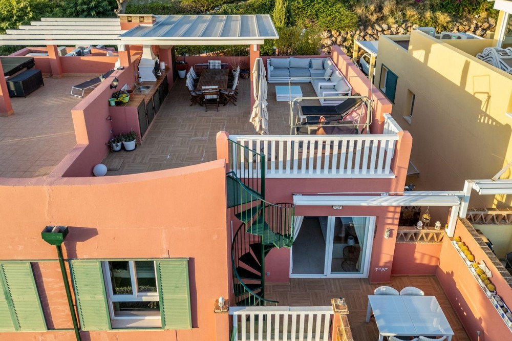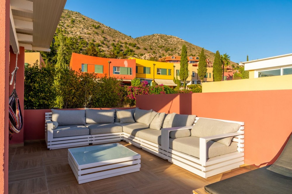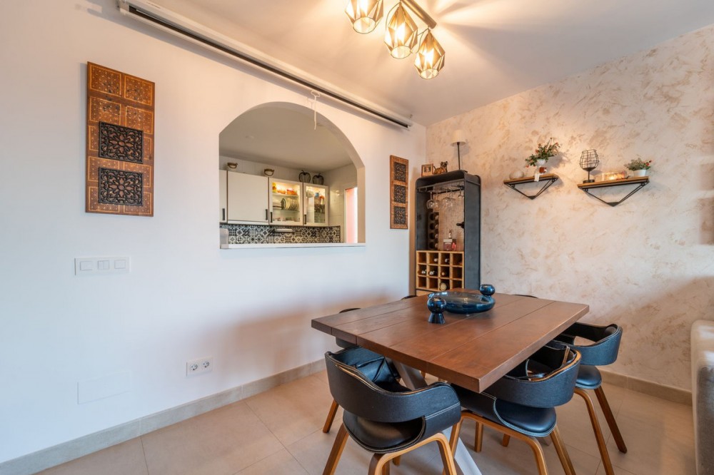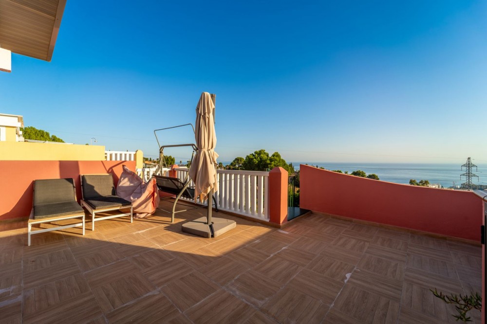 - Fabulous south facing penthouse located in the exclusive urbanization Reserva del Higuerón, with 2 bedrooms and 2 bathrooms, open plan kitchen fully furnished and equipped with electricial appliances, spacious living-dining room leading out to an 18m2 uncovered terrace with beautiful sea views. On the top there is a large solarium of 60m2 with BBQ and panoramic sea views. Built-in wardrobes in both bedrooms, air conditioning in living room. Includes a parking space. Cosy community with swimming pools and gardens.