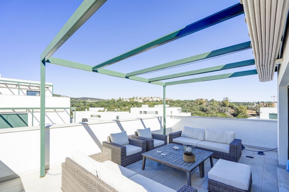 - Luxury 3-Bedroom Penthouse with Sea Views in Senda Chica – La Reserva, Sotogrande 3mins drive to Sotogrande school, and short walk to La Reserva Golf, tennis and beach club. Experience stylish modern living in this beautiful 3-bedroom penthouse located in the exclusive development in La Reserva, Sotogrande. Surrounded by a protected cork oak forest, this contemporary residence sits within a gated community offering premium facilities including a gym, padel courts, and swimming pools. This elegant penthouse features three spacious bedrooms, three of them en-suite, a guest bathroom, a bright large 80m2 open-plan living and dining area, and a sleek fully equipped kitchen. Large floor-to-ceiling windows flood the space with natural light and open onto generous terraces with beautiful sea and green valley views — perfect for relaxing or entertaining. Additional features include high-quality furnishings, dedicated laundry area, underground parking, and 24-hour security. There is also a storeroom available. Modern, private, and surrounded by nature — this penthouse showcases the very best of Sotogrande living.