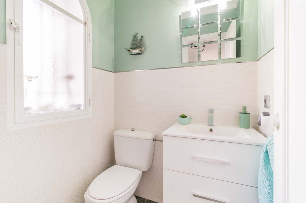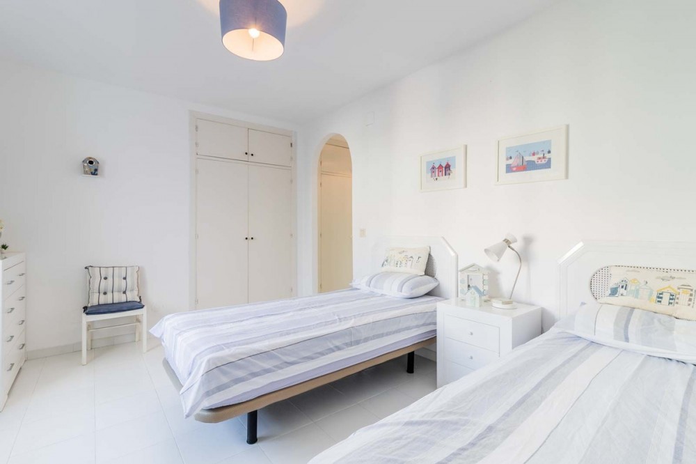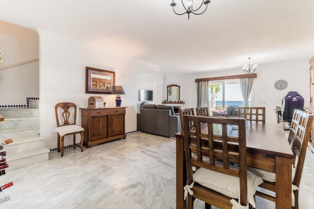 - Beautiful beachfront townhouse in Manilva Costa, located in an exclusive seaside development. Upon entering the property, you will find a convenient guest toilet. You are then welcomed into a spacious and bright living-dining area with a fireplace and a fully equipped open-plan kitchen. From the living room you can already enjoy the stunning sea and beach views. The space under the staircase has been cleverly used to create a practical storage room. The living room opens onto a lovely terrace with a private garden, offering direct access to the beach—a unique privilege to enjoy the Mediterranean at any moment. On the upper floor, there are two very spacious bedrooms, both with renovated en-suite bathrooms. The master bedroom also features a cozy balcony where you can admire the panoramic views of the Mediterranean and the Strait of Gibraltar. The property boasts marble floors, built-in wardrobes, and electric shutters, providing comfort and quality throughout. Just a few steps away you will find all kinds of services, including several beach bars and restaurants within walking distance. By car, La Duquesa Marina is only 5 minutes away and Sotogrande Marina about 10 minutes. The community offers excellent facilities: a seafront swimming pool, a tennis court, and an additional sports area. The property is located right next to the Coastal Path, perfect for enjoying long walks by the sea, reaching as far as Estepona.