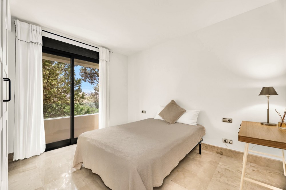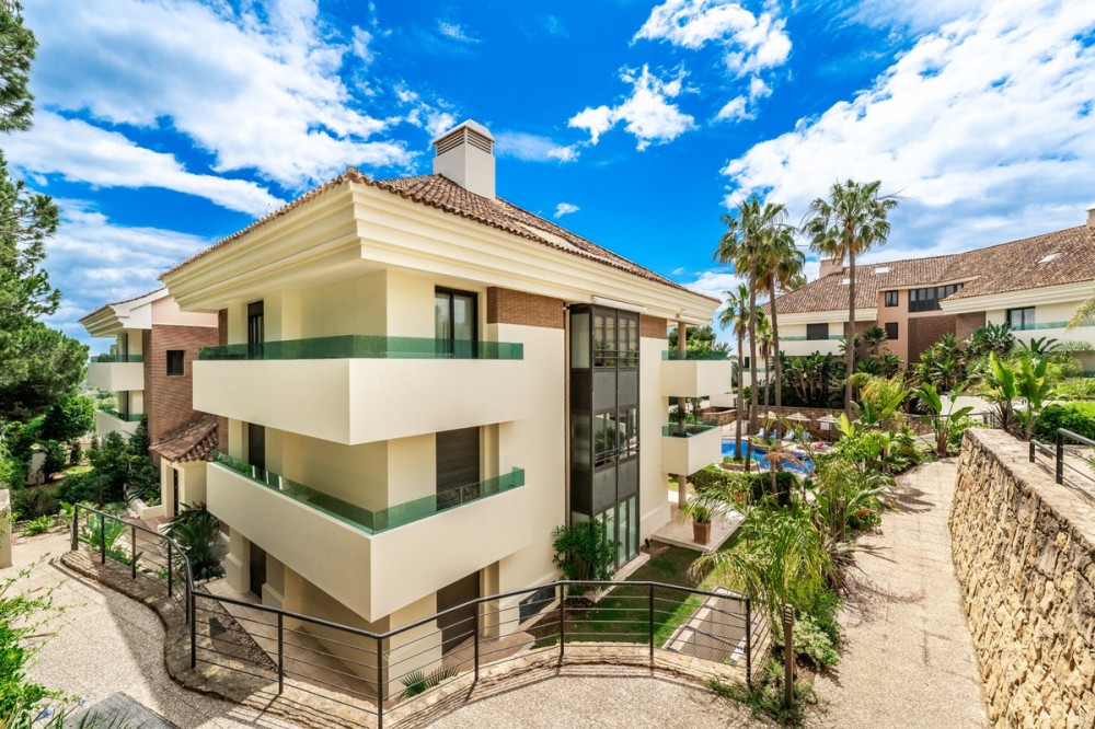 - Presented as a unique opportunity, this elegant residence is located in Los Monteros, one of the most prestigious areas of East Marbella. This is a luxury apartment that stands out for offering 3 spacious bedrooms and 3 modern bathrooms, distributed over a built area of 207 m² and complemented by an impressive private terrace of 43 m². Situated in a privileged location, just a short distance from the beach, restaurants, and the city center itself, this property enjoys direct access to all kinds of amenities and services. The apartment has been designed with maximum comfort in mind, featuring top-quality finishes and a functional layout. It is sold fully furnished, with an independent living room equipped with a fireplace, a dining area, and access to a covered terrace with unobstructed views of both the mature gardens of the development and the communal pool. Interior features include air conditioning and underfloor heating throughout the property, a practical walk-in closet, a separate laundry room, and a storage room. The property also boasts a private elevator that connects directly from the garage to the apartment and 24-hour security service, ensuring peace and privacy. The community also offers every necessary comfort: a communal pool, perfectly maintained landscaped areas, and exclusive-use parking for residents. The predominantly residential environment emphasizes proximity to the beach and main services, making this property an ideal option both as a permanent residence and as a holiday investment. In excellent condition, this home allows you to enjoy a sophisticated lifestyle, surrounded by nature and at the same time close to the best restaurants and leisure spots in Marbella. The large terrace, balcony, and spectacular views of the garden and pool complete the Mediterranean luxury experience.