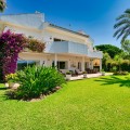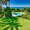 - This remarkable beachfront villa, located adjacent to the renowned Nikki Beach in Elviria, East Marbella, offers an unparalleled living experience. Spread across two levels, the villa features four spacious bedrooms, each with its own en-suite bathroom, a guest toilet, an office space, and an expansive, sunlit living room seamlessly connected to a separate dining area. A covered terrace grants access to the sprawling, beautifully landscaped garden, complete with a private heated pool – the perfect setting for enjoying the coastal climate. The property boasts a private driveway and two separate garages, ensuring ample parking and convenience. This exclusive residence is situated within the prestigious Los Jardines de Las Golondrinas gated complex, providing round-the-clock security for your peace of mind. It stands in close proximity to the esteemed Hotel Don Carlos and the Don Carlos Tennis Club, further enhancing the luxurious lifestyle that this location affords. Incorporating both natural beauty and refined living spaces, this beachfront villa represents the epitome of seaside sophistication and comfort. Experience the best of Marbella's East End with this extraordinary property.