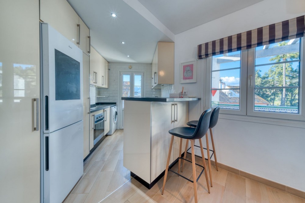 - Discover an exceptional frontline-golf residence in the charming pueblo-style community, set within the lush, tranquil surroundings of Mijas Golf. Beautifully reformed and offering 95 m² of refined living space, this elegant two-bedroom, two-bathroom home combines modern comfort with captivating views across the fairways. The interior has been thoughtfully upgraded throughout, featuring a fully fitted contemporary kitchen, quality appliances, and stylish cabinetry that blends seamlessly with the warm, inviting ambiance of the home. Tile flooring flows through each room, enhancing the sense of space and brightness. The living and dining area opens directly onto a generous private terrace, perfectly positioned to enjoy peaceful mornings and golden-hour evenings while overlooking the manicured greens of Mijas Golf. Both bedrooms offer comfortable proportions and serene outlooks, with the master suite benefiting from its own en-suite bathroom. The second bathroom is equally well-appointed, featuring modern fixtures and finishes that reflect the home’s fully reformed condition. Set within one of the area’s most picturesque communities, this urbanisation exudes a relaxed, Andalusian village charm whitewashed façades, traditional architecture, and beautifully landscaped pathways. At the heart of the urbanisation, residents enjoy access to a large swimming pool nestled within tropical gardens, creating a private retreat to unwind in the sunshine throughout the year. For added convenience, the property includes two private parking spaces and two storage rooms, a rare advantage that enhances both practicality and long-term value. The location is moments from Mijas Golf’s renowned courses, with easy access to local restaurants, shops, and the wider amenities of La Cala, Fuengirola, and the coastline. Offering modern comfort, frontline golf views, generous outdoor space, and a charming pueblo-style setting, this immaculate Hoyo 16 home presents an outstanding opportunity in one of the Costa del Sol’s most established golf communities. A viewing is highly recommended.