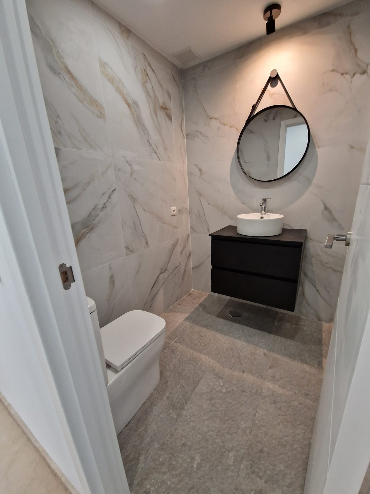 - Discover this bright and beautifully renovated 105 m² apartment situated in the very heart of Estepona. Enjoy the convenience of having everything at your doorstep—supermarkets, cafés, restaurants, schools, and essential services—all within a vibrant and comfortable urban setting. With an ideal southeast orientation, the property offers excellent natural light throughout the day. It features a spacious living-dining area, three well-proportioned bedrooms, and two bathrooms—one complete with a modern walk-in shower and the other a practical guest toilet. The apartment also includes a fully furnished kitchen, separate laundry room, an 8 m² terrace, elegant marble floors, and pre-installation for air conditioning. A private parking space is included, adding extra convenience in this central location. Perfect as a family home, holiday residence, or investment opportunity, this apartment combines comfort, style, and an unbeatable location.