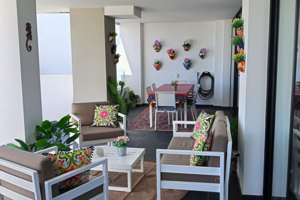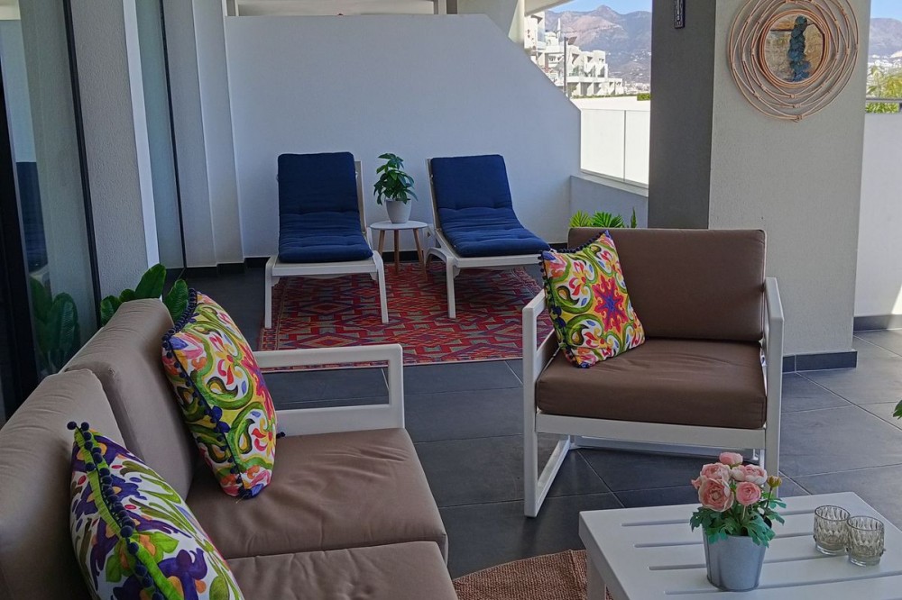 - Exquisite Luxury Apartment with Sea Views, Private Garden & Premium Finishes – Urbanisation Hacienda el Sueño, Mijas Immerse yourself in the essence of Mediterranean sophistication in this exceptional ground-floor residence, situated within the prestigious Hacienda el Sueño resort. A home where elegance, tranquility and refined comfort blend seamlessly – surrounded by lush landscaping, high-end amenities, and breathtaking sea views. Living at the highest level Originally designed with four bedrooms, the layout has been thoughtfully redesigned into three spacious bedrooms, including a spectacular master suite with sea views. Every detail reflects harmony, luxury and timeless style, enhanced by abundant natural light and premium finishes. Property highlights Elegant living and dining area with direct access to the outdoor terraces Large, fully equipped kitchen with a functional and stylish layout Covered terrace, sun terrace and a private garden – your own sanctuary of serenity and privacy Beautifully furnished with curated décor and high-quality materials Multiple spaces offering uninterrupted sea views Surfaces: Built area: 104.75 m² | Covered terrace: 42.39 m² | Open terrace: 13.02 m² | Private garden: 28.33 m² Delivered fully furnished and move-in ready, ideal for those seeking effortless luxury. Exclusive features Underground parking space Private storage room South/East-facing garden Access to all premium resort facilities Resort-level amenities Hacienda el Sueño offers an elevated lifestyle with boutique-style facilities, including: Year-round heated outdoor pool Modern gym & sauna Vista Lago restaurant, cocktail bar & mini-market Children’s playground Reception and professional rental services Prime coastal location Perfectly positioned between Málaga and Marbella, just minutes from Fuengirola, La Cala, top golf courses, padel clubs, and the impressive new Gran Parque de Mijas. Málaga Airport is only 25 minutes away. A luxurious, ready-to-move-in apartment with sea views, private garden and unmatched resort amenities.