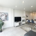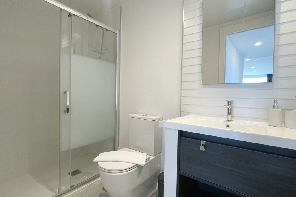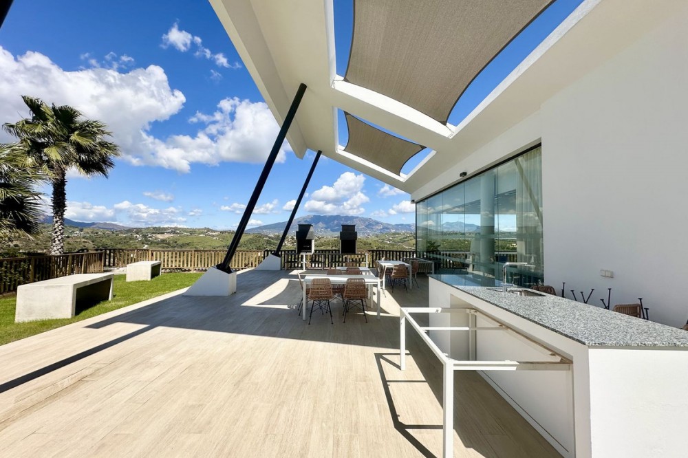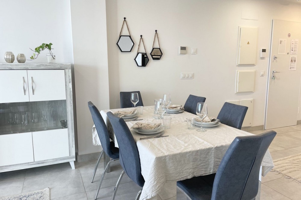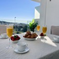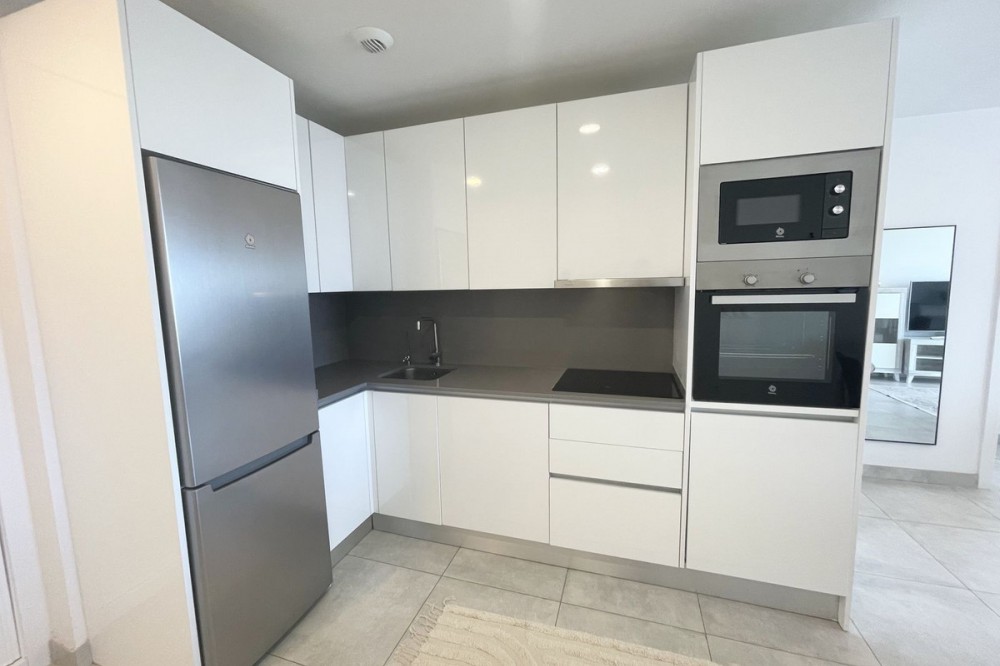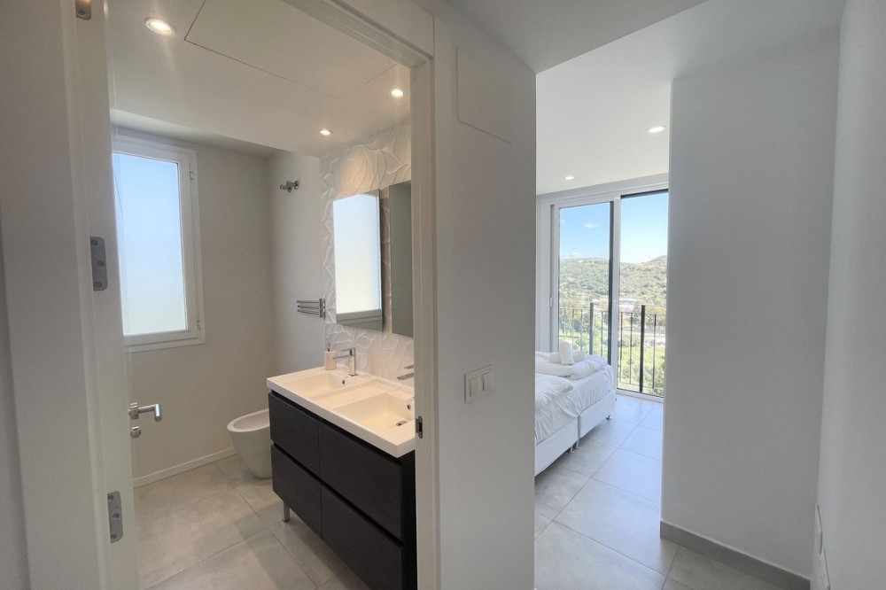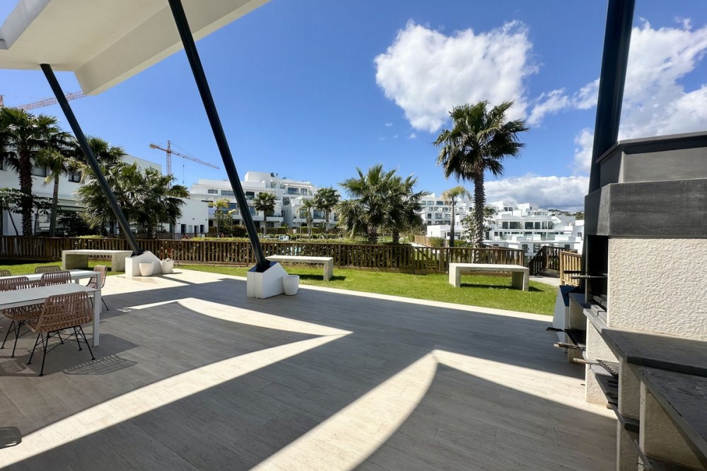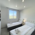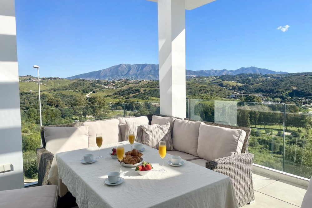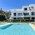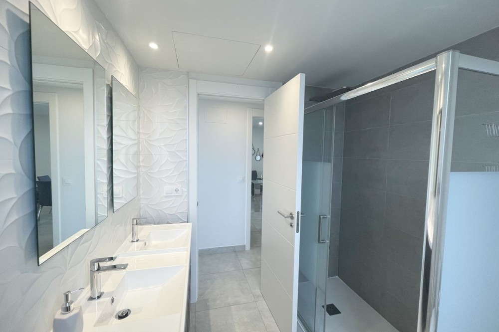 - Welcome to this bright and modern corner apartment in the sought-after Las Banderas complex in La Cala de Mijas! The property features 3 bedrooms, 2 bathrooms, and a spacious terrace with stunning mountain and sea views. The apartment is located on the first floor with elevator access and convenient entry from the private parking space. Upon entering, you are greeted by a bright, open-plan living area where the kitchen and living room seamlessly connect, leading out to the terrace with morning sun. One of the bedrooms is en suite with a private bathroom, while the other two bedrooms share a separate bathroom. All bedrooms feature built-in wardrobes, lush mountain views, and air conditioning throughout for year-round comfort. All windows and glass doors are double-glazed. The gated community has a concierge on site during the day. The beautifully maintained gardens include three outdoor pools, an indoor pool, a social lounge with barbecue area, sauna, gym, paddle tennis court, and a playground for the little ones. The purchase includes one private parking space close to the apartment, a storage room (8 m²), and partial furnishings. La Cala de Mijas offers a perfect mix of sandy beaches, golf, restaurants, shops, and a vibrant town center with a large supermarket – an ideal area for both year-round living and sunny holidays on Costa del Sol. Centrally located along the coast, it is only 15 minutes to Fuengirola and 20 minutes to Marbella, giving you everything within easy reach! Don’t miss the opportunity to book a viewing today!