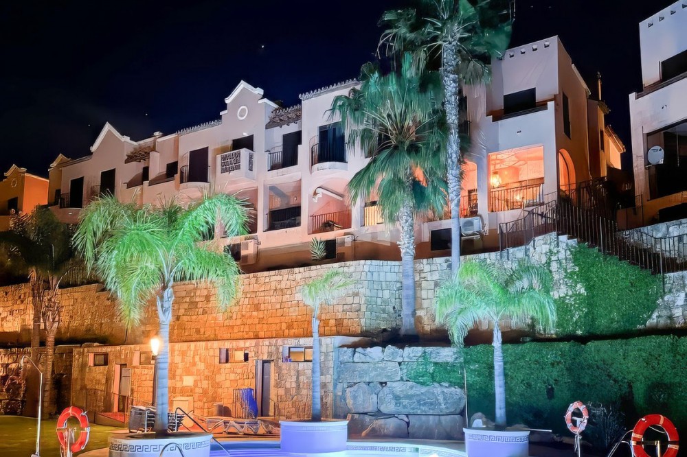 - Refined Three-Bedroom Townhouse in an Exclusive Gated Community | Estepona This beautifully presented three-bedroom townhouse is set within one of Estepona’s most desirable gated communities, offering a comfortable blend of style, space, and convenience. A welcoming double-height entrance hall sets an elegant tone from the outset. The fully fitted kitchen is separate from the main living areas and includes its own dedicated dining space deal for everyday meals and family gatherings. The spacious living and dining room leads directly onto a covered terrace, a lovely place to relax while enjoying peaceful garden and sea views. Upstairs, the home offers three generously sized bedrooms and two well-appointed bathrooms. The principal suite enjoys its own private terrace with attractive sea and golf views, while the two guest bedrooms share a modern, stylish bathroom. On the lower level, a private double garage with ample storage provides excellent practicality and security. The property is equipped with independently controlled air-conditioning system on each floor, ensuring year-round comfort. Conveniently located close to Estepona’s newest services including Estepona Hospital, respected schools, golf courses, and the well-known Alcazaba Lagoon the home offers easy access to both leisure and everyday essentials. Local shops, cafés, and supermarkets are a short walk away, and the beach can be reached in under 20 minutes on foot. A well-presented property in a sought-after area of Estepona ideal as a permanent residence, a relaxing holiday home, or a smart investment on the Costa del Sol.