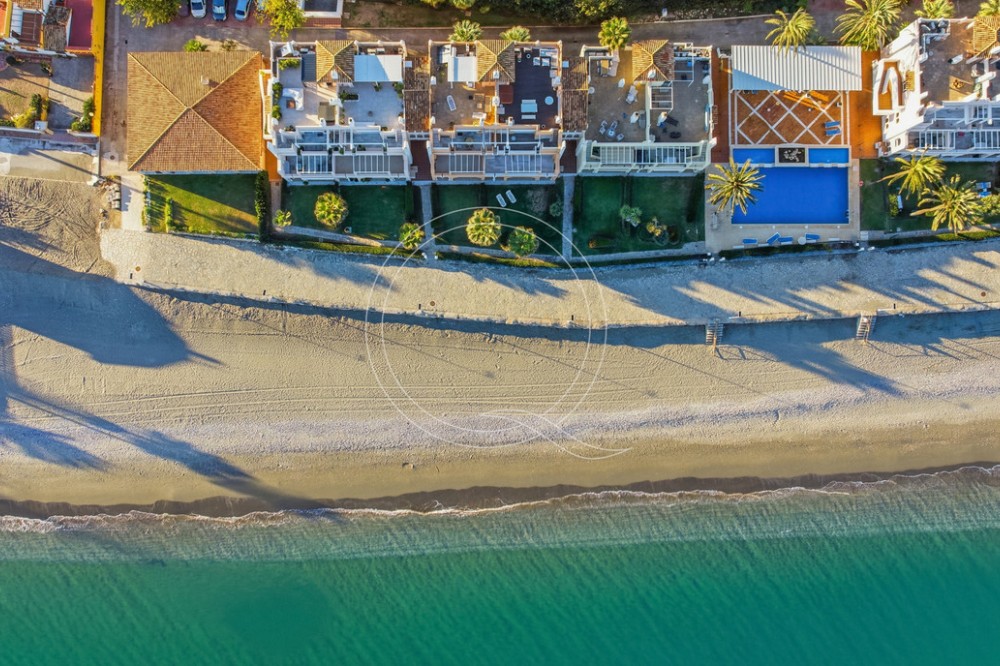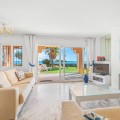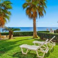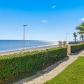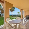 - Located in a prestigious front-line beach complex just west of Estepona, this three-bedroom ground-floor apartment offers an exceptional blend of coastal comfort and relaxed Mediterranean living. With direct access to the garden and just steps from the sand and the iconic Paseo Marítimo, it provides a rare opportunity to enjoy the beachfront lifestyle in one of the area’s most sought-after settings. The apartment benefits from an unbeatable location: daily amenities are close by, Estepona’s vibrant town centre is only a short drive away, and the peaceful seaside surroundings create an ideal balance of convenience and tranquillity. Inside, the bright and spacious layout connects the kitchen, dining, and living areas in an open-plan flow that encourages effortless living and entertaining. Large windows and sliding doors invite natural light and provide a seamless transition to the outdoor areas. A standout feature of this home is its generous private garden and terrace—perfect for enjoying quiet mornings, al fresco dining, or simply relaxing by the sea. The outdoor space extends the living area and enhances everyday enjoyment of the coastal environment. The master suite offers a serene retreat with sea views and its own stylish en-suite bathroom. Two additional guest bedrooms share a well-appointed bathroom, ensuring comfort and privacy for family and visitors. With 115 square metres of interior space and a 15-square-metre terrace leading directly to the garden, the property combines practicality with elegant living. A private garage space and a spacious storage room add further convenience. The complex features classic Andalusian architecture, a large communal pool surrounded by lush greenery, and direct access to the beach and seaside promenade, ideal for leisurely walks, cycling, or simply enjoying the Mediterranean climate. This inviting ground-floor apartment captures the essence of beachfront living, where comfort, space, and a privileged location come together by the shores of the Mediterranean.