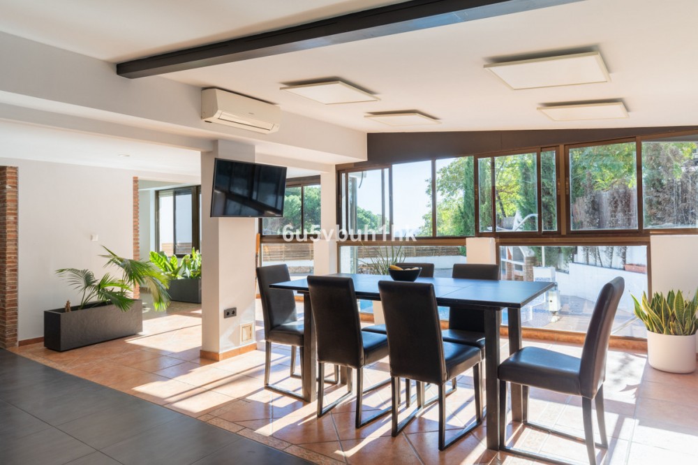 - Discover this magnificent single-storey detached house located in El Pinillo, just 7 minutes’ walk from the Cercanías train station, Mercadona, Carrefour, and a full range of services. Set in a quiet, family-friendly area with south-facing orientation, the home enjoys natural light throughout the day. The main house offers 4 bedrooms (with the option to convert the current laundry room into a fifth bedroom) and a total of 4 bathrooms, 3 of them en-suite. The heart of the property is its spacious open-plan living room with a fully renovated and equipped kitchen. Large windows surround the entire living and kitchen area, providing abundant natural light and direct views of the surrounding terraces and the impressive 42 m² private swimming pool with built-in steps. The property boasts extensive terraces and covered porches, perfect for enjoying the Mediterranean climate, as well as 3 storage rooms. It also counts with solar panels. An independent apartment completes this exceptional property, featuring a living room, kitchen, bedroom, bathroom, wardrobe, and its own storage area, ideal for guests, family, or rental use. A unique opportunity to live in a quiet, well-connected residential area with a bright south orientation. Ready to enjoy from day one!