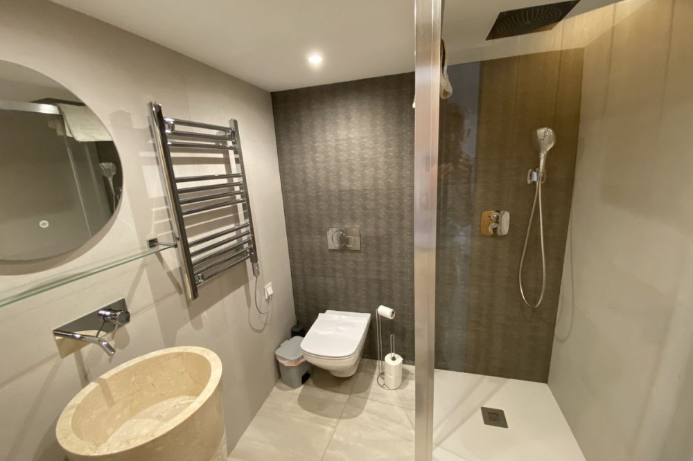 - RARE OPPORTUNITY TO ACQUIRE A SUPERBLY RENOVATED TOWNHOUSE IN THE CENTRE OF THE HISTORIC WHITE WASHED VILLAGE OF MIJAS, BOASTING PANORAMIC SEA VIEWS FROM THE EXPANSIVE ROOF SOLARIUM. The property has been subjected to an extensive top class renovation throughout and now provides the epitome of modern day living whilst seamlessly and sympathetically retaining authentic features in keeping with this much coveted historic location. AT A GLANCE 2 DOUBLE BEDROOMS 2 BATHROOMS (BOTH EN SUITE) FULLY FITTED, LUXURY KITCHEN SPACIOUS LOUNGE/DINER EXPANSIVE ROOF SOLARIUM Steps leading from the village, or upper parking area to the property. Entrance hall. Open plan lounge/dining and kitchen. The high quality kitchen with breakfast bar is fully fitted with Bora and Bosch appliances and marble work tops. The lounge/diner is spacious and includes a state - of - the- art pellet burner. A very attractive stairwell leads to the first floor. On this level are 2 spacious double bedrooms both with high quality en suite facilities that include large walk in showers and a marble and natural stone wash hand basin. Plenty of storage is provided with the bespoke built in wardrobes. Off the galleried landing of the first floor is access to a small terrace, which in turn provides further access to the roof terrace. Additional access to the roof solarium is provided from the guest bedroom. There is a utility room and additional storage on the level leading to the roof terrace. ROOF SOLARIUM The crowning glory of this lovely property is the expansive south orientated roof terrace which is perfect for sun bathing, extensive entertaining and al fresco dining. This area is also pre installed to incorporate a summer kitchen. The panoramic views from here are outstanding, overlooking Mijas Pueblo, the countryside, mountains and sea. On a separate part of the terrace is an area dedicated to the solar panels that service the domestic hot water. ADDITIONAL FEATURES QUALITY DOUBLE GLAZING THROUGHOUT (Climalit, gas filled and security glass) UNDERFLOOR HEATING TO BOTH BATHROOMS ALARM SYSTEM AIR CONDITIONING HOT/COLD The property is sold fully and tastefully furnished, subject to an agreed and signed inventory. No expense has been spared in this immaculate renovation and viewing is highly recommended. MIJAS VILLAGE - ALL AMENITIES WITHIN WALKING DISTANCE DRIVING DISTANCES MALAGA 20 MINUTES FUENGIROLA BEACH RESORT 10 MINUTES MARBELLA 25 MINUTES.