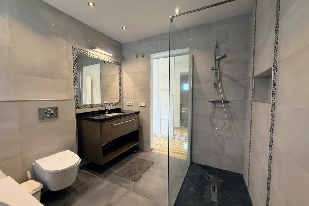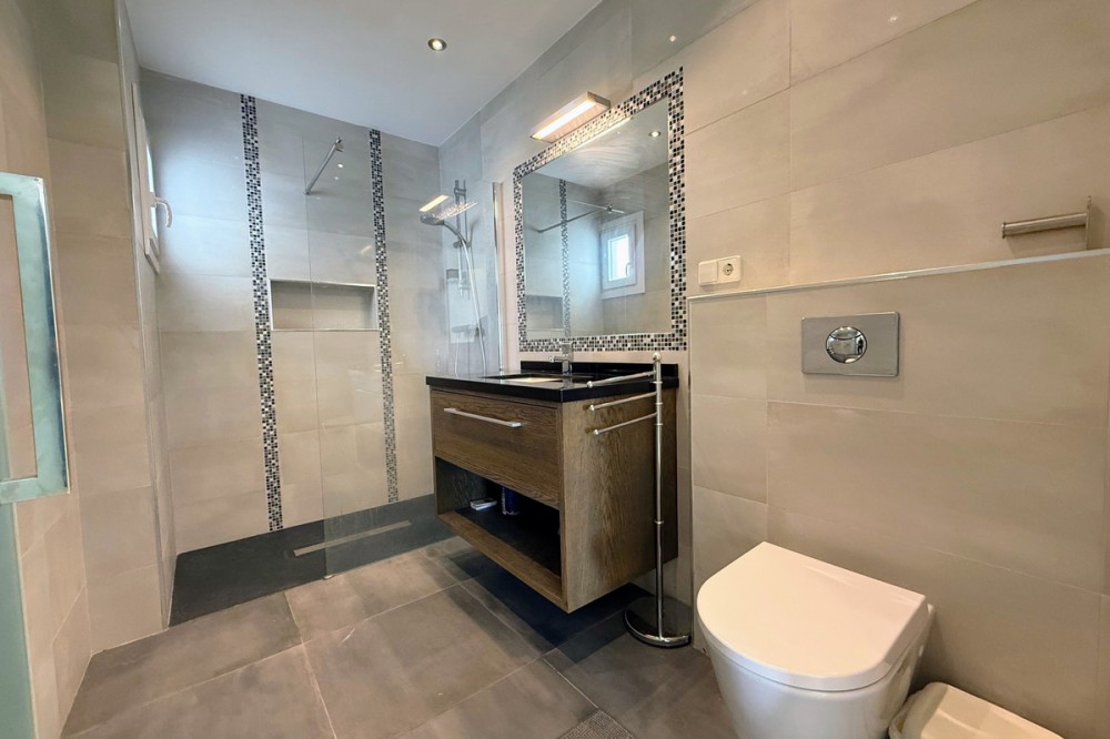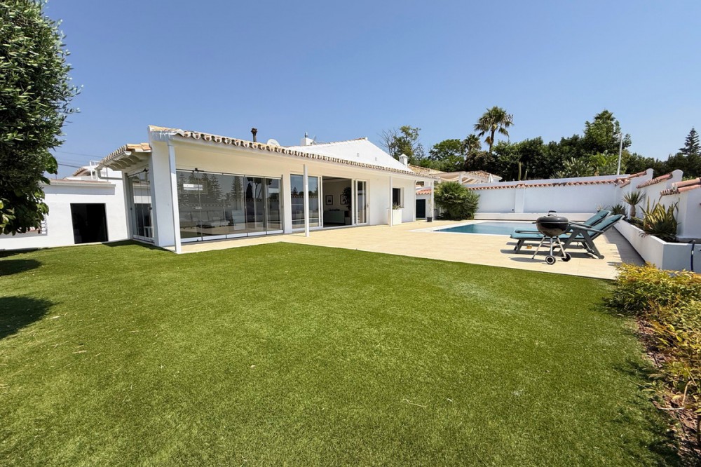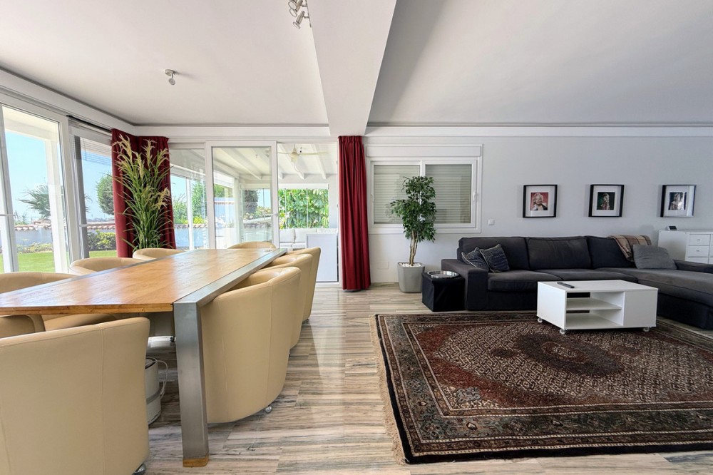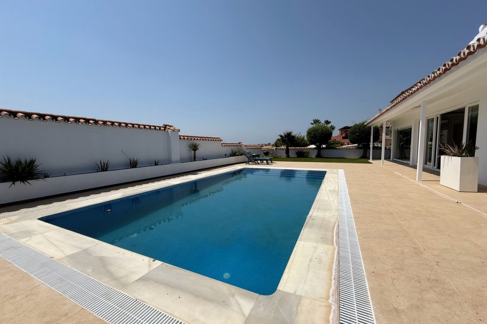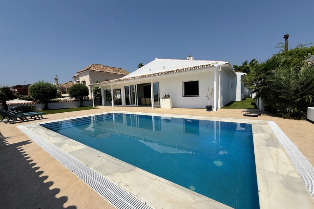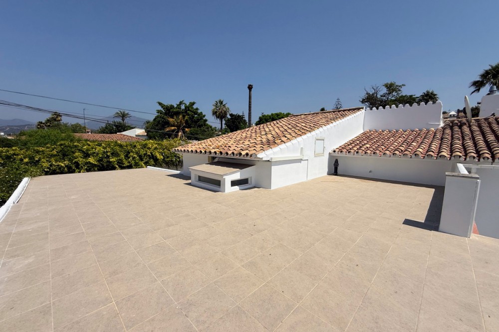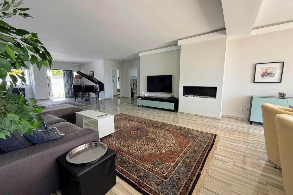 - Introducing this elegant single-level villa, ideally situated in one of the most exclusive areas of San Pedro Alcántara. Designed with a perfect balance of comfort, quality and privacy, it offers refined living in a prime location. Clean architectural lines, abundant natural light and high-standard finishes create a bright, welcoming atmosphere throughout. The villa features three spacious bedrooms, each with its own en-suite bathroom and built-in wardrobes. The living room, complete with a designer fireplace, flows seamlessly into a fully equipped open-plan kitchen — an inviting space for both everyday living and entertaining. Smart home technology allows remote control of lighting and heating, while marble floors and underfloor heating provide comfort year-round. Highlights: - Private 8x4 m swimming pool - Private rooftop terrace for sunbathing & panoramic vistas - Closed garage for two cars Located in a quiet, secure area just minutes from the beach, renowned golf courses and fine restaurants, this villa offers an exceptional opportunity — whether as a main residence or a valuable investment.