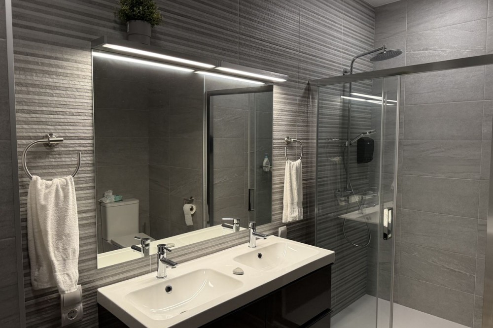 - This recently renovated 3-bedroom, 3-bathroom apartment offers 170 m² of bright, spacious living on one level, originally created by combining two units into one. Located on the entrance level of a 6-storey building, yet equivalent to the 3rd floor, it benefits from complete privacy with no neighbours directly above. The home features a new kitchen with Bosch and Siemens appliances, granite worktops, new floors, doors, high ceilings, a new boiler, and UV-protection double-glazed windows throughout. The master bedroom includes an en-suite bathroom and walk-in closet. A 12 m² covered private terrace provides peaceful sea and mountain views, and the property is east-facing. The community offers a large summer pool, children’s pool, tennis court, interior meeting area and BBQ/picnic space. Two covered private parking spaces are included, and community fees cover gardening, cleaning and pool maintenance. Just a 5-minute walk to the beach and supermarkets, and a 5-minute drive to Estepona centre, this spacious, quiet and key-ready apartment is ideal for comfortable coastal living.