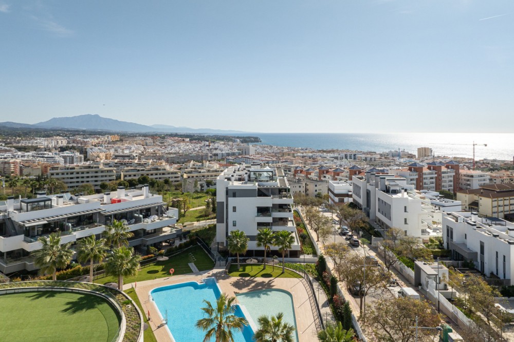 - This apartment in Urbanisation Las Mesas, Estepona, Building 4, is located in a highly sought-after area, just a short 10-minute walk from the marina and beach. The Las Mesas neighborhood is known for its charming, peaceful atmosphere while being within easy reach of all essential amenities. It’s a residential area offering a perfect blend of tranquillity and convenience, making it ideal for those who want to enjoy both coastal living and proximity to the vibrant town center. Estepona marina, with its picturesque views and wide range of bars, restaurants, and shops, is just a short stroll away, providing ample opportunities for relaxation and entertainment. The beach, also only minutes away, offers beautiful sandy shores and clear waters, perfect for beach lovers and water sports enthusiasts. The apartment itself offers breathtaking sea views and features 4 bedrooms, 112 m² of living space, and a 43 m² terrace with options for both sun and shade throughout the day, due to its south, southeast, and west-facing orientation. From the west-facing part of the terrace, you can enjoy views of the pool area. This apartment is a rare find with 4 bedrooms and is within walking distance to all amenities, making it a convenient and ideal location. It also offers incredible views. The apartment has an open-plan kitchen leading into the living room, with direct access to the terrace from the kitchen, living room, and two of the bedrooms. The remaining two bedrooms offer mountain views, with large windows that allow for plenty of natural light. The apartment is like new and beautifully furnished. Residents have access to a communal pool, including both an outdoor and a heated indoor pool. There is also a well-equipped gym. Additionally, the apartment comes with an assigned parking space in a private underground garage, along with a storage room available for rent. Living in Las Mesas offers the best of both worlds – a peaceful residential area just a stone’s throw from the beach and marina, making it a truly exceptional location.