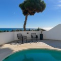 - This beautiful detached villa offers a rare blend of luxury and unbeatable convenience in a highly desirable area of La Cala de Mijas. The property spans 182 m² and features 3 bedrooms and 3 bathrooms, set on a manageable 222 m² plot. The interior is bright, modern, and perfectly presented, designed for comfortable, relaxed living. What truly sets this villa apart is the seamless integration of spectacular, uninterrupted sea views with the incredible outdoor space. You will enjoy these views from the moment you step inside. The home boasts a phenomenal amount of exterior area across five terraces, including a massive rooftop solarium. This is complemented by a refreshing private swimming pool with an outdoor shower, ensuring you have ample space to soak up the sun and host guests. For efficiency, the property also includes solar panels. Its location is outstanding, placing you right next to a school and supermarket (Mercadona), and just a short stroll from the vibrant town centre of La Cala de Mijas. Golf enthusiasts will appreciate being minutes away from the course. This is a perfect opportunity to secure a detached home with superb amenities and an enviable view in a prime coastal location.