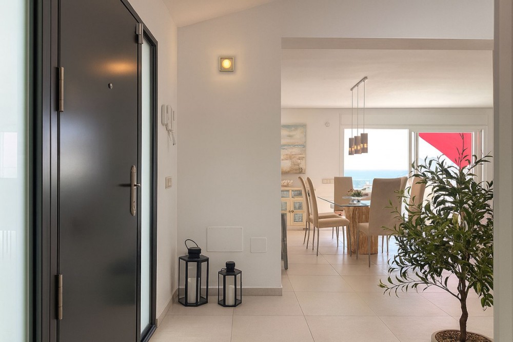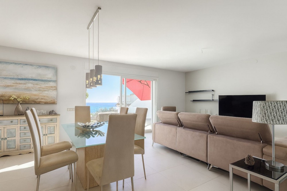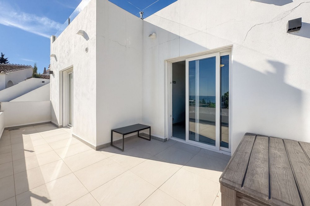 - This beautiful detached villa offers a rare blend of luxury and unbeatable convenience in a highly desirable area of La Cala de Mijas. The property spans 182 m² and features 3 bedrooms and 3 bathrooms, set on a manageable 222 m² plot. The interior is bright, modern, and perfectly presented, designed for comfortable, relaxed living. What truly sets this villa apart is the seamless integration of spectacular, uninterrupted sea views with the incredible outdoor space. You will enjoy these views from the moment you step inside. The home boasts a phenomenal amount of exterior area across five terraces, including a massive rooftop solarium. This is complemented by a refreshing private swimming pool with an outdoor shower, ensuring you have ample space to soak up the sun and host guests. For efficiency, the property also includes solar panels. Its location is outstanding, placing you right next to a school and supermarket (Mercadona), and just a short stroll from the vibrant town centre of La Cala de Mijas. Golf enthusiasts will appreciate being minutes away from the course. This is a perfect opportunity to secure a detached home with superb amenities and an enviable view in a prime coastal location.