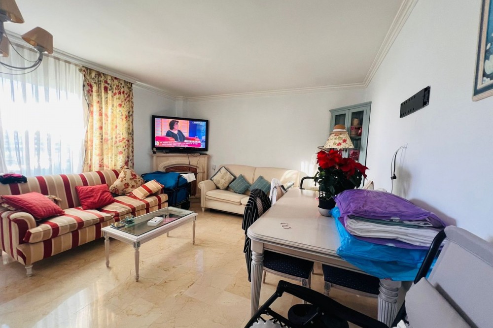 - Discover this amazing opportunity to acquire a fantastic apartment with sea views! This bright property, located in a privileged area, features 3 spacious bedrooms and 2 bathrooms—perfect for enjoying the comfort and space you need. The living–dining room is ideal for sharing unforgettable moments with family and friends, while the kitchen offers everything you need. The terrace with glass enclosure is the perfect place to relax and take in the views, whether you're having a morning coffee or enjoying a drink at sunset. In addition, this apartment includes a parking space and is equipped with marble floors and pre-installed air conditioning. The building has a swimming pool and garden, providing an ideal space for leisure and fun. Just a few steps from the beach and surrounded by shops, you'll have everything you need within easy reach. Although it is currently rented until mid-January, you have the option to reserve it now or continue with the rental. Don’t miss out on this unique opportunity!