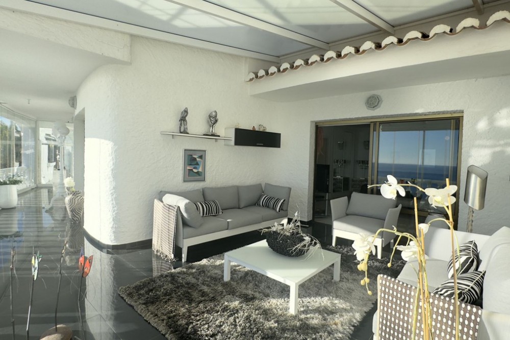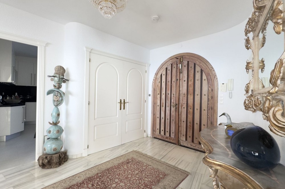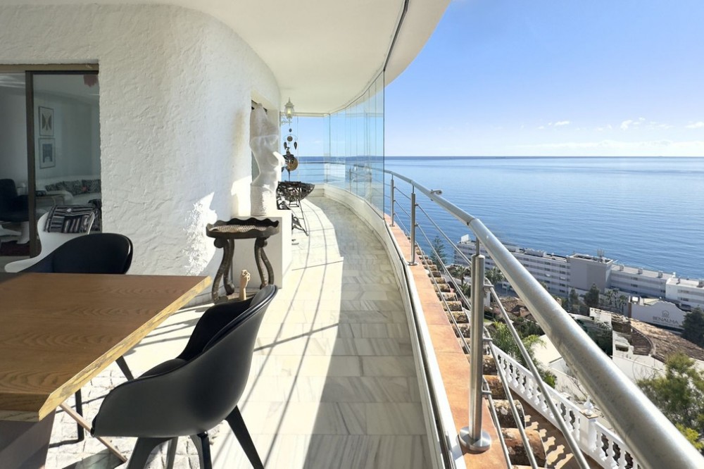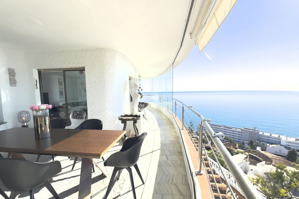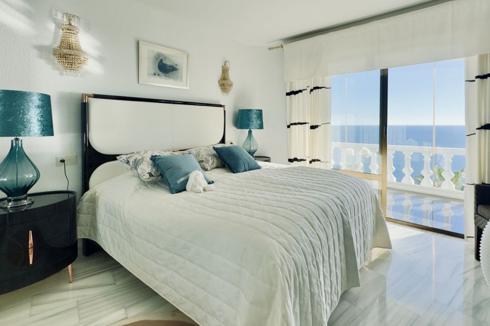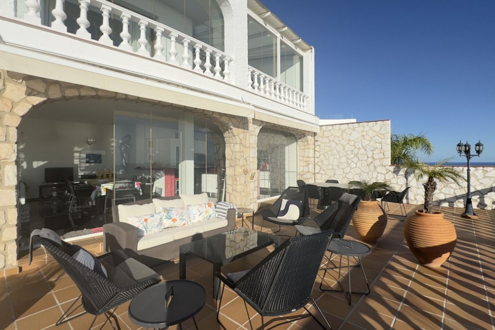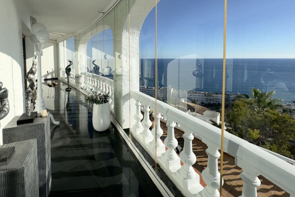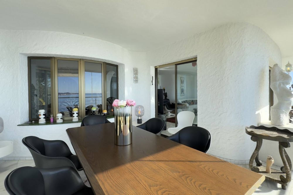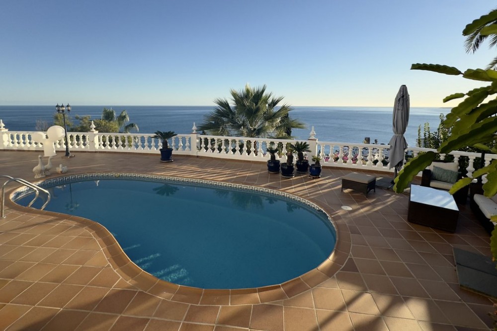 - Commanding a privileged position in an elevated coastal setting within one of Benalmádena’s most prestigious enclaves, this exceptional villa stands as a distinguished landmark. From its gently raised vantage point, it reveals sweeping, majestic views over the shimmering Mediterranean Sea—an ever-changing panorama that embodies true coastal luxury. Offering approximately 590 m² of refined living space, the property blends impressive architectural design, timeless elegance and outstanding privacy, creating a perfect sanctuary for those seeking uncompromising quality and exclusivity. Perfectly placed to enhance everyday living, the villa is just a short walk from the Torremuelle train station, the beach, inviting restaurants, local boutique shops, and a highly regarded international school. Excellent transport connections and a private garage complete this thoughtful and privileged setting. Main Living Level The principal floor welcomes you into a bright and spacious living area that opens onto a full-length glazed terrace. This impressive terrace frames the coastline in all its splendour, presenting the sea as a living work of art. The elegant dining area sits beside a separate, fully equipped kitchen, forming a sophisticated and functional layout that beautifully showcases the breathtaking views. Bedroom Level The dedicated bedroom floor hosts four remarkably large bedrooms, each offering wide, unobstructed sea views. This level also includes a cosy lounge, three beautifully finished bathrooms, a utility room and a second glazed terrace—a serene viewpoint overlooking the coastline. Pool & Entertainment Level Designed for relaxation and elegant gatherings, this level features a generous terrace surrounding the private pool, all embraced by spectacular, picture-perfect sea views. A dedicated lounge and dining area, together with a fully equipped kitchen, ensures effortless entertaining in a luxurious coastal atmosphere. Wellbeing Level The lowest floor is dedicated to tranquillity and wellness. Here you will find a soothing sauna, a comfortable living room and a private bedroom. Direct access leads to a landscaped garden where a welcoming jacuzzi awaits—an intimate outdoor haven set against cinematic Mediterranean vistas. This villa is more than a home—it is an expression of luxury, privacy and coastal beauty, representing a rare opportunity in one of the most sought-after locations on the entire Costa del Sol.