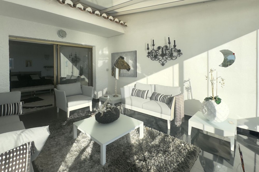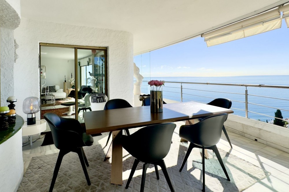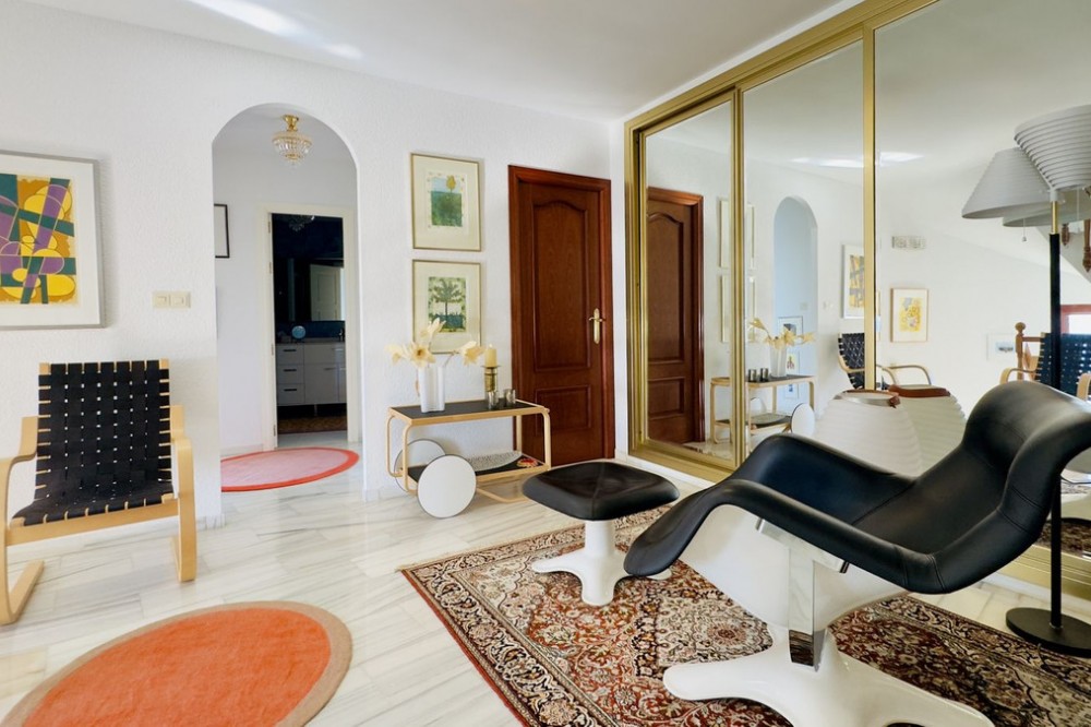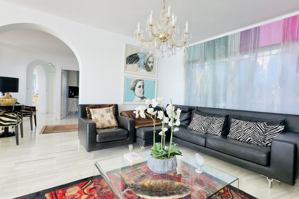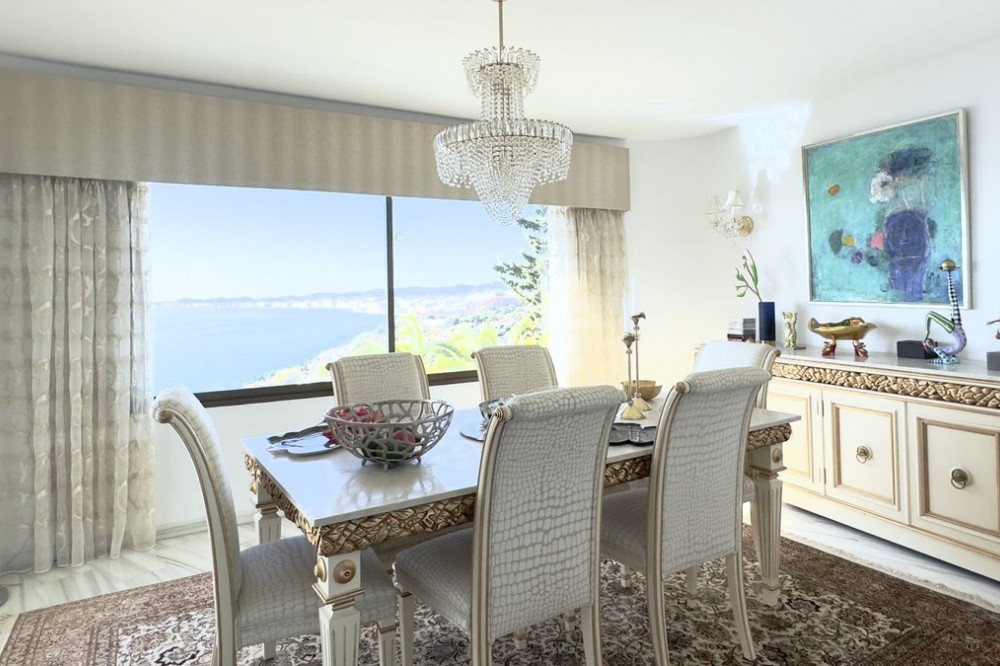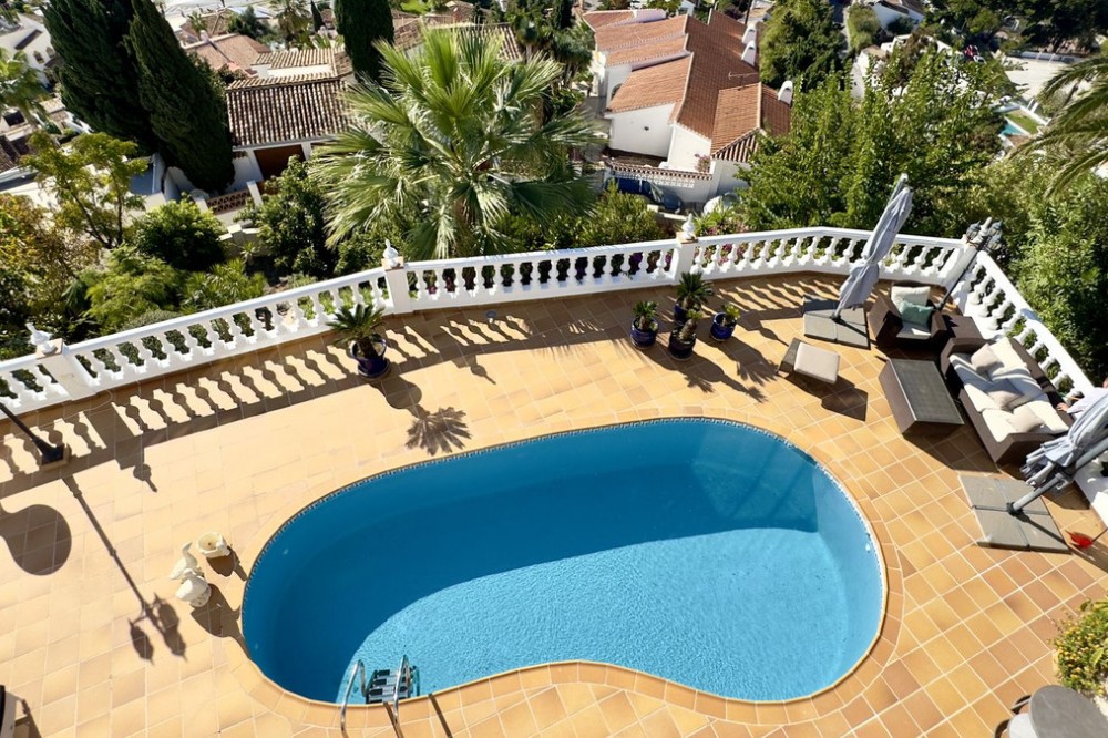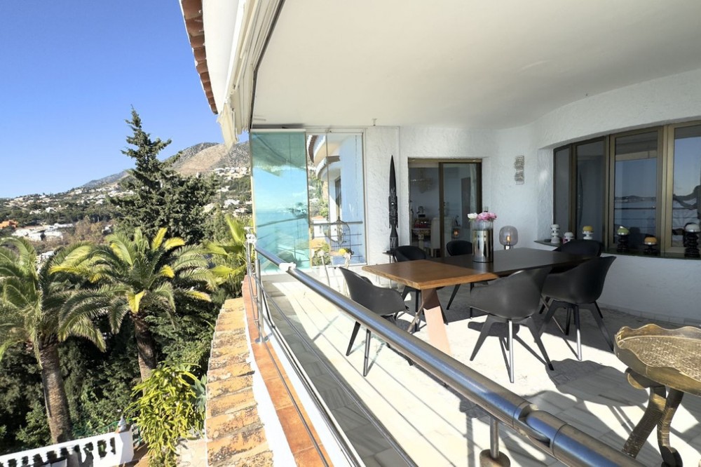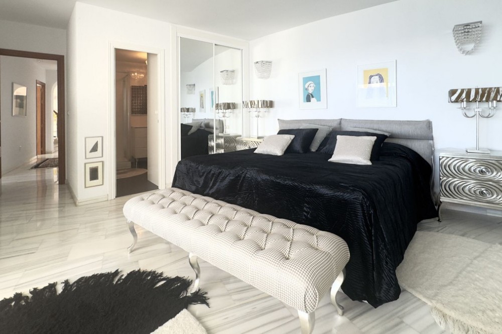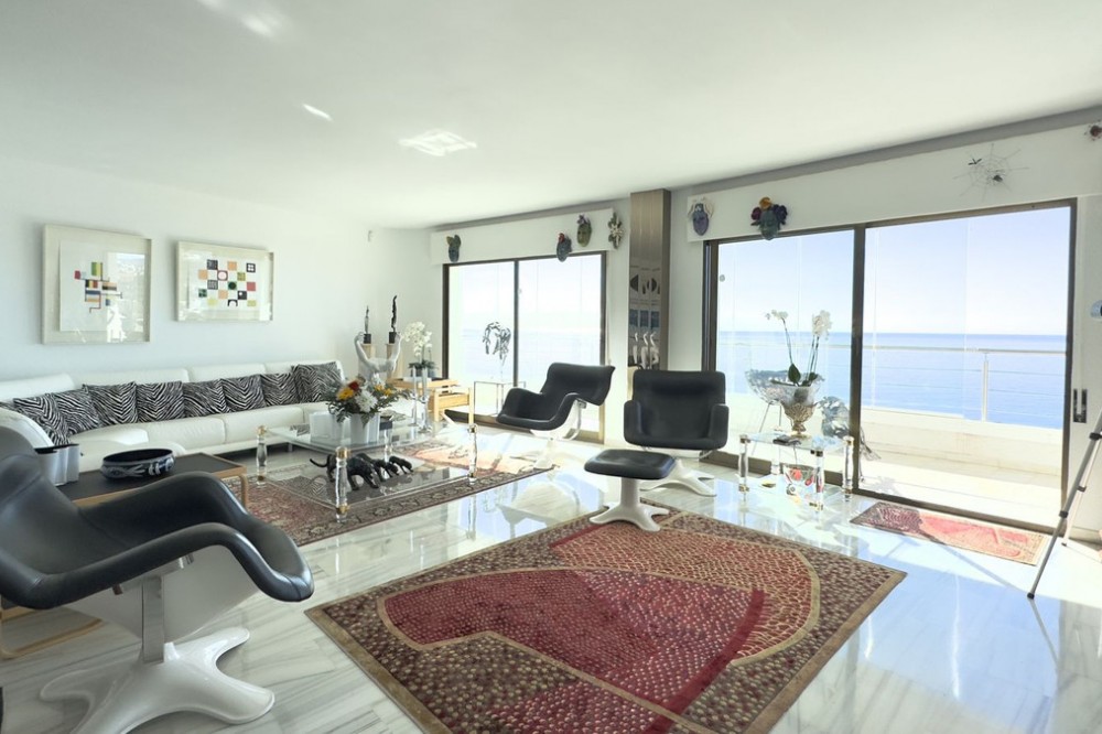 - Commanding a privileged position in an elevated coastal setting within one of Benalmádena’s most prestigious enclaves, this exceptional villa stands as a distinguished landmark. From its gently raised vantage point, it reveals sweeping, majestic views over the shimmering Mediterranean Sea—an ever-changing panorama that embodies true coastal luxury. Offering approximately 590 m² of refined living space, the property blends impressive architectural design, timeless elegance and outstanding privacy, creating a perfect sanctuary for those seeking uncompromising quality and exclusivity. Perfectly placed to enhance everyday living, the villa is just a short walk from the Torremuelle train station, the beach, inviting restaurants, local boutique shops, and a highly regarded international school. Excellent transport connections and a private garage complete this thoughtful and privileged setting. Main Living Level The principal floor welcomes you into a bright and spacious living area that opens onto a full-length glazed terrace. This impressive terrace frames the coastline in all its splendour, presenting the sea as a living work of art. The elegant dining area sits beside a separate, fully equipped kitchen, forming a sophisticated and functional layout that beautifully showcases the breathtaking views. Bedroom Level The dedicated bedroom floor hosts four remarkably large bedrooms, each offering wide, unobstructed sea views. This level also includes a cosy lounge, three beautifully finished bathrooms, a utility room and a second glazed terrace—a serene viewpoint overlooking the coastline. Pool & Entertainment Level Designed for relaxation and elegant gatherings, this level features a generous terrace surrounding the private pool, all embraced by spectacular, picture-perfect sea views. A dedicated lounge and dining area, together with a fully equipped kitchen, ensures effortless entertaining in a luxurious coastal atmosphere. Wellbeing Level The lowest floor is dedicated to tranquillity and wellness. Here you will find a soothing sauna, a comfortable living room and a private bedroom. Direct access leads to a landscaped garden where a welcoming jacuzzi awaits—an intimate outdoor haven set against cinematic Mediterranean vistas. This villa is more than a home—it is an expression of luxury, privacy and coastal beauty, representing a rare opportunity in one of the most sought-after locations on the entire Costa del Sol.