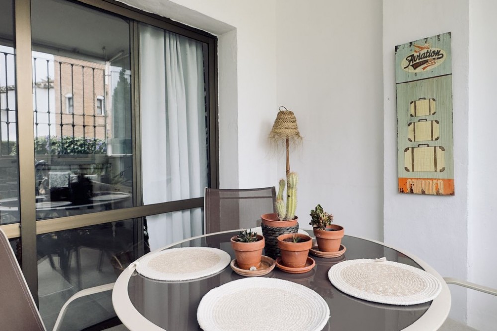 - Sophisticated One-Bedroom Residence in Prestigious Community in Fuengirola Discover refined living in this exceptionally spacious and luminous ground-floor apartment, ideally positioned in the heart of Fuengirola within the highly coveted community. Renowned for its beautifully landscaped grounds, serene atmosphere, and superb central location, the property offers an unparalleled lifestyle just steps from all amenities and excellent transport links. This elegant residence boasts an expansive living and dining area that flows seamlessly onto a private terrace with tranquil views over the community’s pristine swimming pool. The well-proportioned bedroom, large bathroom, and separate fully fitted kitchen with an adjoining utility room add to the sense of comfort and space. Though officially a one-bedroom home, the property feels impressively generous in scale. With subtle updates and a refined renovation to the kitchen and bathroom, this property can easily be transformed into a truly luxurious sanctuary in one of Fuengirola’s most exclusive enclaves — a rare opportunity in an unbeatable location.