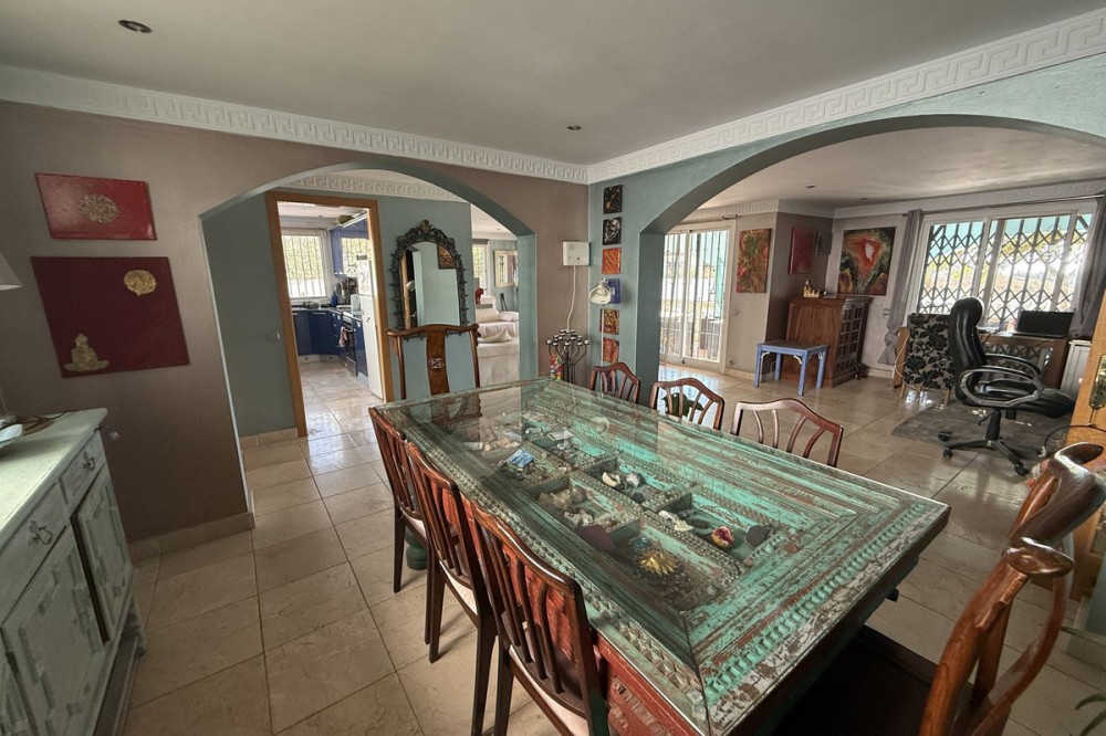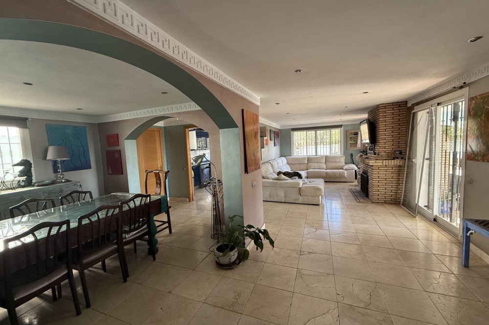 - Introducing a truly captivating and value-packed opportunity—this stunning 5-bedroom detached villa in Mijas Golf, Costa del Sol, is the most impressive property with the greatest potential we've seen this year. Perfectly situated in a desirable location, it offers not just a home, but a lifestyle that combines luxury, comfort, and sustainability. This villa is designed to impress from the moment you walk in. The expansive living spaces are filled with natural light, creating a welcoming and vibrant atmosphere throughout. The exceptionally large lounge and dining area is the heart of the home, featuring an open fireplace that invites cozy gatherings. From here, you can step out onto a beautifully covered terrace, which offers a seamless transition to the private pool area. The terrace is ideal for alfresco dining or lounging, while the pool itself is framed by breathtaking southern panoramic views of the coast, making it the perfect retreat for soaking up the Mediterranean sun. The villa also offers a wealth of additional features for relaxation and rejuvenation. It boasts a luxurious sauna and steam room, as well as a separate enclosed bathhouse—a serene escape for those moments of peace and calm. For the eco-conscious buyer, this property comes equipped with its own private well, complete with a filtration system, and an array of solar panels that significantly reduce the environmental footprint. While the property is capable of functioning off the grid, it is also connected to the main utilities, giving you the flexibility to choose the lifestyle that suits you best. In terms of investment potential, the surrounding area is undergoing substantial development, with new roads, footpaths, and infrastructure improvements being made. This makes the villa not only a beautiful home but also a smart financial decision. With the local real estate market poised for growth, this property stands out as an exceptional investment opportunity. Located in the tranquil Mijas Golf area, this villa enjoys a peaceful country setting, yet is conveniently close to renowned golf courses. The south-facing orientation ensures you can enjoy sunshine all day long, while the panoramic views of the sea and surrounding mountains add an extra layer of natural beauty to the property. The villa’s 328 m² of built space offers 5 spacious bedrooms and 5 bathrooms, providing ample room for family living or entertaining guests. Additional features include air conditioning (with both hot and cold settings), marble flooring, double glazing, and a fully fitted kitchen. Outside, the private garden is well-maintained and perfect for enjoying the Costa del Sol's fantastic weather, and private parking ensures convenience for you and your guests. This is truly a must-see property that combines luxury, sustainability, and investment potential in one incredible package. Don’t miss your chance to own this gem in the heart of Costa del Sol.