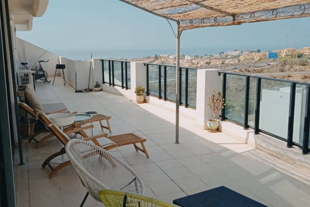 - For Sale: Stunning 2-Bedroom Penthouse with Panoramic Sea Views – Riviera del Sol Mijas Costa Build size: 110 m² interior | 130 m² terrace Bedrooms: 2 Bathrooms: 2 Parking & Storage: Yes (underground, secure) Orientation: South-West – Sun all day ☀️ Property Overview Experience Mediterranean living at its finest in this bright and spacious 2-bedroom penthouse in the sought-after Riviera del Sol. Perfectly positioned with panoramic sea views and sunshine from morning to evening, this property combines modern comfort, privacy, and unbeatable outdoor space. Key Features 2 double bedrooms, both with fitted wardrobes Master bedroom en-suite: bath, shower, double sink, bidet, and toilet Guest bathroom with shower, basin, and toilet Outdoor adult swimming pool & separate children's pool Sunset mountain views from the huge terrace. Spacious separate kitchen, fully equipped. Large open-plan living and dining area with floor-to-ceiling patio doors on three sides, flooding the home with natural light Expansive 130 m² wrap-around terrace offering all-day sun, perfect for outdoor dining, entertaining, or relaxing with panoramic views of the sea and coastline Excellent condition, ready to move in Private underground parking space and secure storage room included Located in a gated development with beautifully maintained communal areas and pool Location Highlights Peaceful yet convenient setting in Riviera del Sol — close to shops, restaurants, and beaches, and just a short drive to: La Cala de Mijas – 5 min Marbella – 15 min Fuengirola – 10 min Málaga Airport – 25 min Why You’ll Love It Whether as a holiday retreat, investment, or permanent home, this penthouse delivers the perfect Costa del Sol lifestyle: spacious, secure, sun-filled, and surrounded by views that stretch to the horizon.