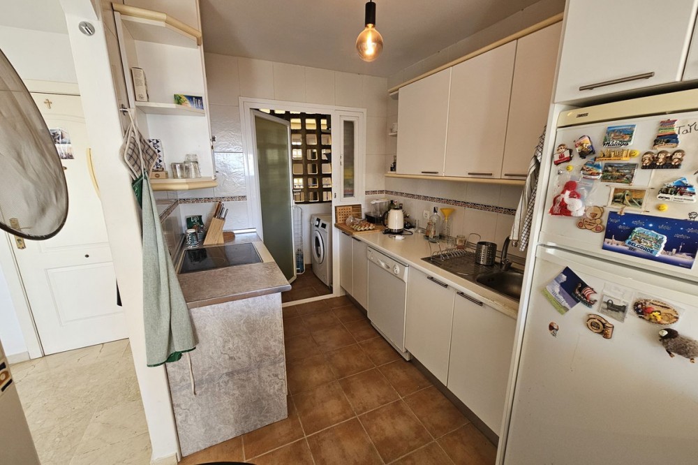 - South-Facing Middle Floor Apartment in Riviera del Sol – Costa del Sol Discover this fantastic 2-bedroom, 2-bathroom middle-floor apartment offering 75 m² of comfortable living space in the highly desirable area of Riviera del Sol. With a south-facing orientation, the property enjoys abundant natural light and pleasant views throughout the day. Set within a well-established urbanisation, the apartment benefits from an unbeatable location close to golf courses, shops, the sea, the town centre, and local schools, making it ideal for holidays, rentals, or year-round living. Key Features Communal pool Air conditioning (hot & cold) Beautiful views of the sea, mountains, and pool Interior Details Lift access Fitted wardrobes Private terrace Storage room & utility room Ensuite bathroom Marble flooring Double glazing Fiber optic internet Part furnished Partially fitted kitchen Community & Security Communal gardens Gated complex with entry phone system Underground private parking Utilities Electricity connected Category Bargain Resale This is a great opportunity to acquire a well-located property in Riviera del Sol with excellent potential—whether for investment, a holiday retreat, or a comfortable permanent residence.