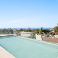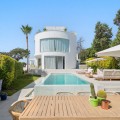 - This iconic villa is located in the private urbanization of Marbesa, close to the beach, on the east side of Marbella. It is 400 meters walking distance or 10 minutes walk from the Mediterranean Sea and the beach, 1.5 km from the beach and the protected dunes of Cabopino and 1.9 km from the hotels Marriot and Don Carlos and Nikki Beach Marbella. Marbesa is a quiet and prestigious neighborhoud known for its beautiful coastline and its proximity to Marbella. The villa has 3 bedrooms and 2 bathrooms and is recently built and offers a perfect mix of modern living and luxurious comfort. The villa has a beautiful roof terrace with swimming pool with views over the coast to Gibraltar and Africa. It is ideal for organizing parties or simply enjoying the breathtaking views. The first floor, where you will find the living room with open kitchen, also offers fantastic sea views. On the ground floor, which overlooks the garden and the infinity pool, there are 2 bedrooms and 2 bathrooms. In the semi-basement there is a 3rd bedroom and the garage with a remote controlled electronic gate. All bedrooms have shutters, air conditioning and heating, on electricity. Both the roof top pool and the pool in the garden are heated. This villa is an ideal family home and also perfect as a rental investment. It has a proven track record as a very successful holiday rental (with license number). The total plot size is 400 m2. The total built area is 309 m2, of which 167 m2 living space, 108.5 m2 terraces and 33.5 m2 swimming pools. Garden, pools and villa are easy to maintain