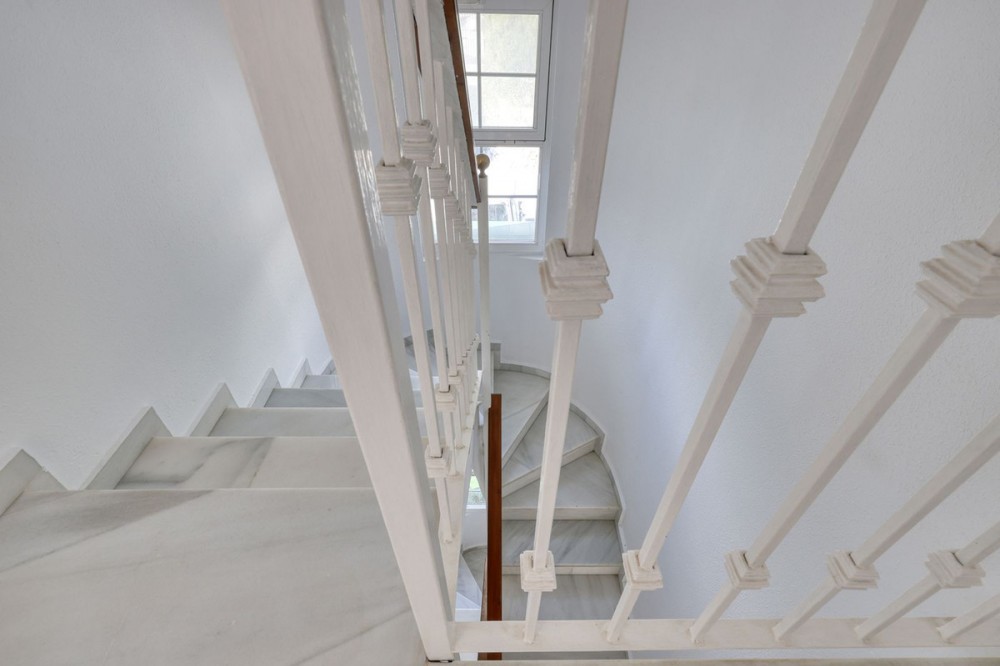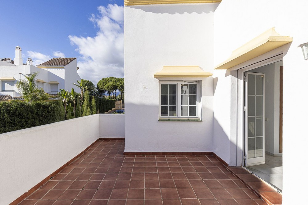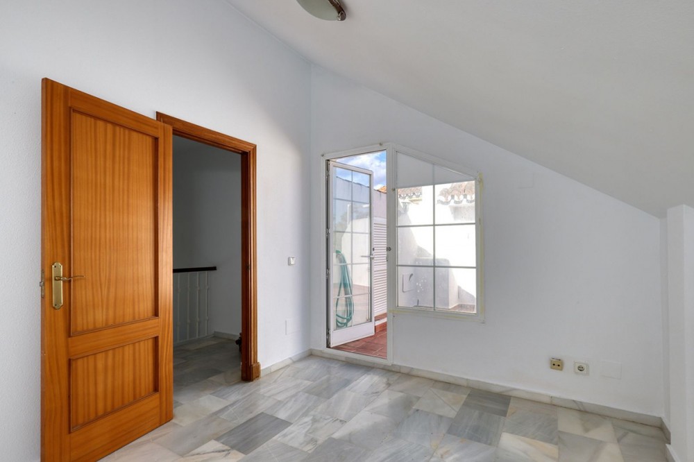 - Spectacular semi-detached villa for sale in the heart of Elviria Three-storey semi-detached house in a private residential complex with swimming pool and parking. Located less than a five-minute walk from all kinds of amenities and shopping areas. The entire property receives plenty of natural light thanks to its wonderful orientation and large windows. It also enjoys a private garden of over 50 m². Accessing from the ground floor, we find a hallway that leads to a separate study or office. From here, you reach a spacious and bright living-dining room that opens directly onto the outdoor area. On this same level, you will also find the kitchen, conveniently located next to a full bathroom. On the upper floor is the sleeping area, divided into three bedrooms. The main bedroom includes an en-suite bathroom and a dressing room, while the other two bedrooms share an additional bathroom. From this level, you access the top floor, where an attic-style room provides the ideal space for a small living room, playroom or multipurpose area. This room leads to the rooftop terrace, which offers unique sea views. Beyond its current layout, what truly sets this property apart is its exceptional potential. Although the home is currently empty and would benefit from some renovation and updating, this becomes one of its greatest advantages. Thanks to its large size — one of the biggest units in the entire complex — and its excellent location, it represents a fantastic opportunity for investors or buyers looking to create a personalised home with great added value. The property also includes an entire lower level currently used as a basement, offering an impressive amount of space. This floor can easily be transformed into a large home cinema, a gym, a games room, or even a full wellness area — the possibilities are endless. In short, while the property does require some work, this is precisely what makes it such an attractive option. Its generous interior dimensions, private garden, rooftop terrace with sea views, and unbeatable potential for customisation make it a rare and highly profitable investment opportunity within this sought-after complex. Three-storey terraced house Independent office on the ground floor Good-sized living–dining room Kitchen with functional layout Three bedrooms on the upper floor Main bedroom with en-suite bathroom and walk-in closet Two bathrooms on the upper floor and one on the ground floor Attic-style room on the top floor Walkable solarium on the rooftop Quiet, well-connected residential setting Ground floor Hall Study Living-dining room Kitchen Bathroom First floor 3 bedrooms 2 bathrooms (one en-suite with walk-in wardrobe) Rooftop level: attic-style room / small lounge and solarium Private garden Located in a residential area of Elviria, just a few minutes from Marbella and Malaga. The property is surrounded by detached houses and has easy access to all kinds of services and shopping areas. It is also less than a 10-minute drive from the sea.